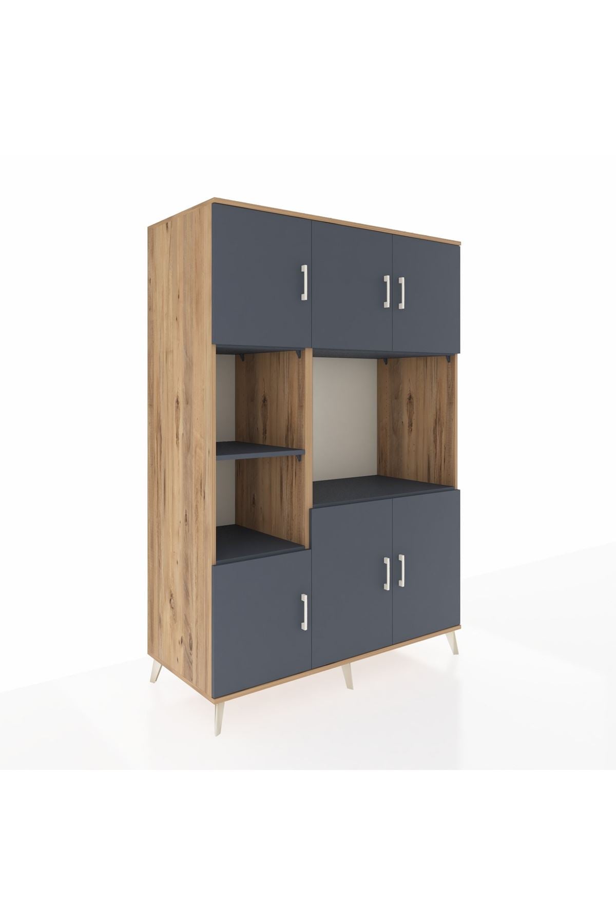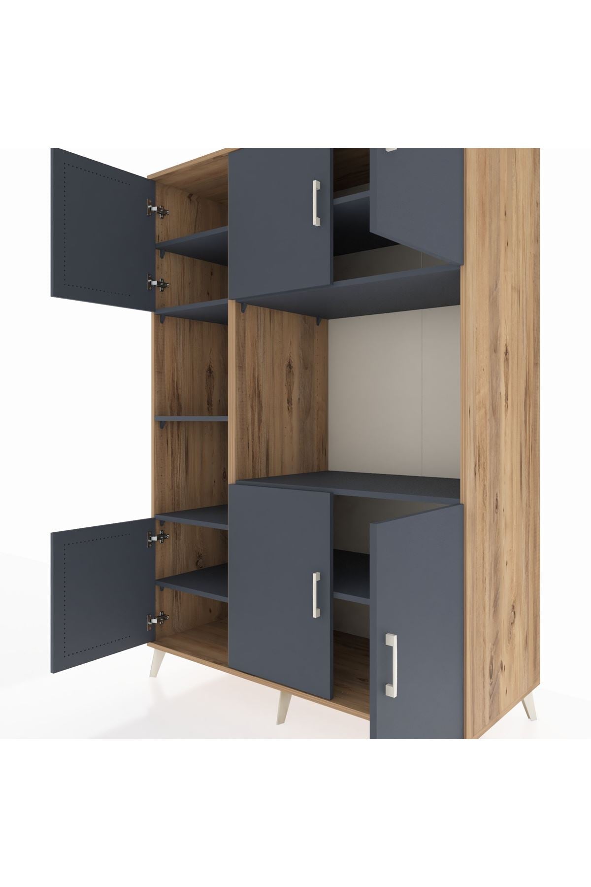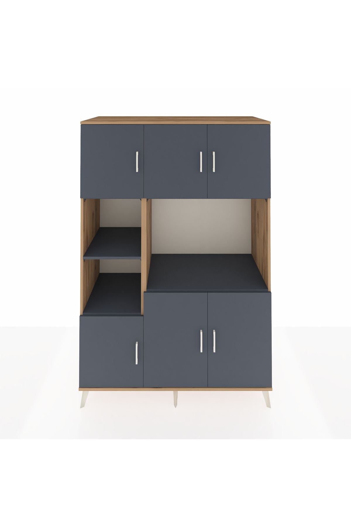 Kronos Dolap 9 Raflı 6 Kapaklı 132x59x195 Çam-Antrasit/Antrasit