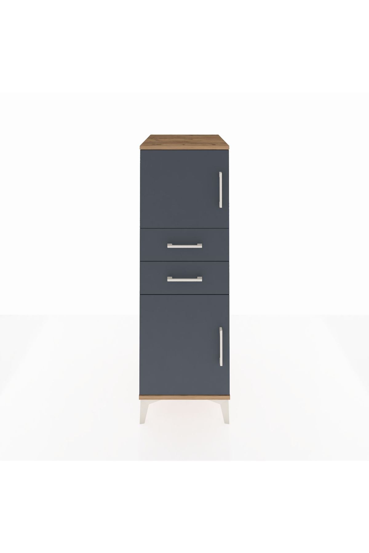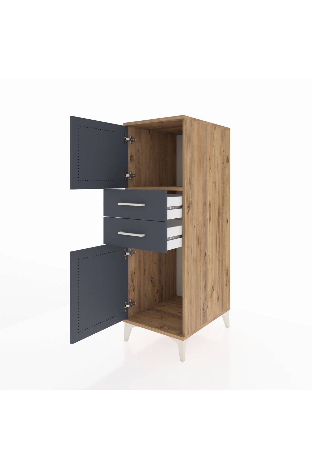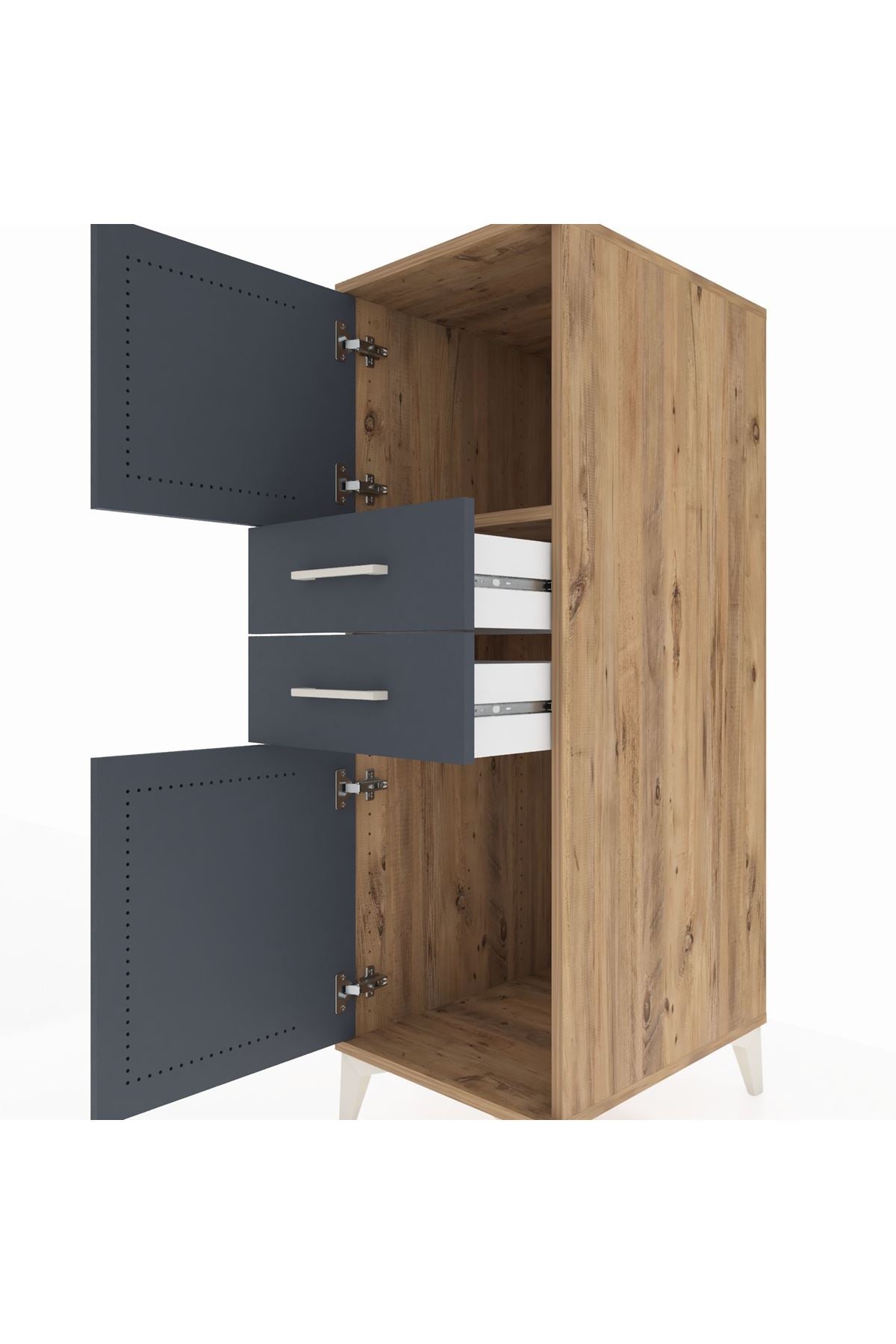 Kronos Dolap Tek Raflı 2 Çekmeceli 2 Kapaklı 44x59x134 Çam-Antrasit