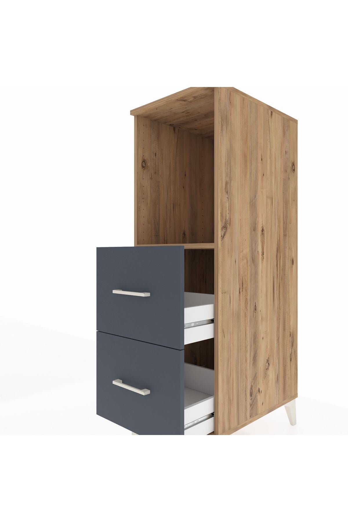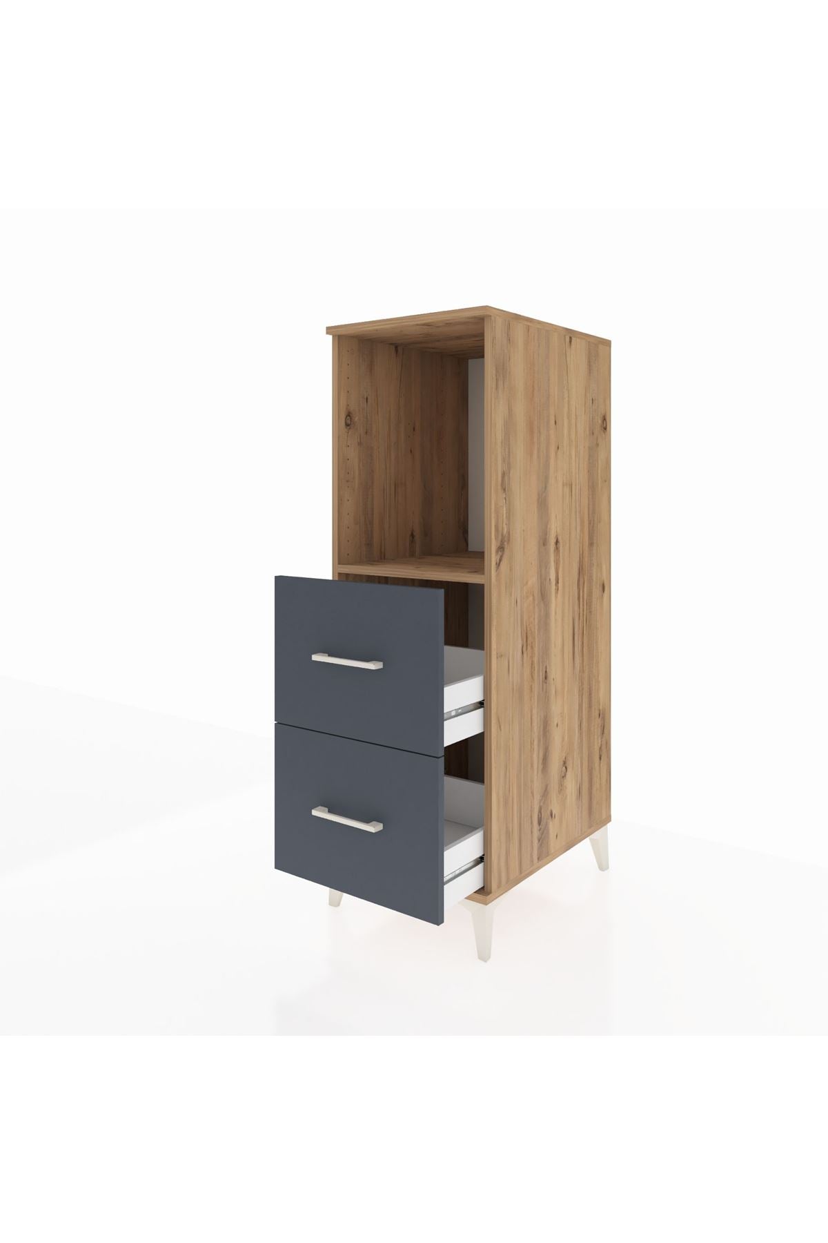 Kronos Dolap Tek Raflı 2 Çekmeceli 44x59x134 Çam-Antrasit