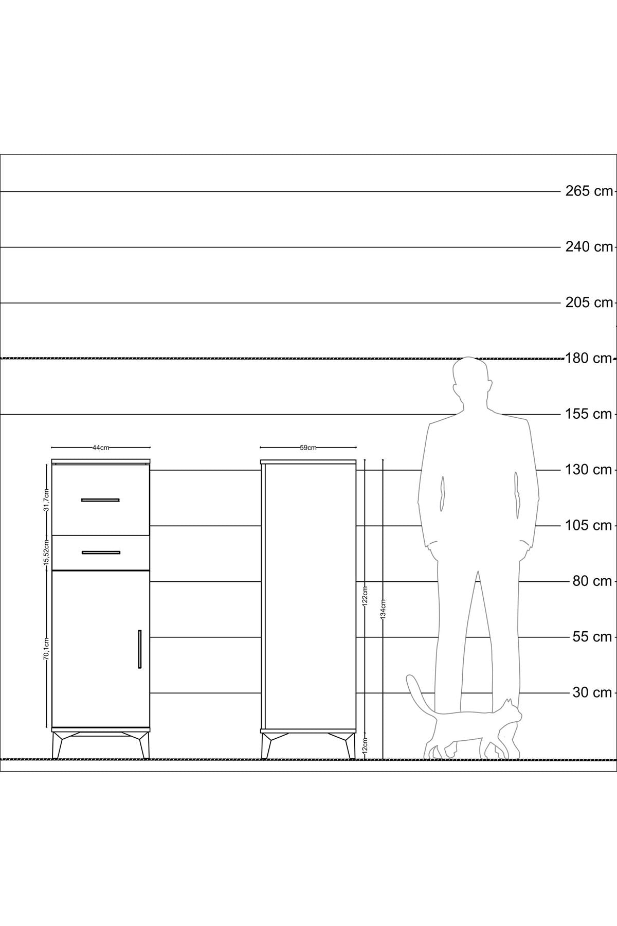 Kronos Dolap Tek Raflı 2 Çekmeceli Tek Kapaklı 44x59x134 Aytaşı-Çam