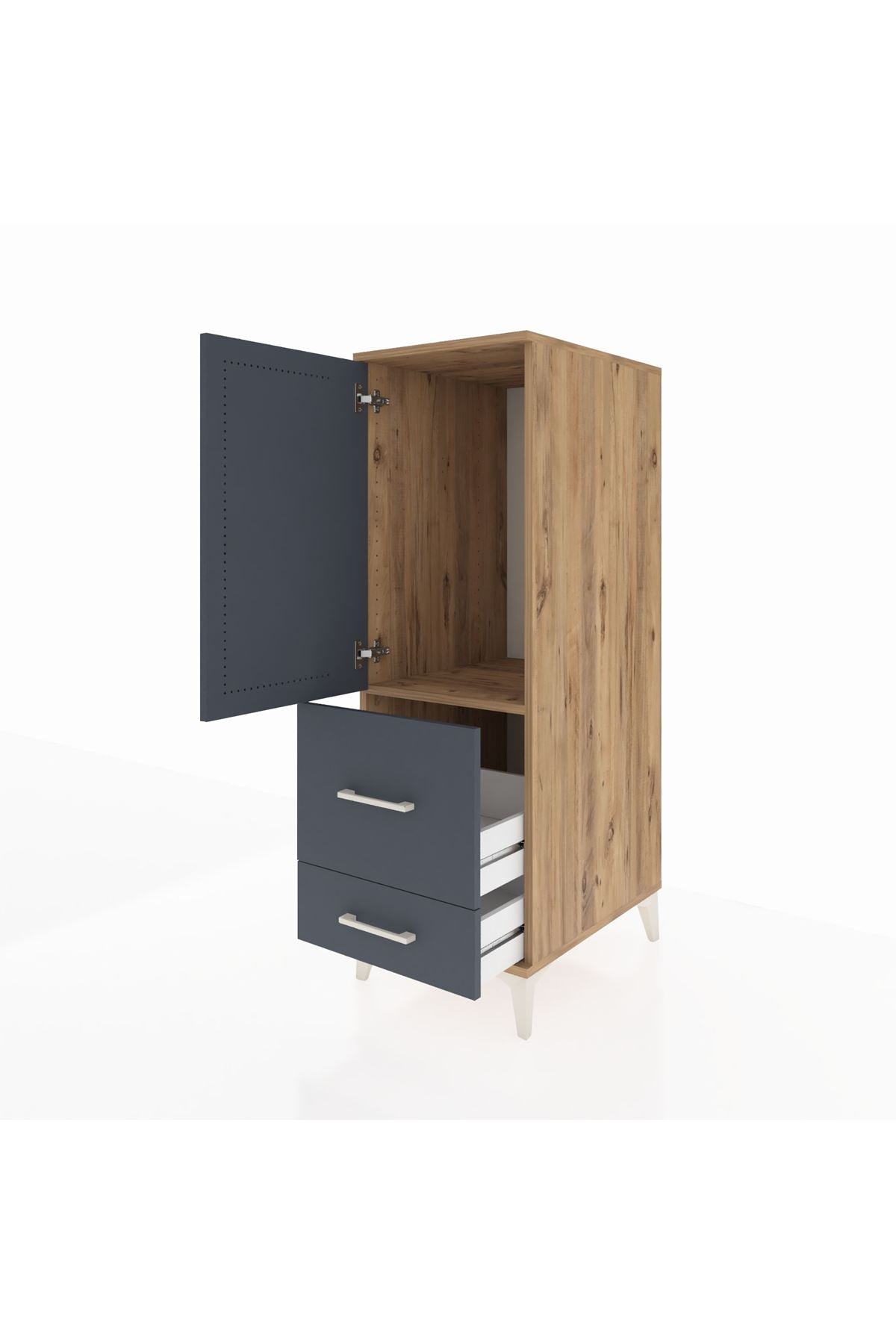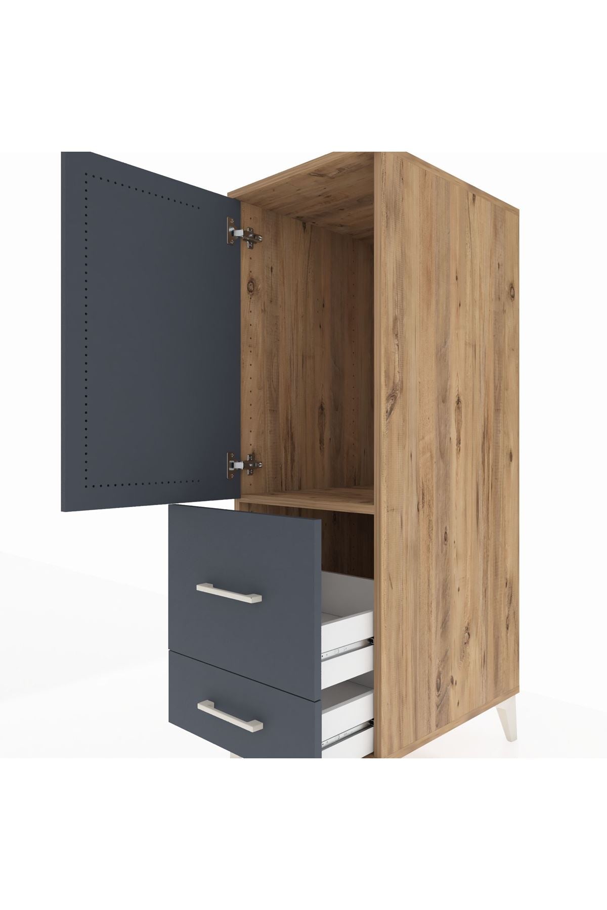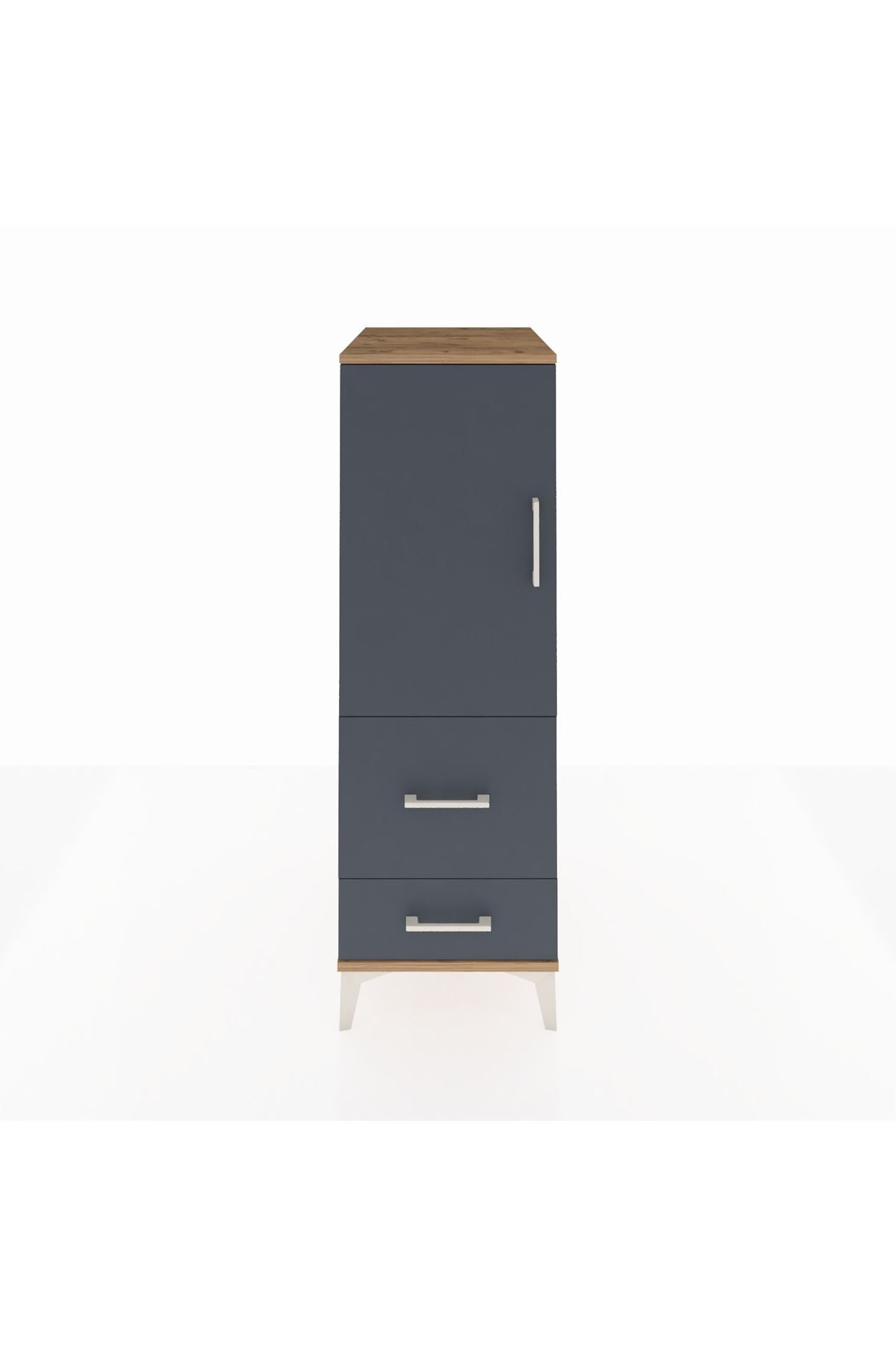 Kronos Dolap Tek Raflı 2 Çekmeceli Tek Kapaklı 44x59x134 Çam-Antrasit