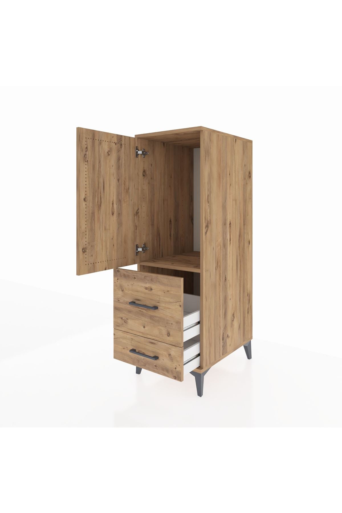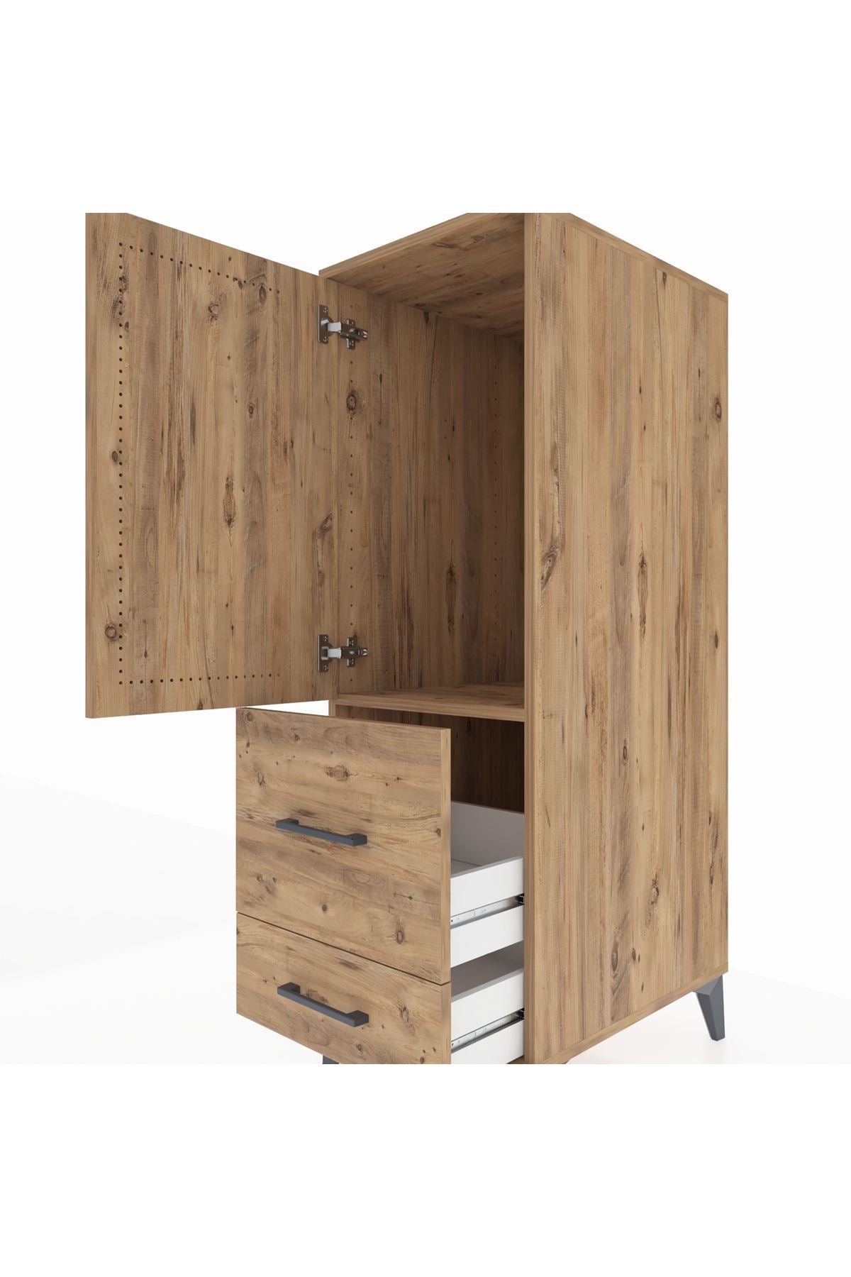 Kronos Dolap Tek Raflı 2 Çekmeceli Tek Kapaklı 44x59x134 Çam-Çam