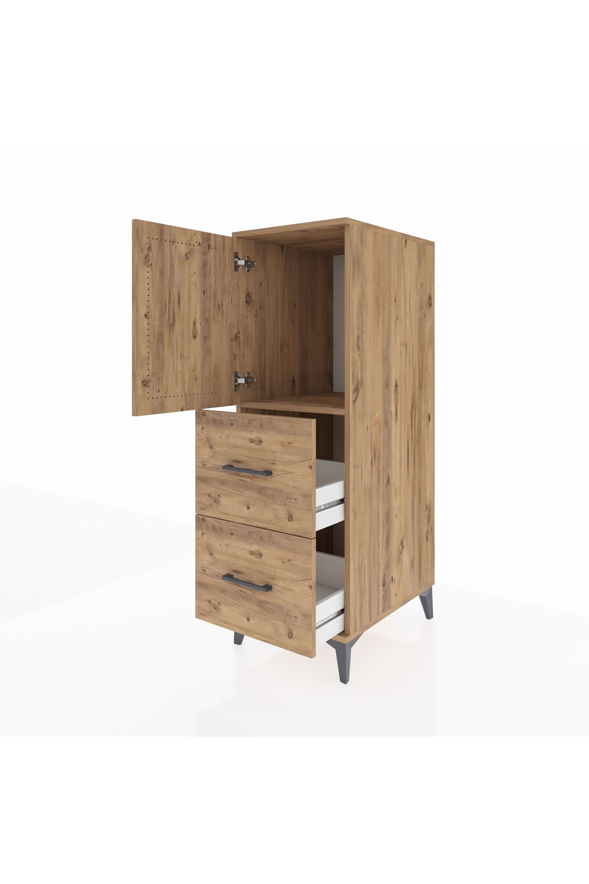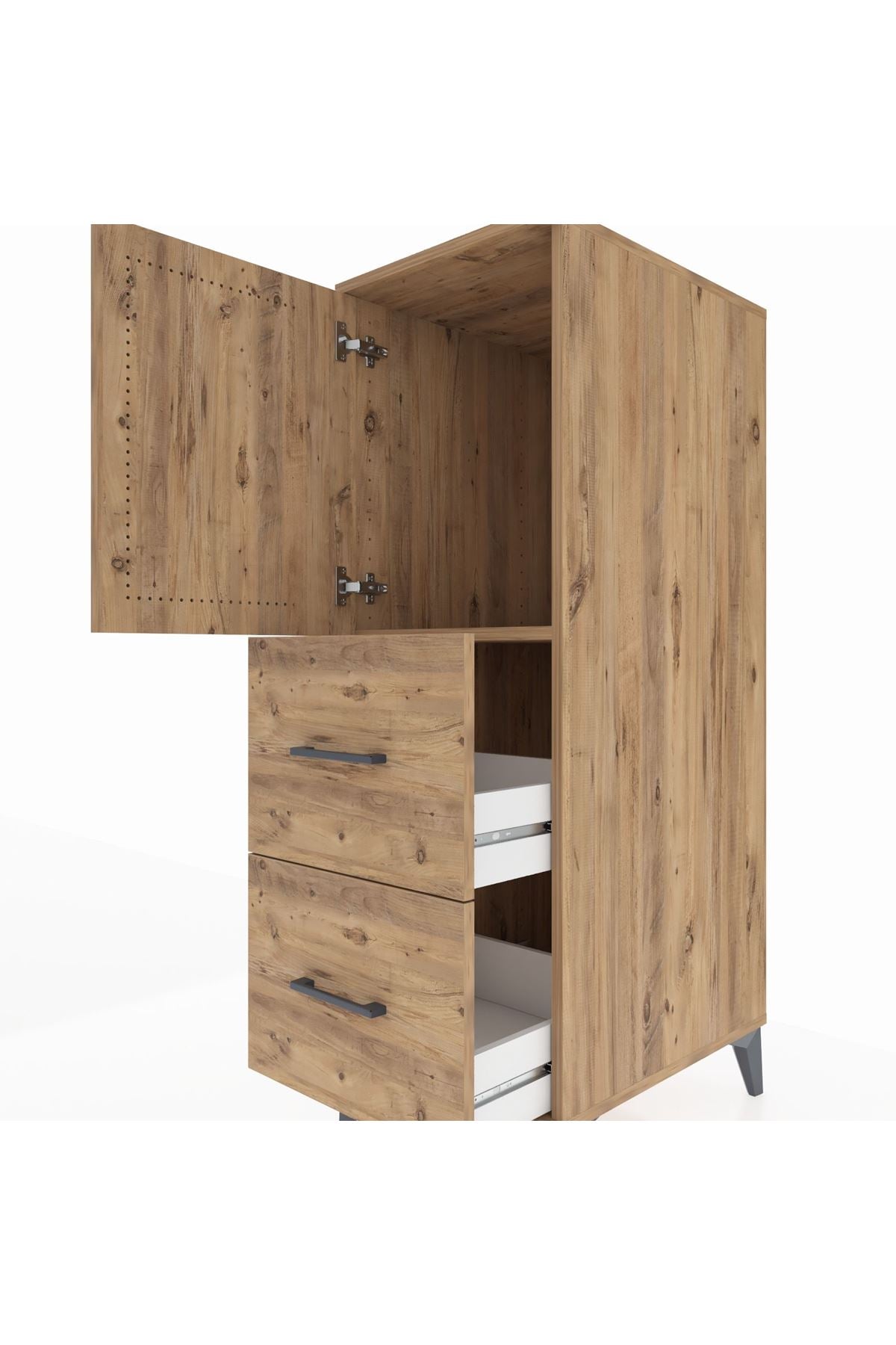 Kronos Dolap Tek Raflı 2 Çekmeceli Tek Kapaklı 44x59x134 Çam-Çam