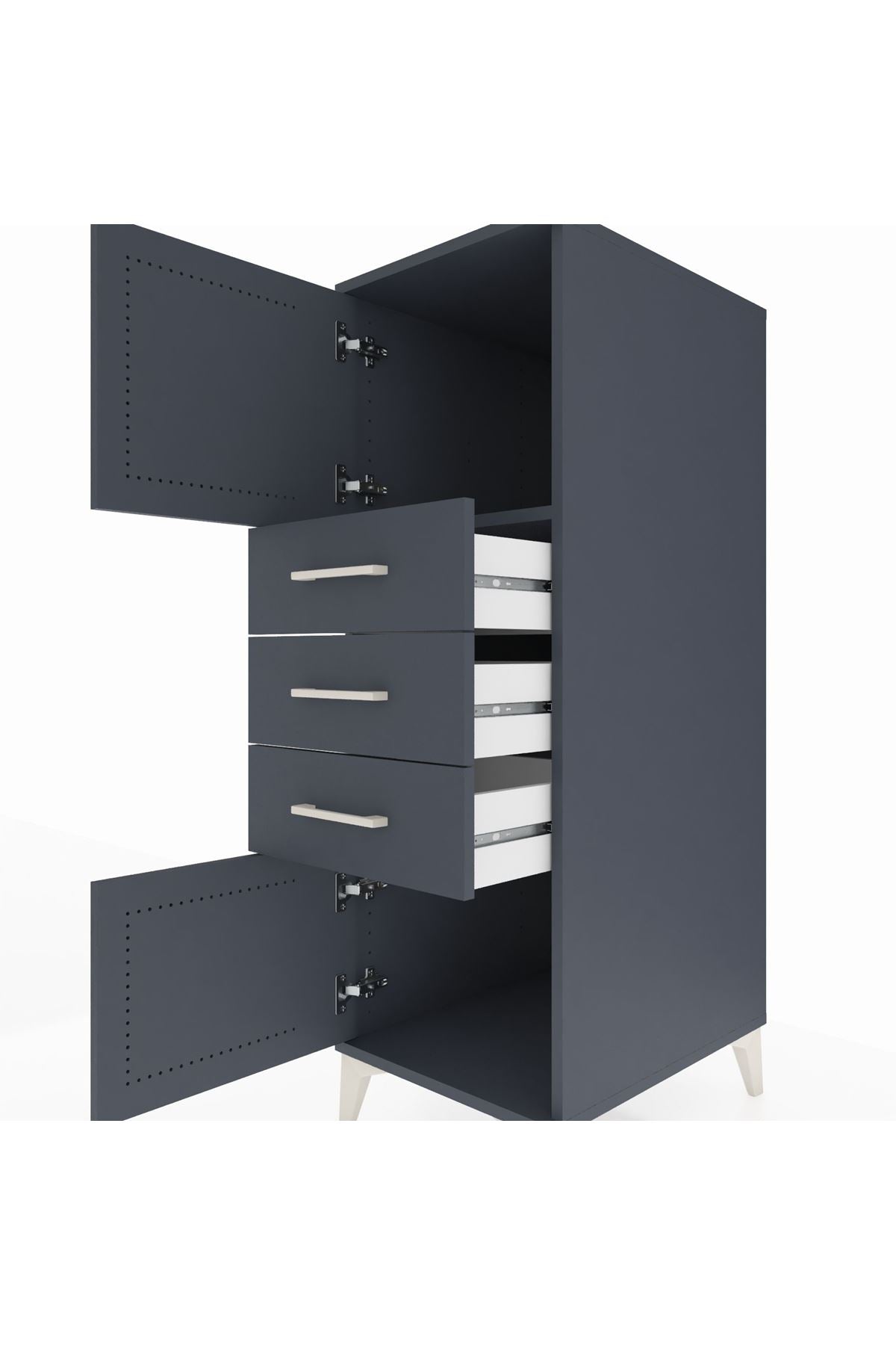 Kronos Dolap Tek Raflı 3 Çekmeceli 2 Kapaklı 44x59x134 Antrasit-Antrasit