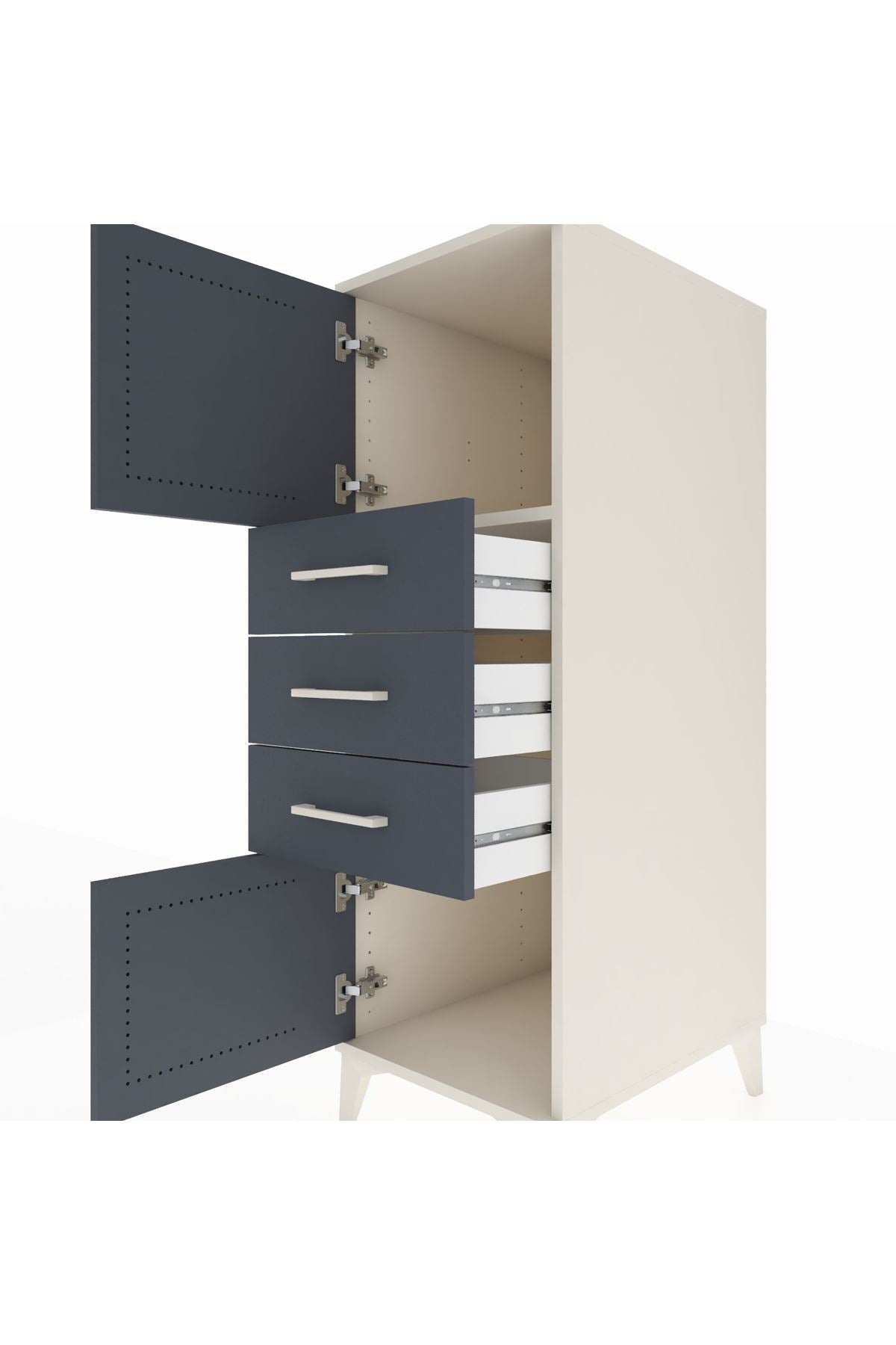 Kronos Dolap Tek Raflı 3 Çekmeceli 2 Kapaklı 44x59x134 Aytaşı-Antrasit