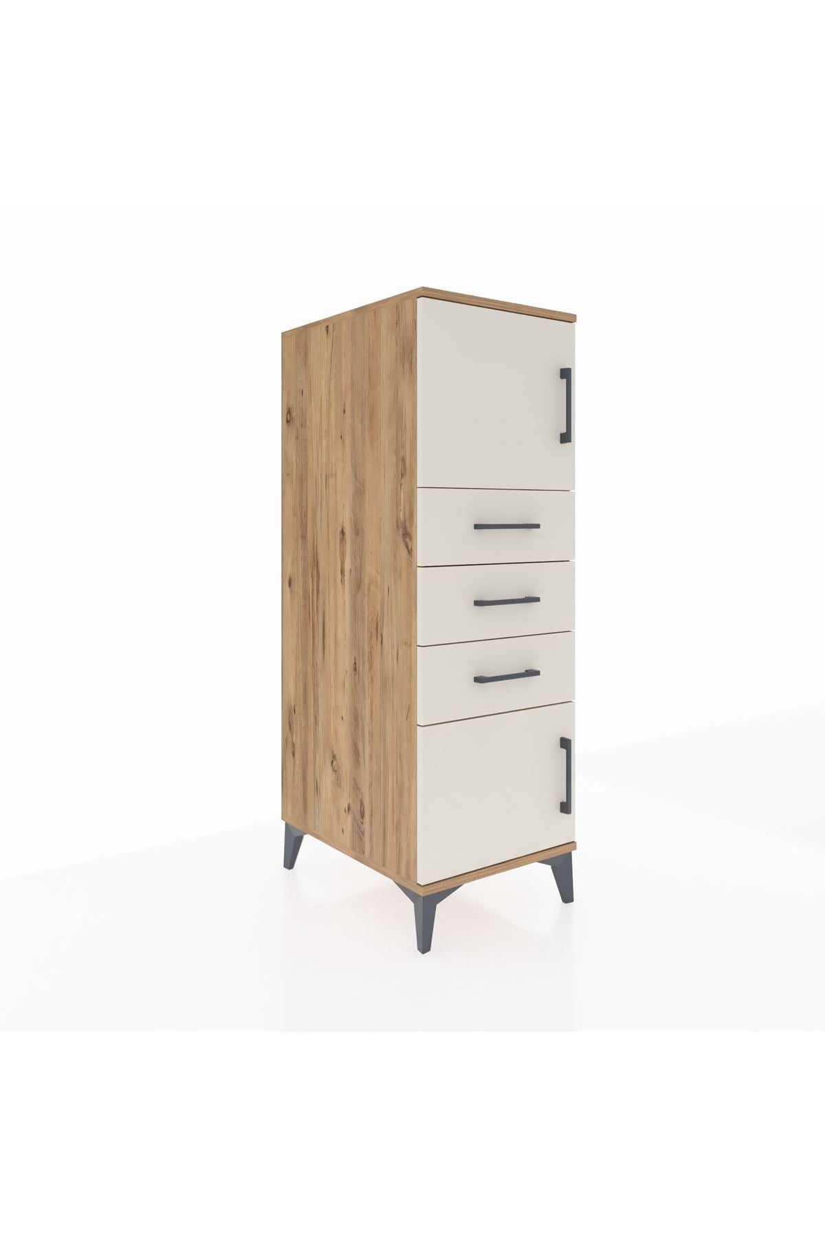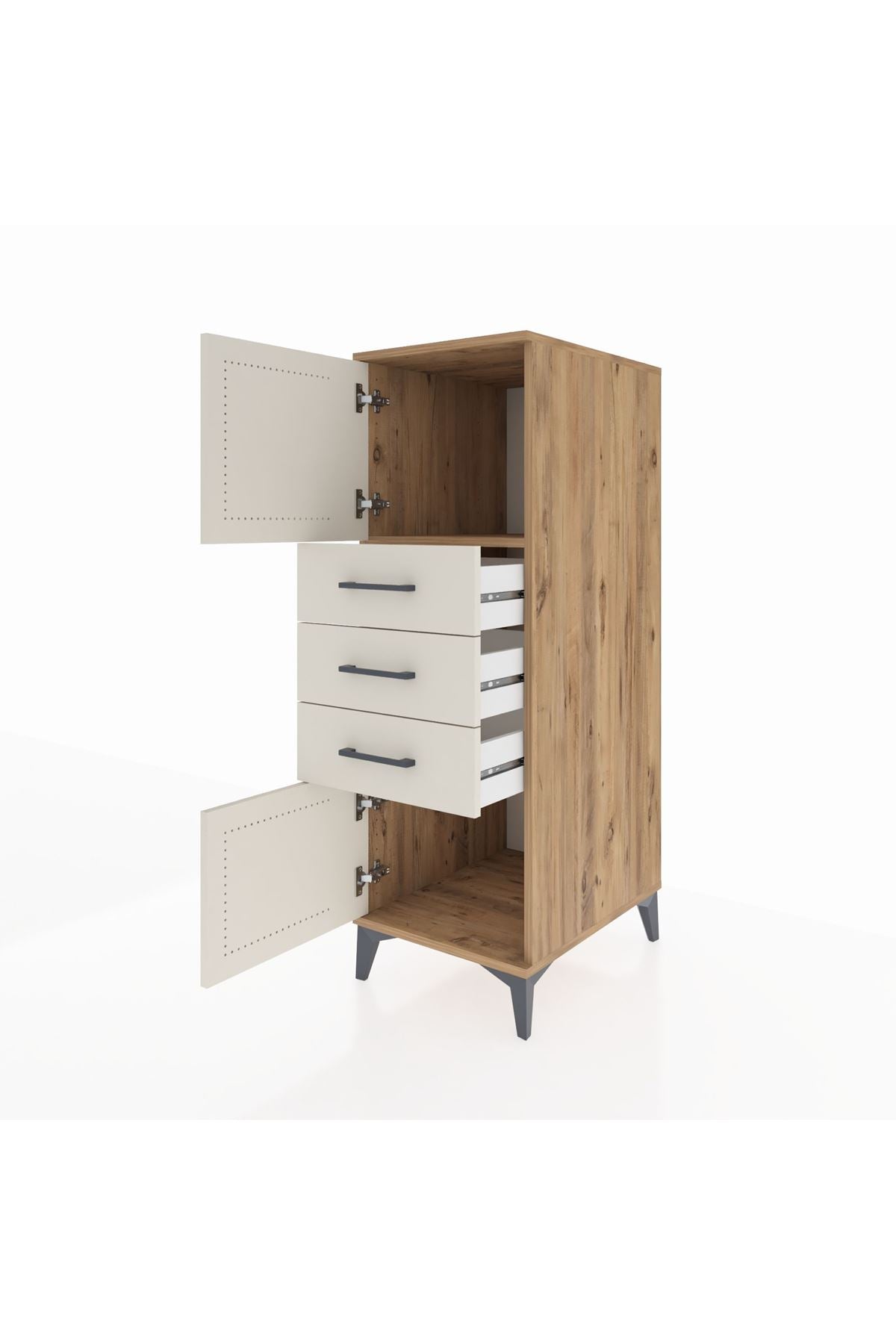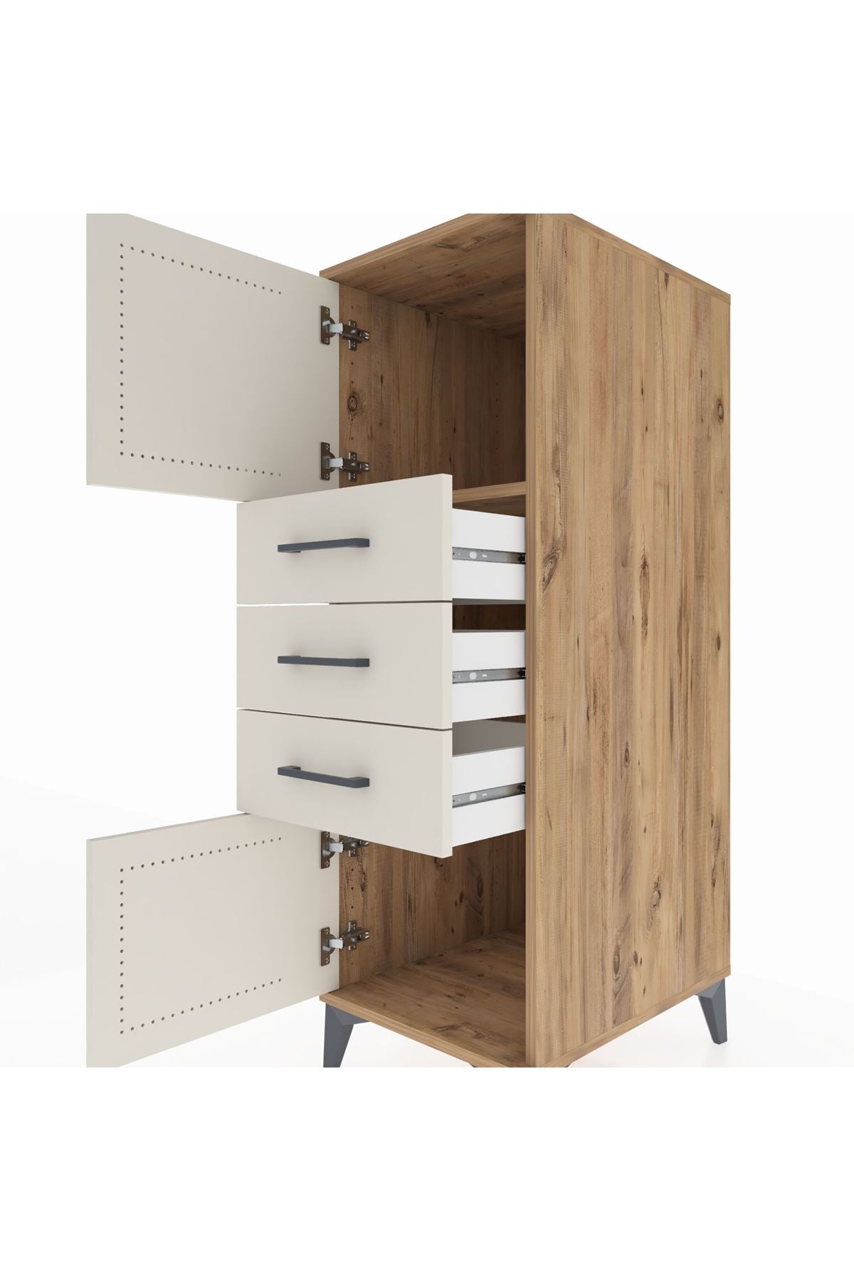 Kronos Dolap Tek Raflı 3 Çekmeceli 2 Kapaklı 44x59x134 Çam-Aytaşı