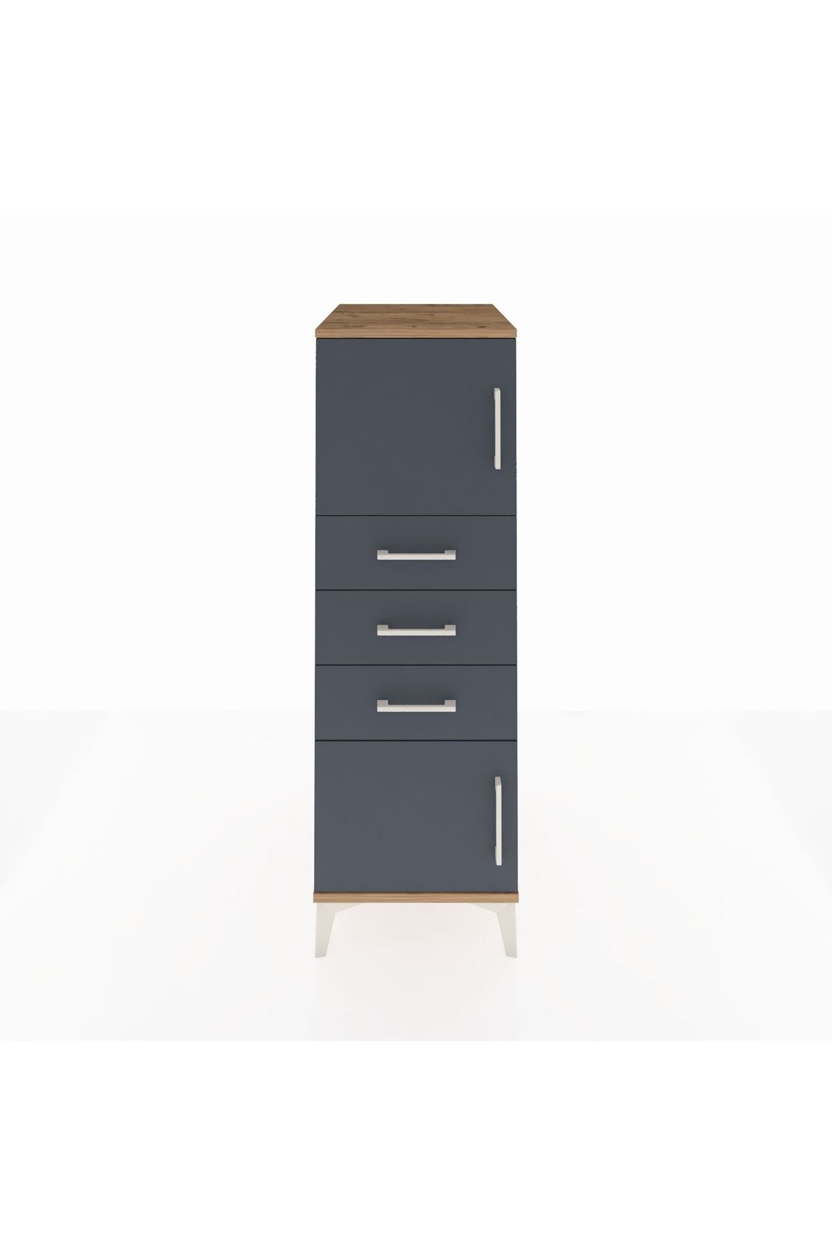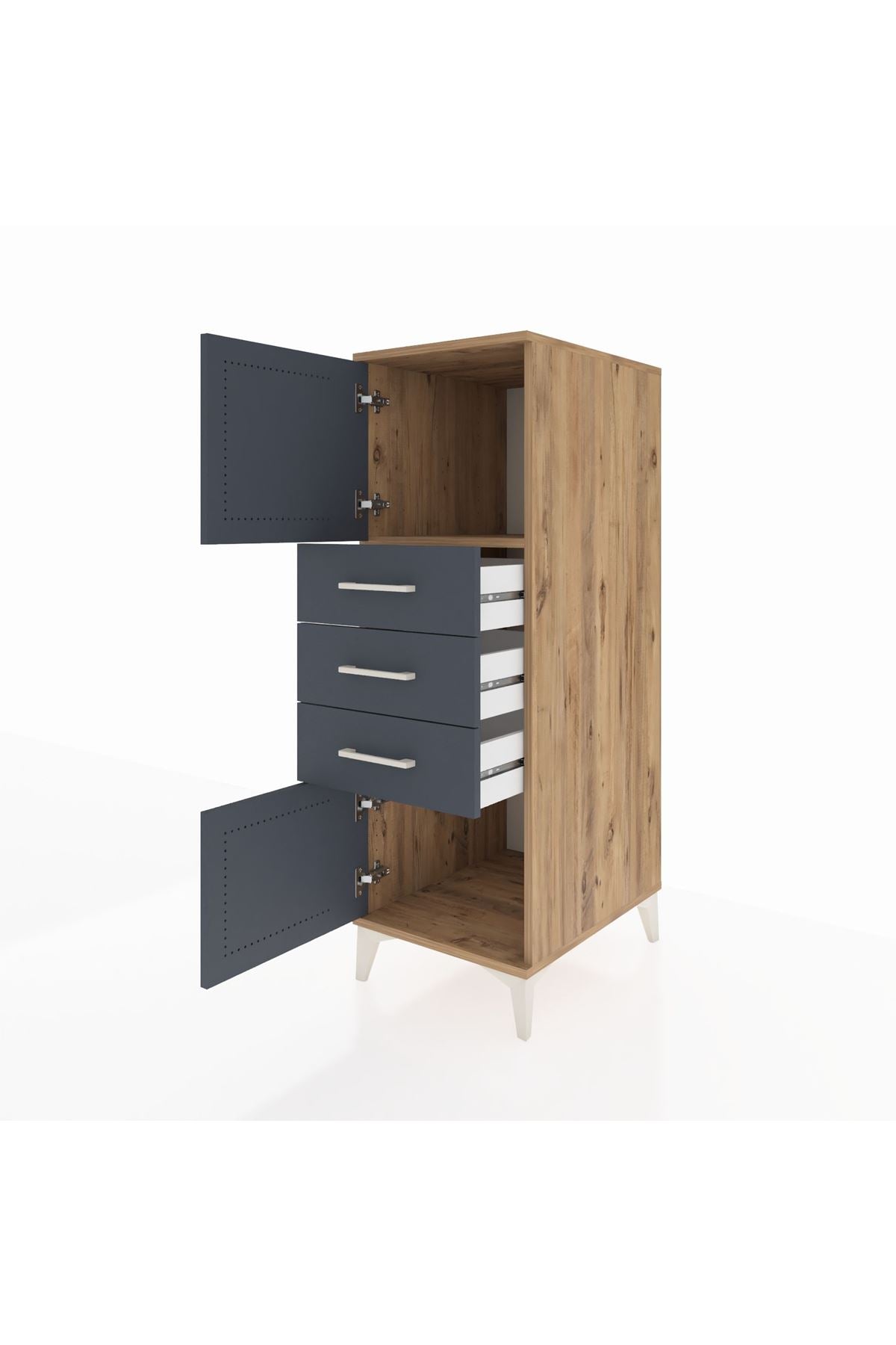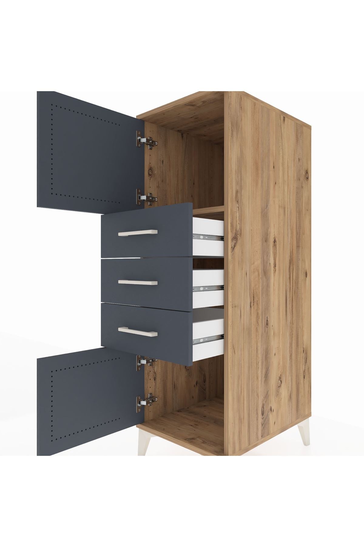 Kronos Dolap Tek Raflı 3 Çekmeceli 2 Kapaklı 44x59x134 Çam-Antrasit