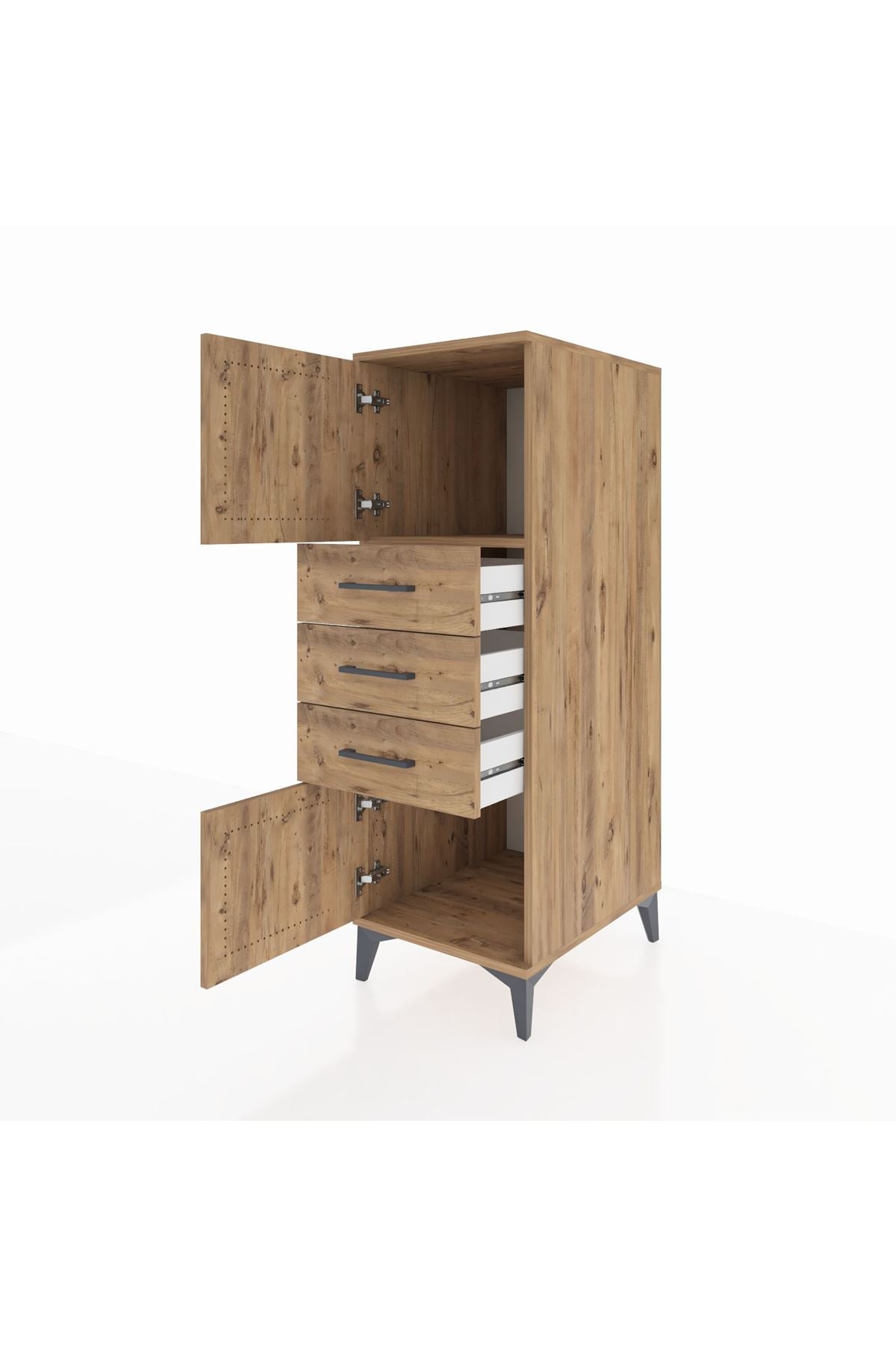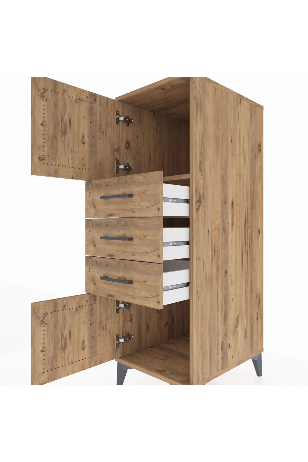 Kronos Dolap Tek Raflı 3 Çekmeceli 2 Kapaklı 44x59x134 Çam-Çam