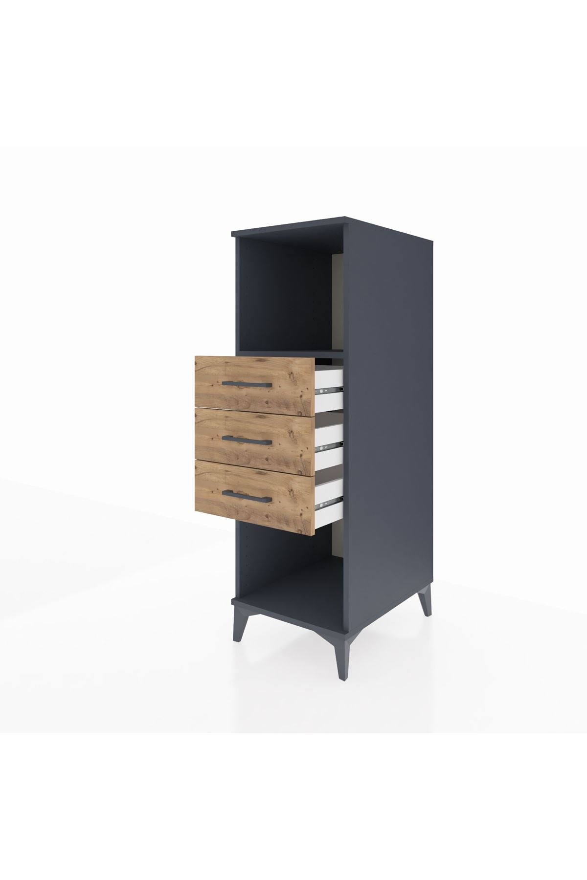 Kronos Dolap Tek Raflı 3 Çekmeceli 44x59x134 Antrasit-Çam
