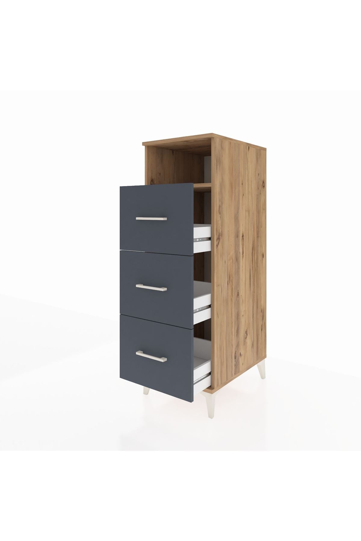 Kronos Dolap Tek Raflı 3 Çekmeceli 44x59x134 Çam-Antrasit
