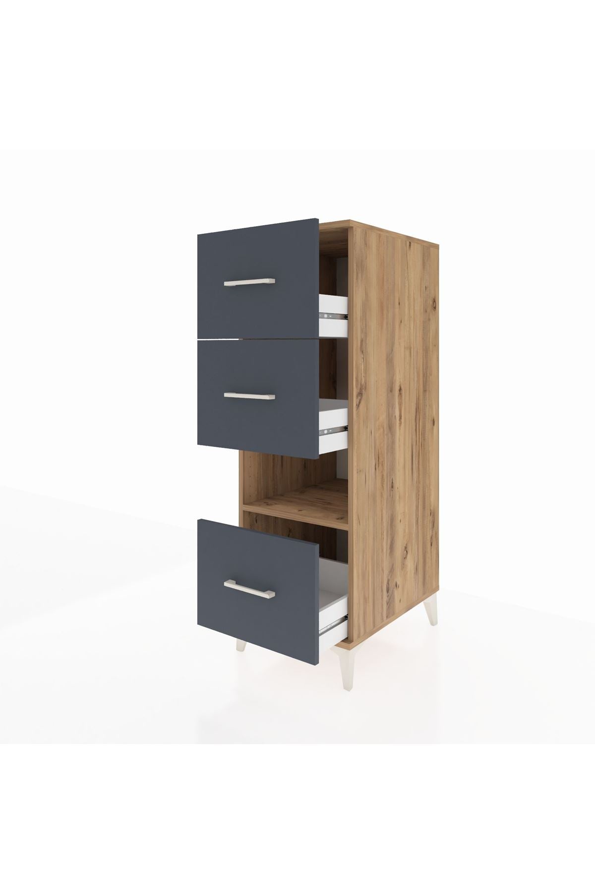 Kronos Dolap Tek Raflı 3 Çekmeceli 44x59x134 Çam-Antrasit