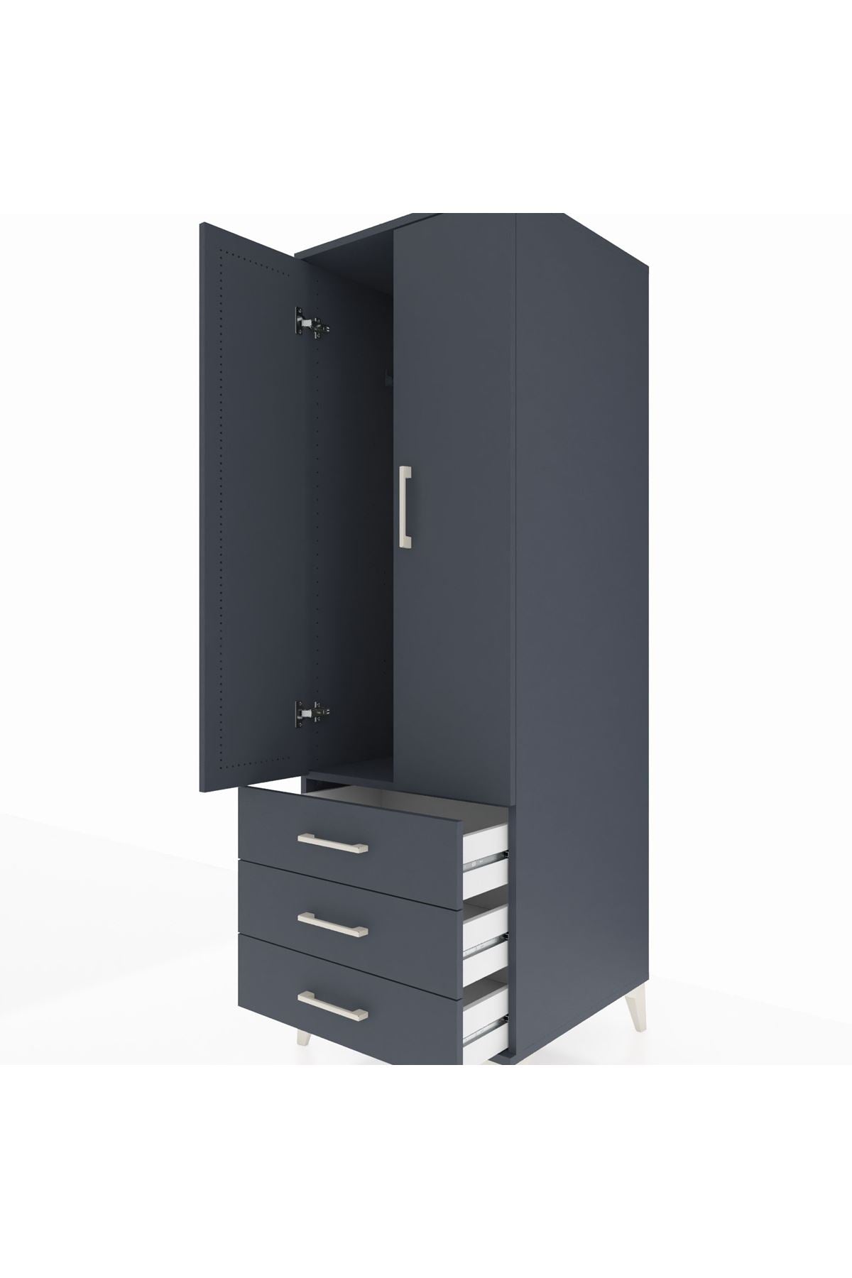 Kronos Dolap Tek Raflı 3 Çekmeceli Tek Askılı 60x59x182 Antrasit-Antrasit