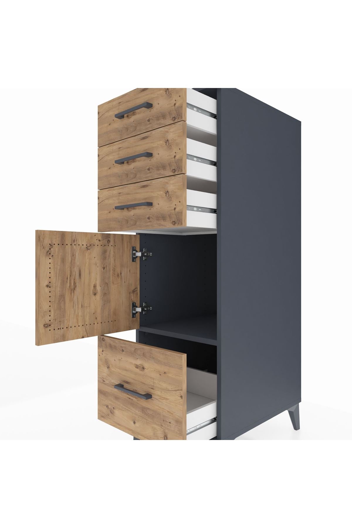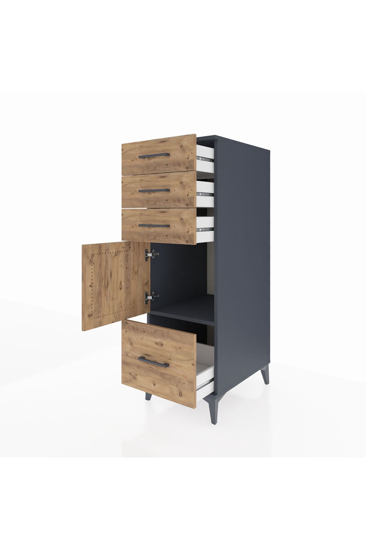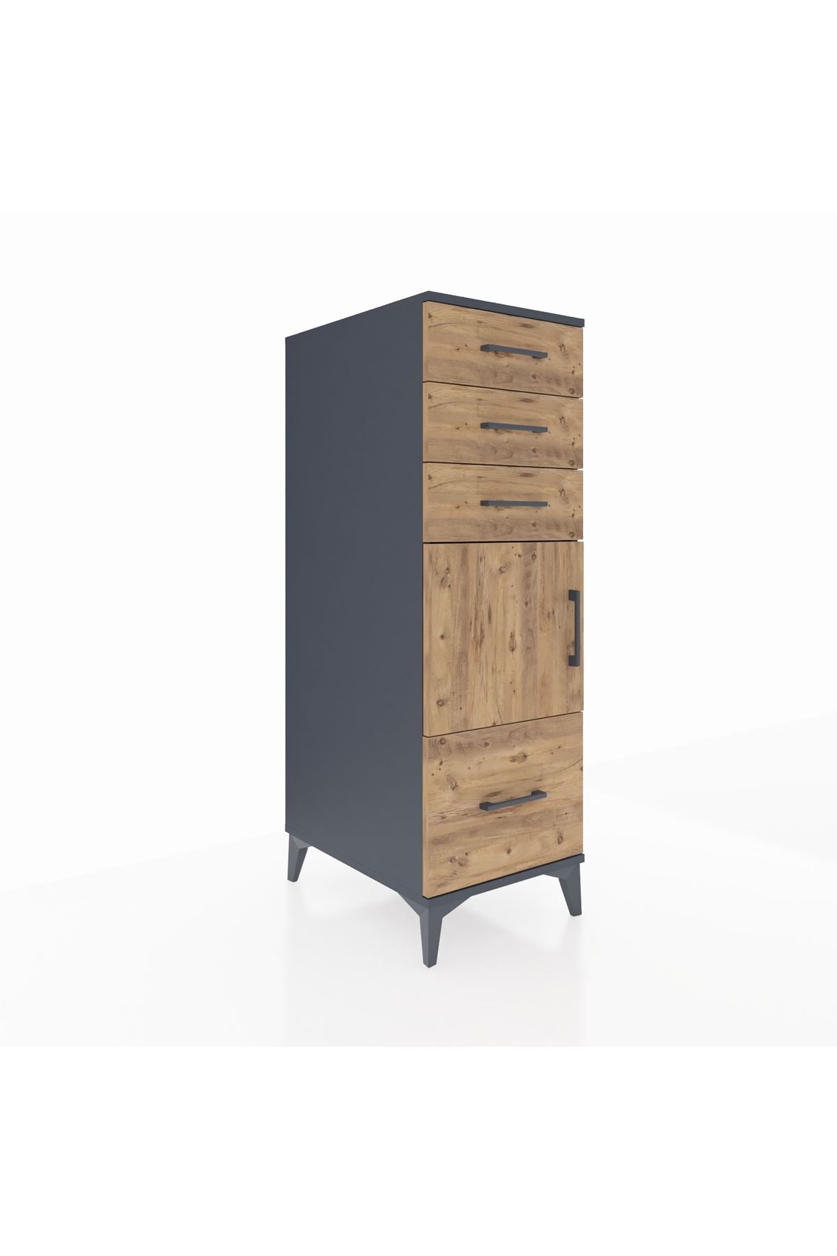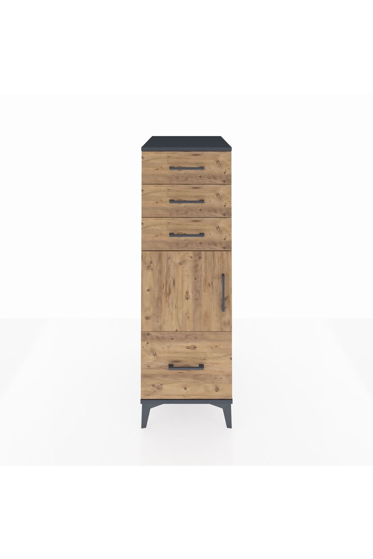 Kronos Dolap Tek Raflı 3 Çekmeceli Tek Kapaklı 44x59x134 Antrasit-Çam