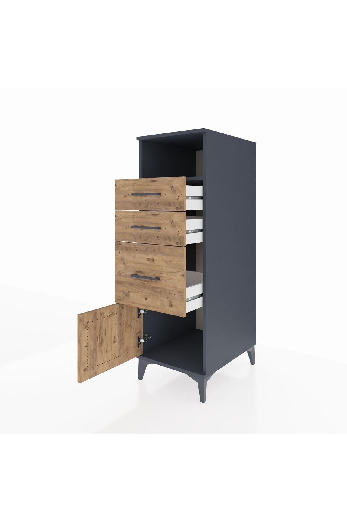 🌟 Kronos Dolap, antrasit ve çam renkleriyle muhteşem bir uyum yakalarken, 44x59x134 cm ölçüleriyle mekânınıza şıklık katacak bir çözüm sunuyor. Artemis Koleksiyonu’nun enginliğinden ilham alarak tasarlanan bu dolap, hem estetik hem de fonksiyonel yapısıyla ihtiyacınıza özel bir dokunuş.