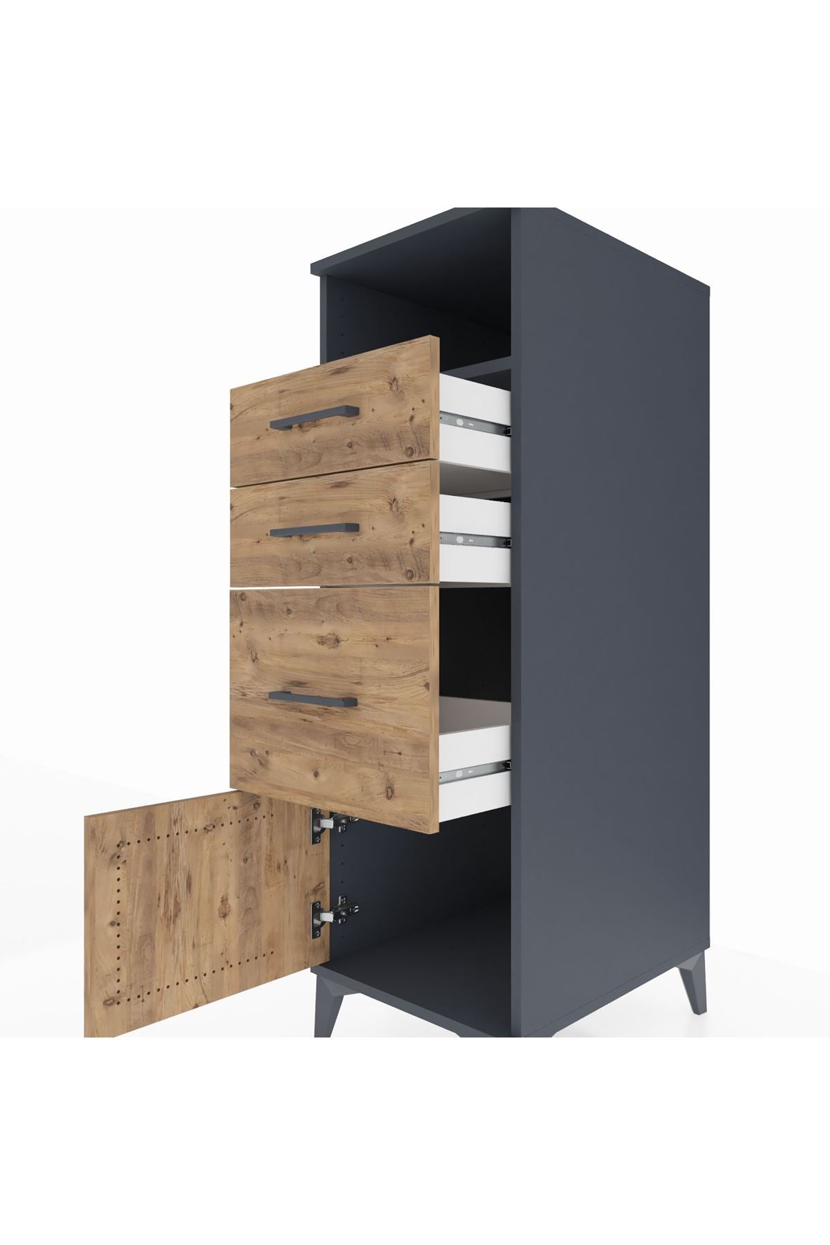 Kronos Dolap Tek Raflı 3 Çekmeceli Tek Kapaklı 44x59x134 Antrasit-Çam