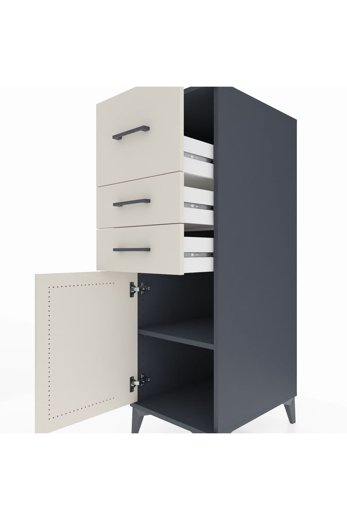 Kronos Dolap Tek Raflı 3 Çekmeceli Tek Kapaklı 44x59x134 Antrasit-Aytaşı