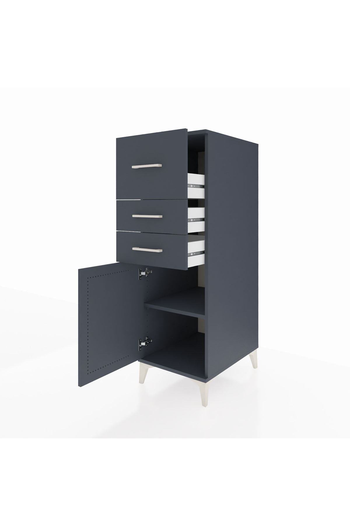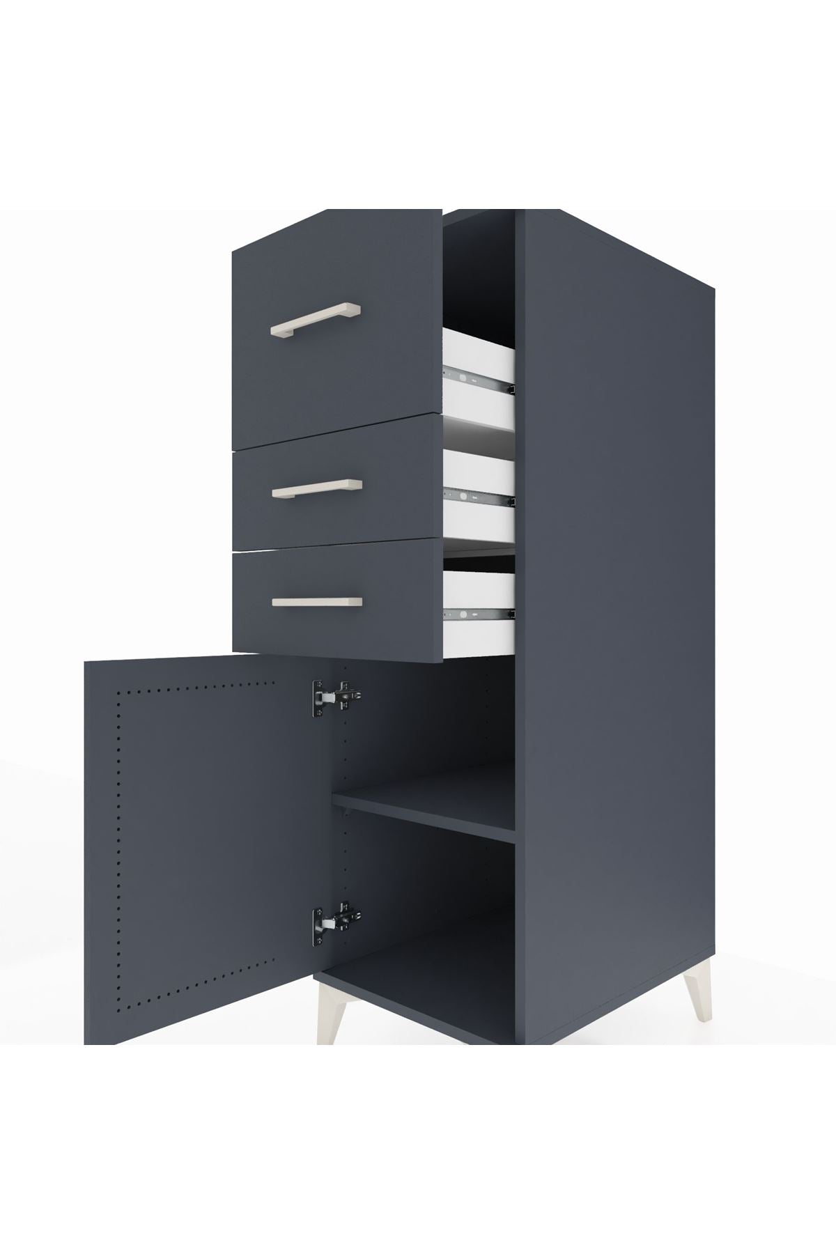 Kronos Dolap Tek Raflı 3 Çekmeceli Tek Kapaklı 44x59x134 Antrasit-Antrasit