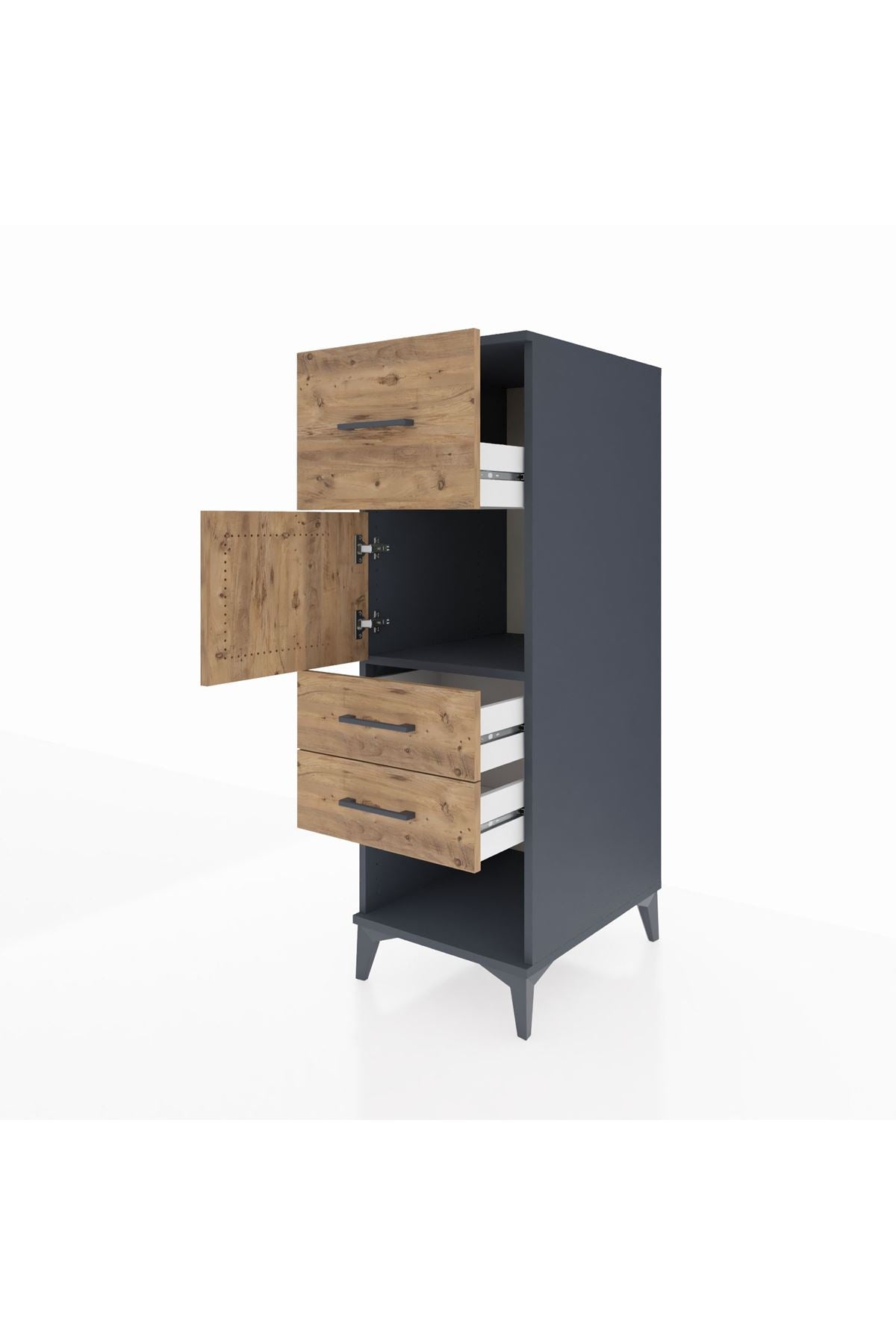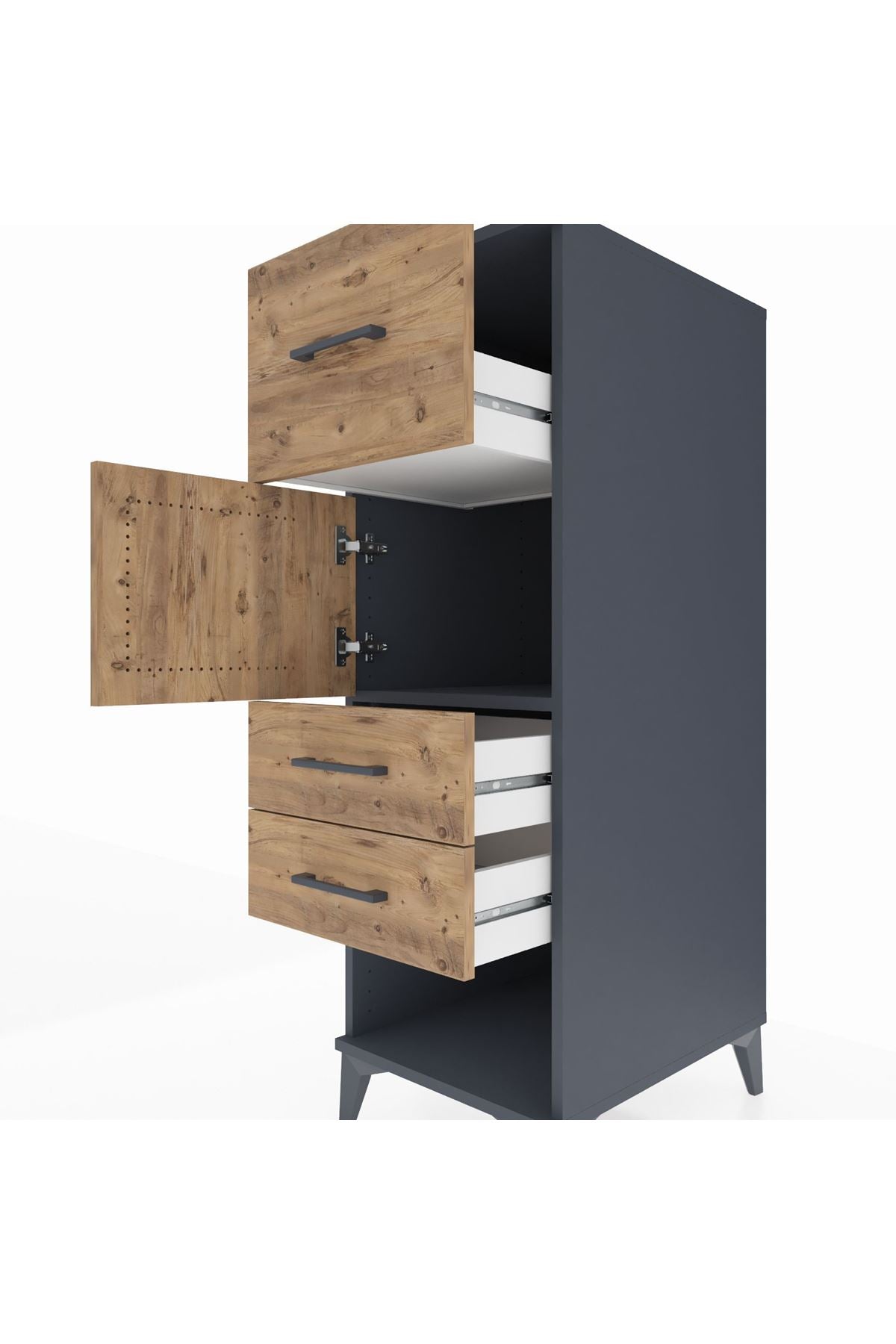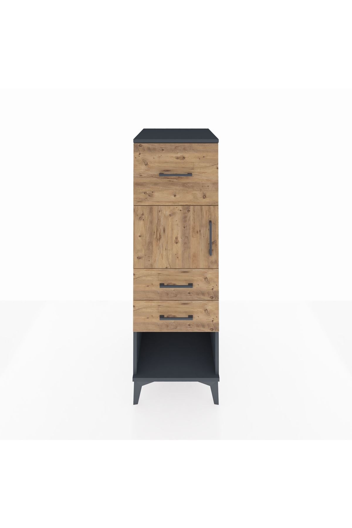 Kronos Dolap Tek Raflı 3 Çekmeceli Tek Kapaklı 44x59x134 Antrasit-Çam