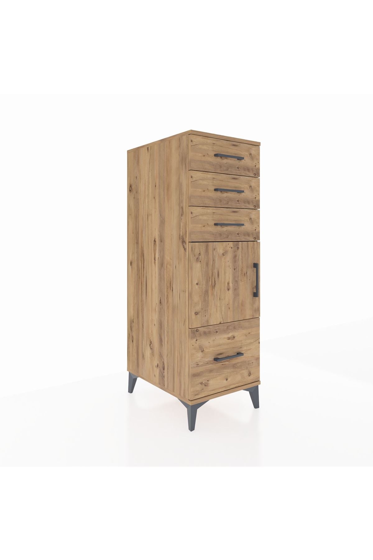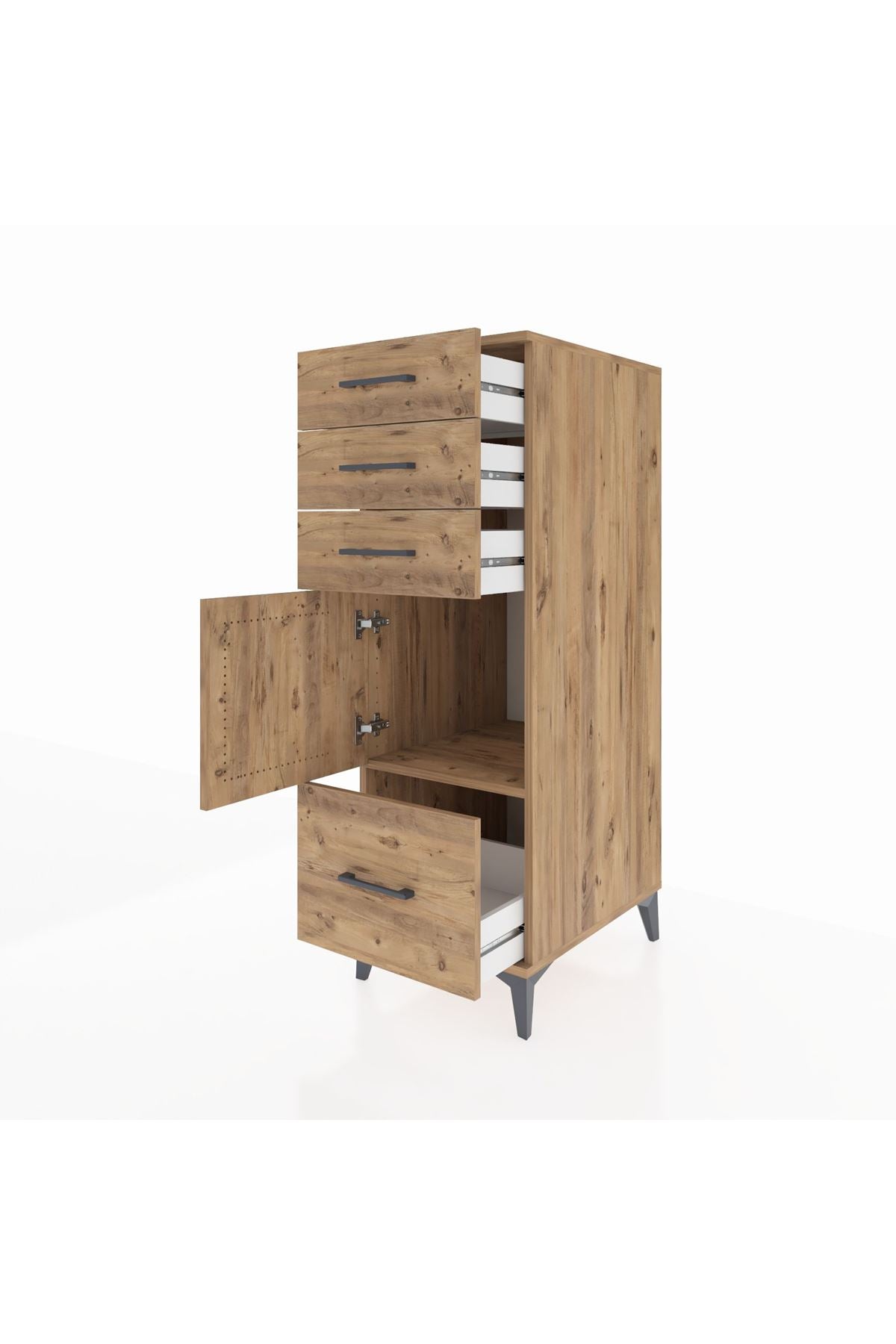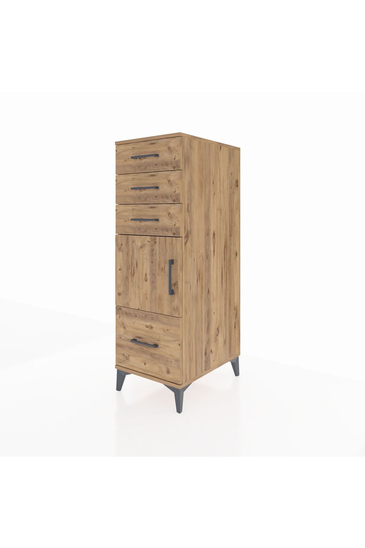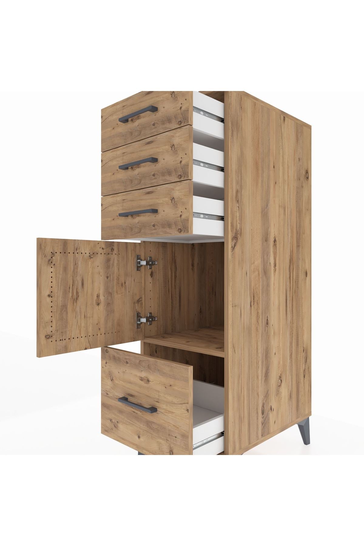 Kronos Dolap Tek Raflı 3 Çekmeceli Tek Kapaklı 44x59x134 Çam-Çam