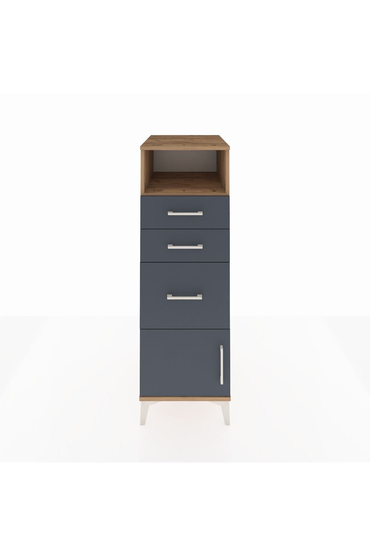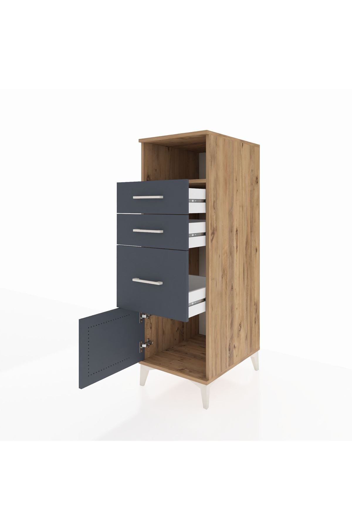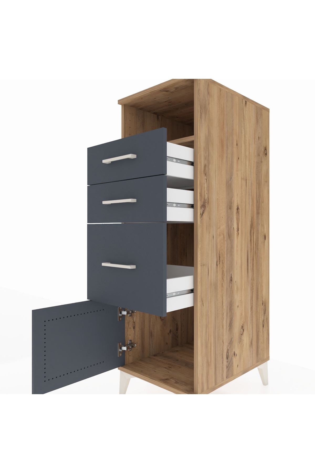 Kronos Dolap Tek Raflı 3 Çekmeceli Tek Kapaklı 44x59x134 Çam-Antrasit