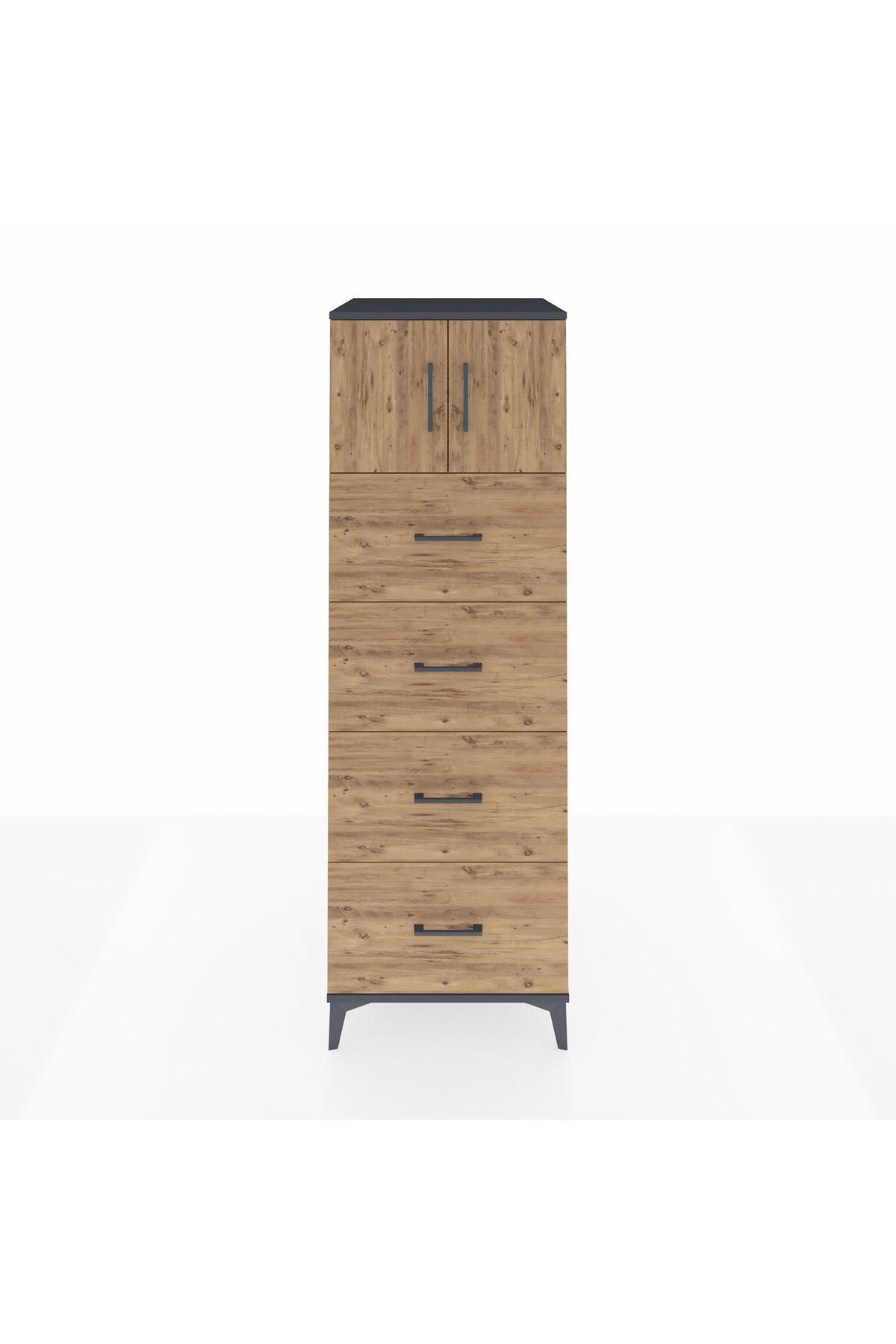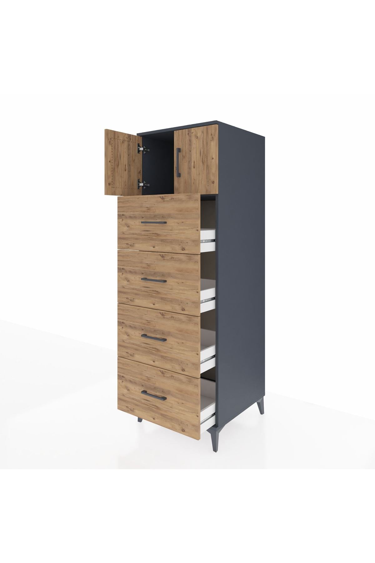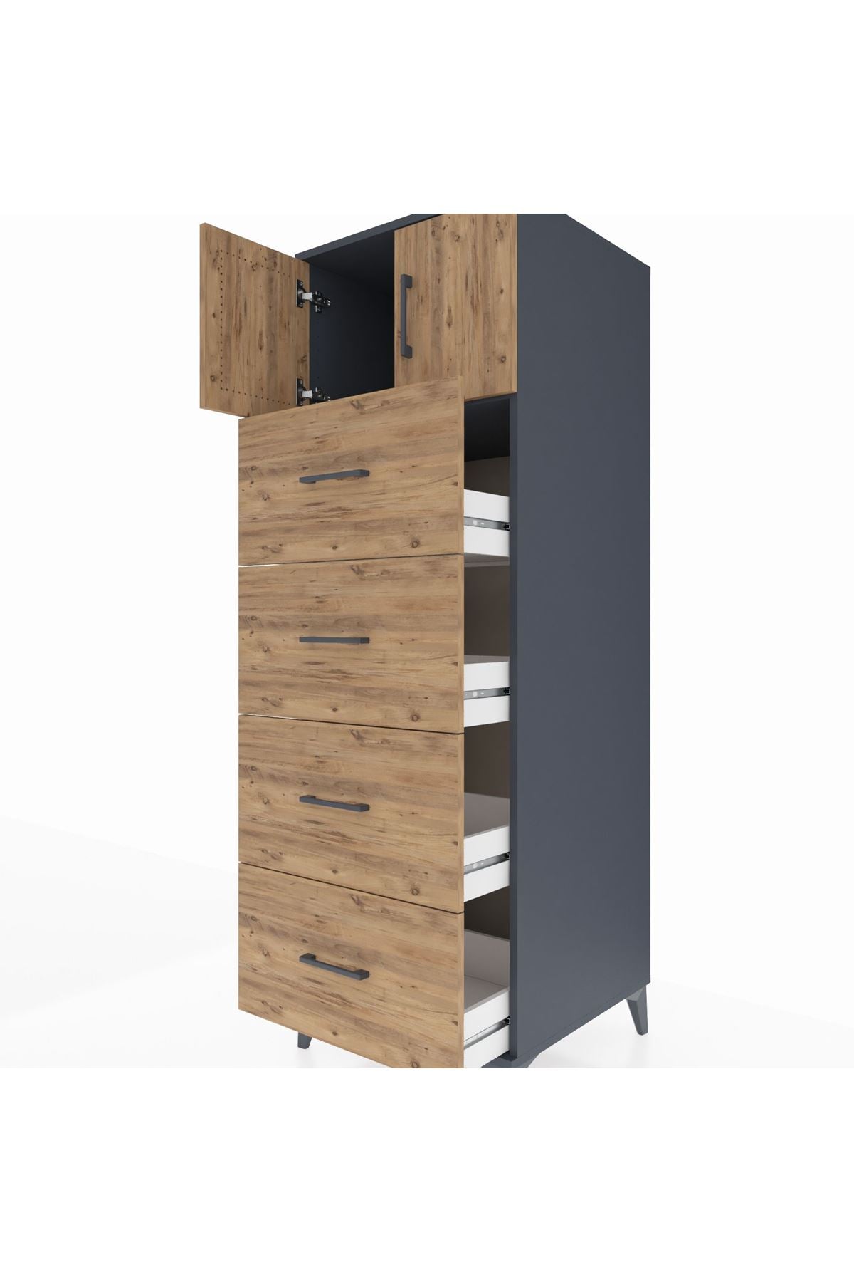 Kronos Dolap Tek Raflı 4 Çekmeceli 2 Kapaklı 60x59x182 Antrasit-Çam