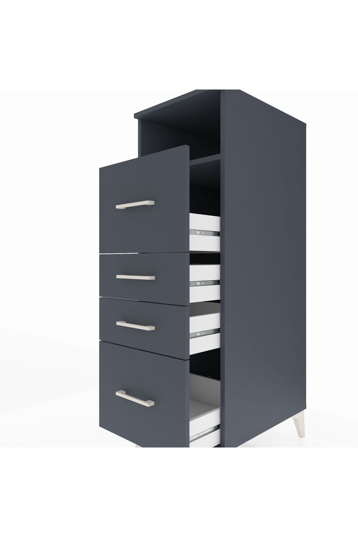 Kronos Dolap Tek Raflı 4 Çekmeceli 44x59x134 Antrasit-Antrasit