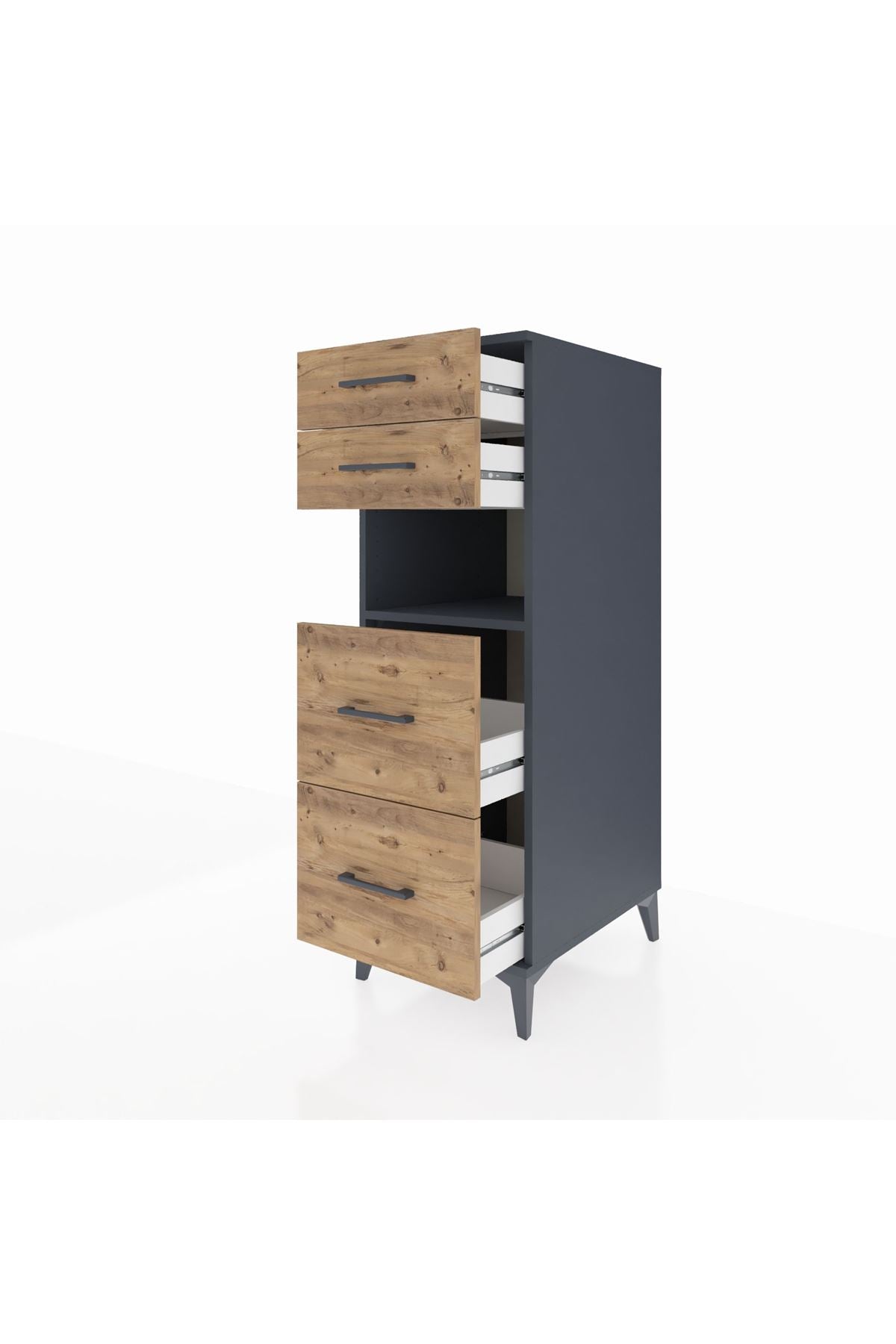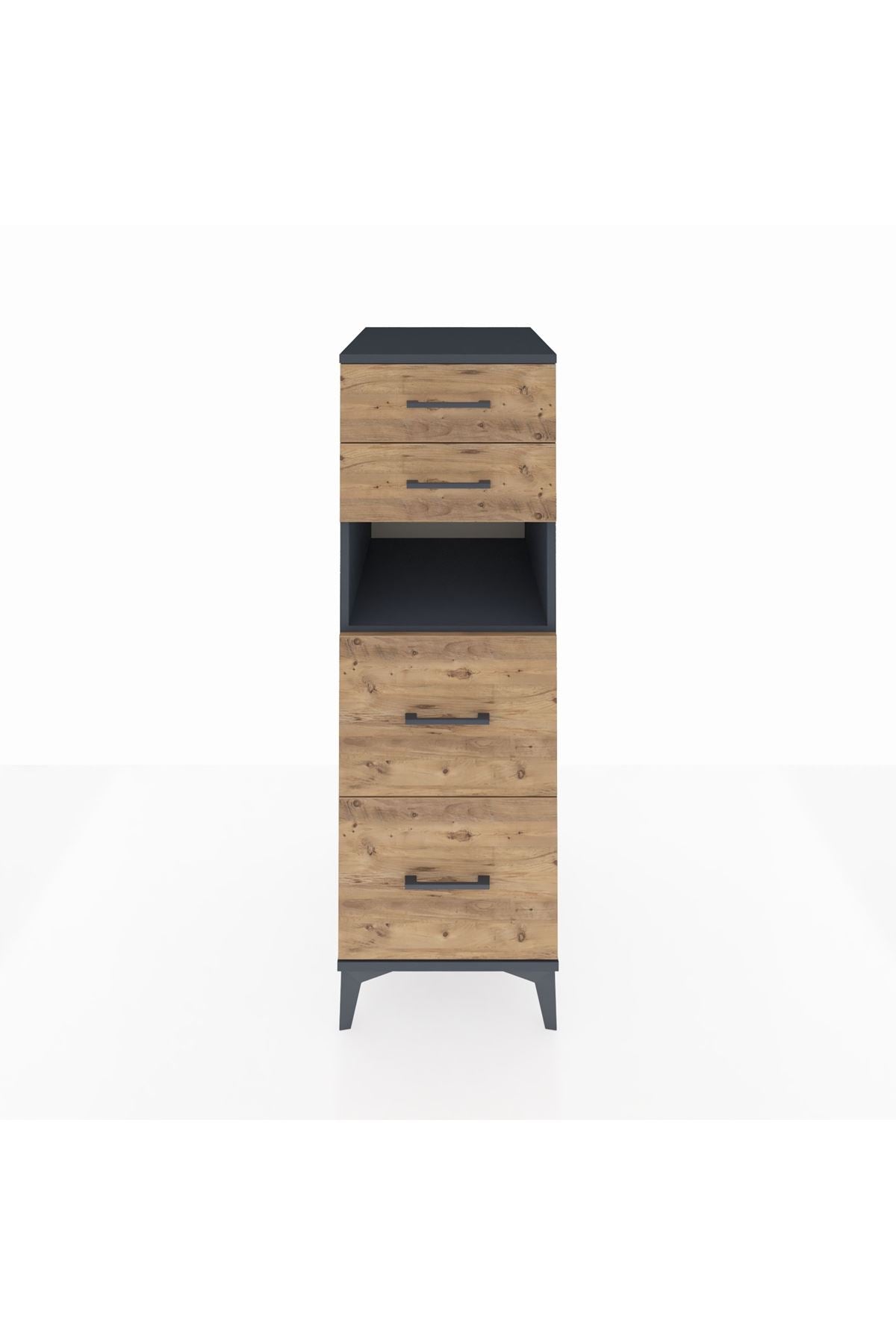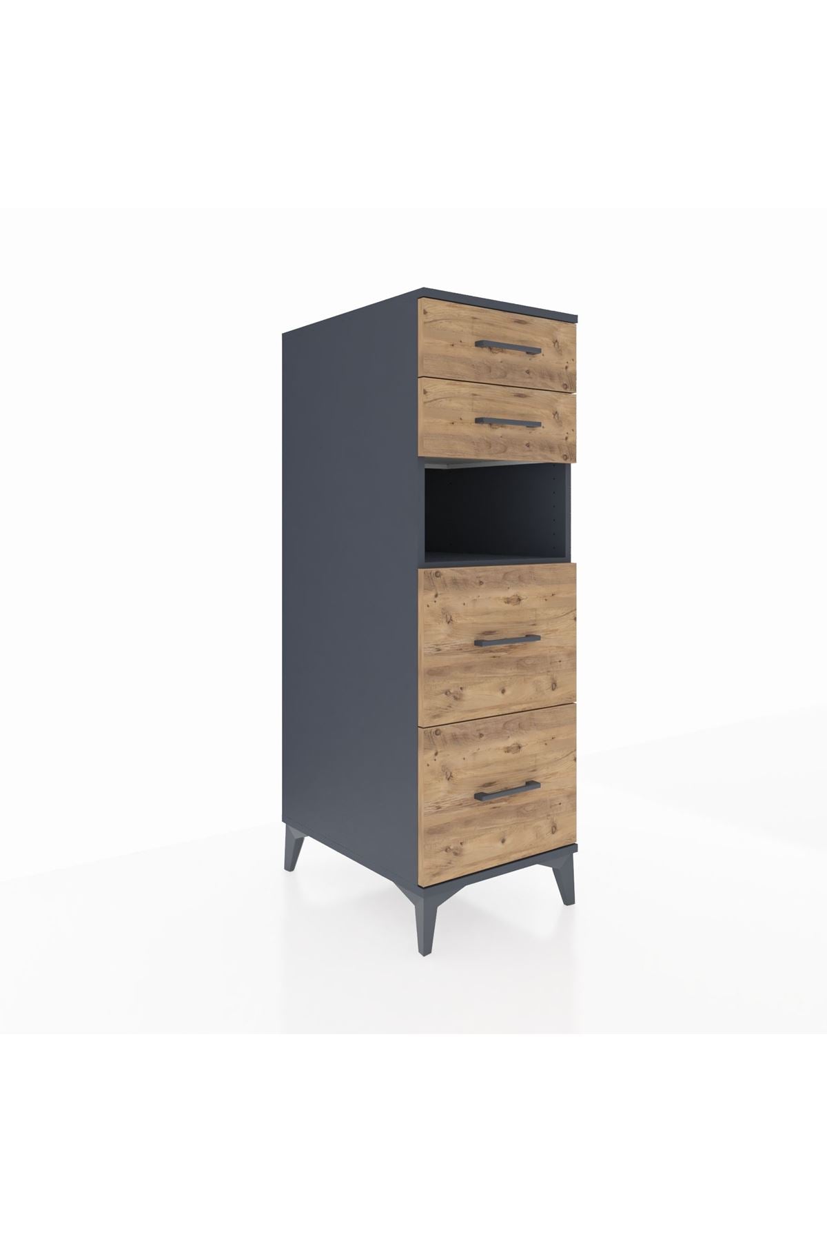 Kronos Dolap Tek Raflı 4 Çekmeceli 44x59x134 Antrasit-Çam