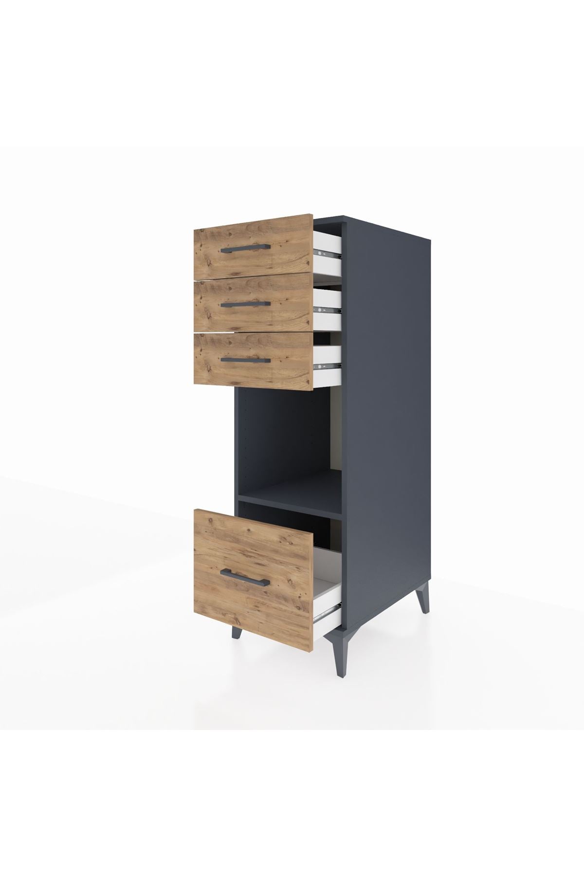 Kronos Dolap Tek Raflı 4 Çekmeceli 44x59x134 Antrasit-Çam