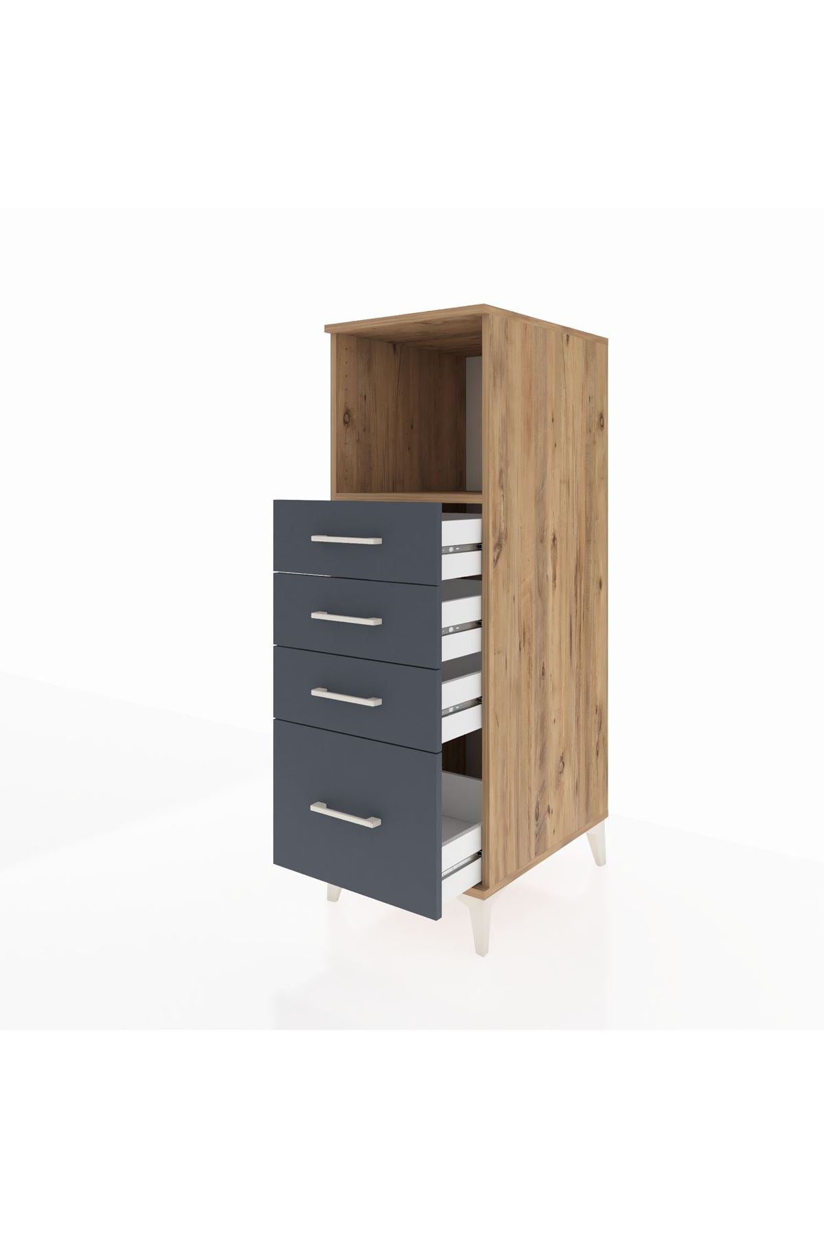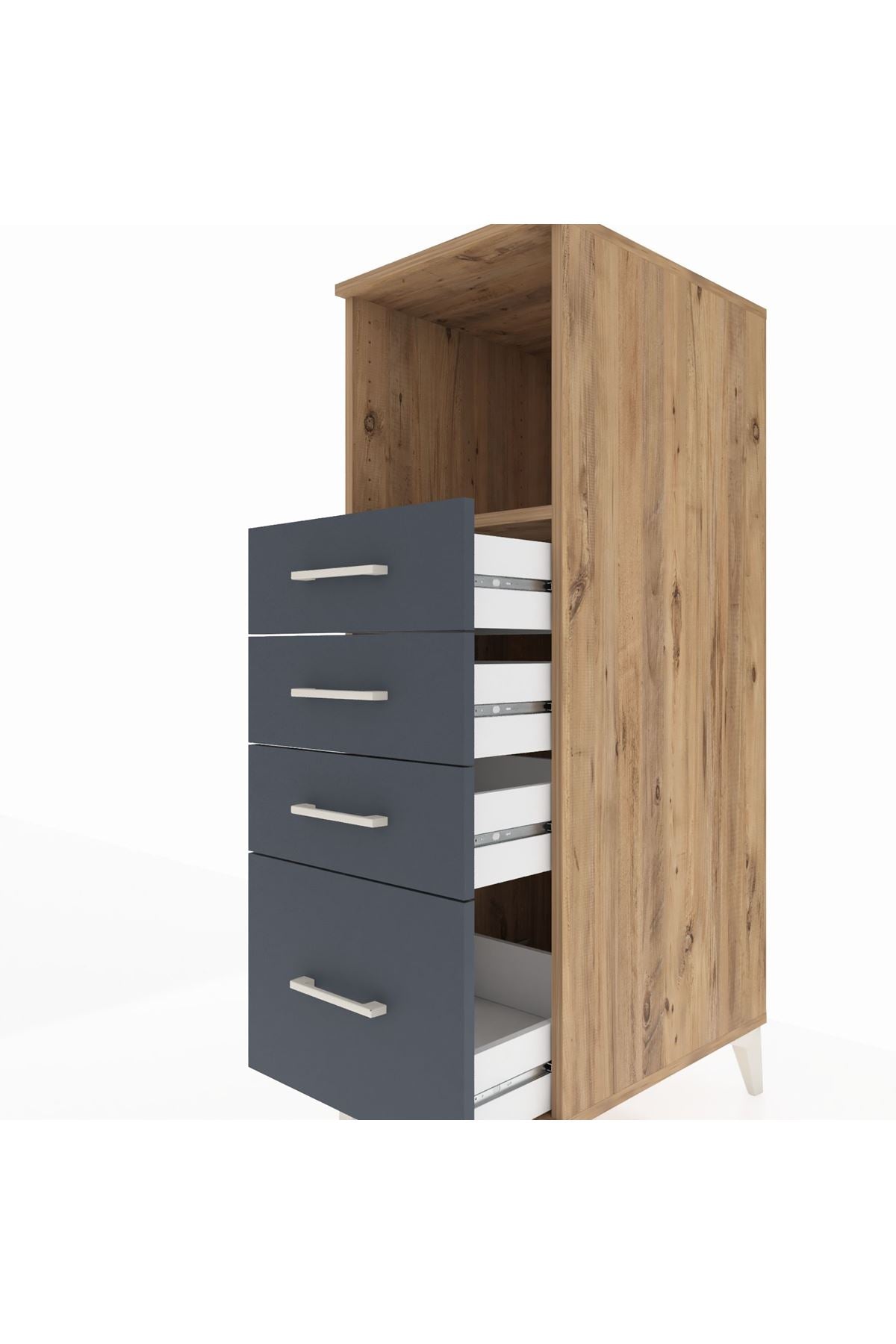 Kronos Dolap Tek Raflı 4 Çekmeceli 44x59x134 Çam-Antrasit