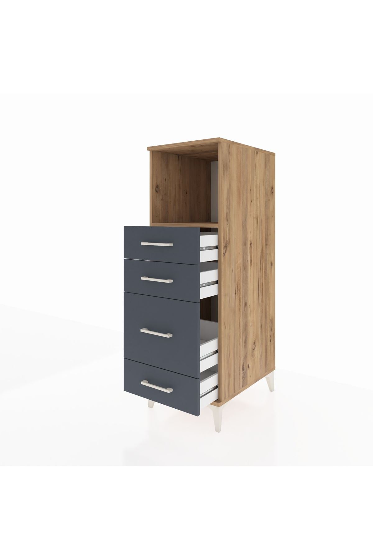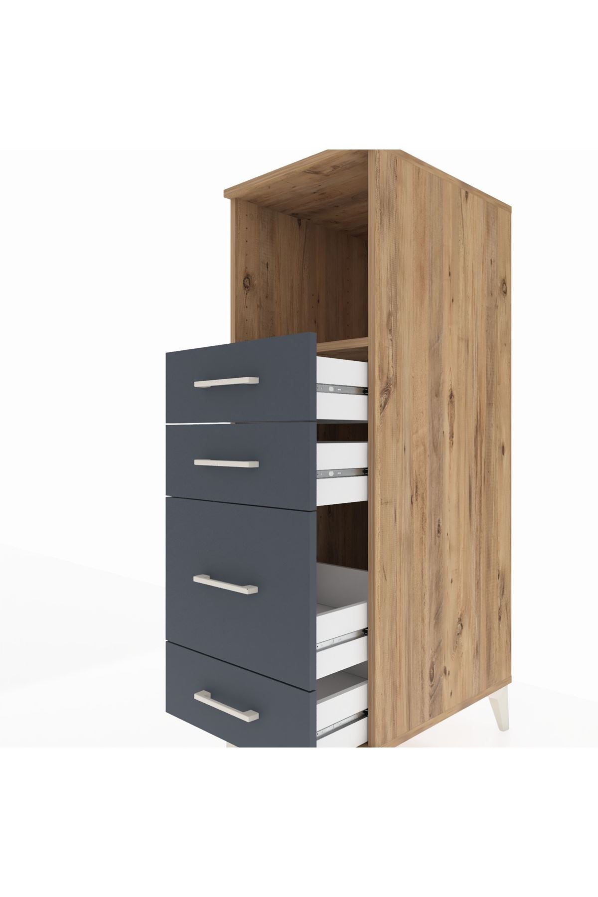 Kronos Dolap Tek Raflı 4 Çekmeceli 44x59x134 Çam-Antrasit