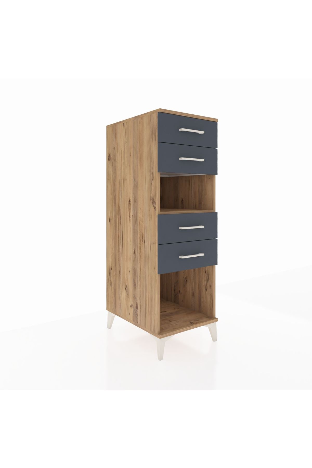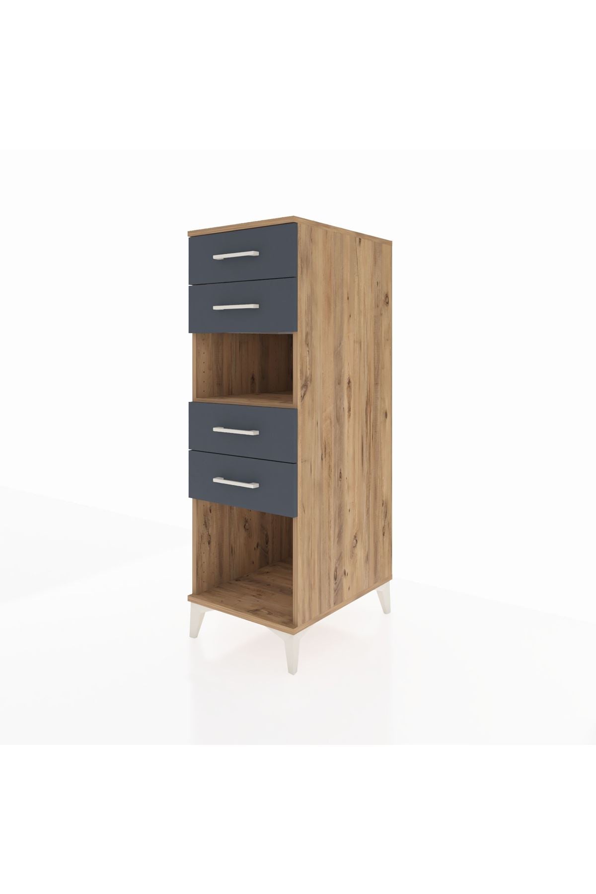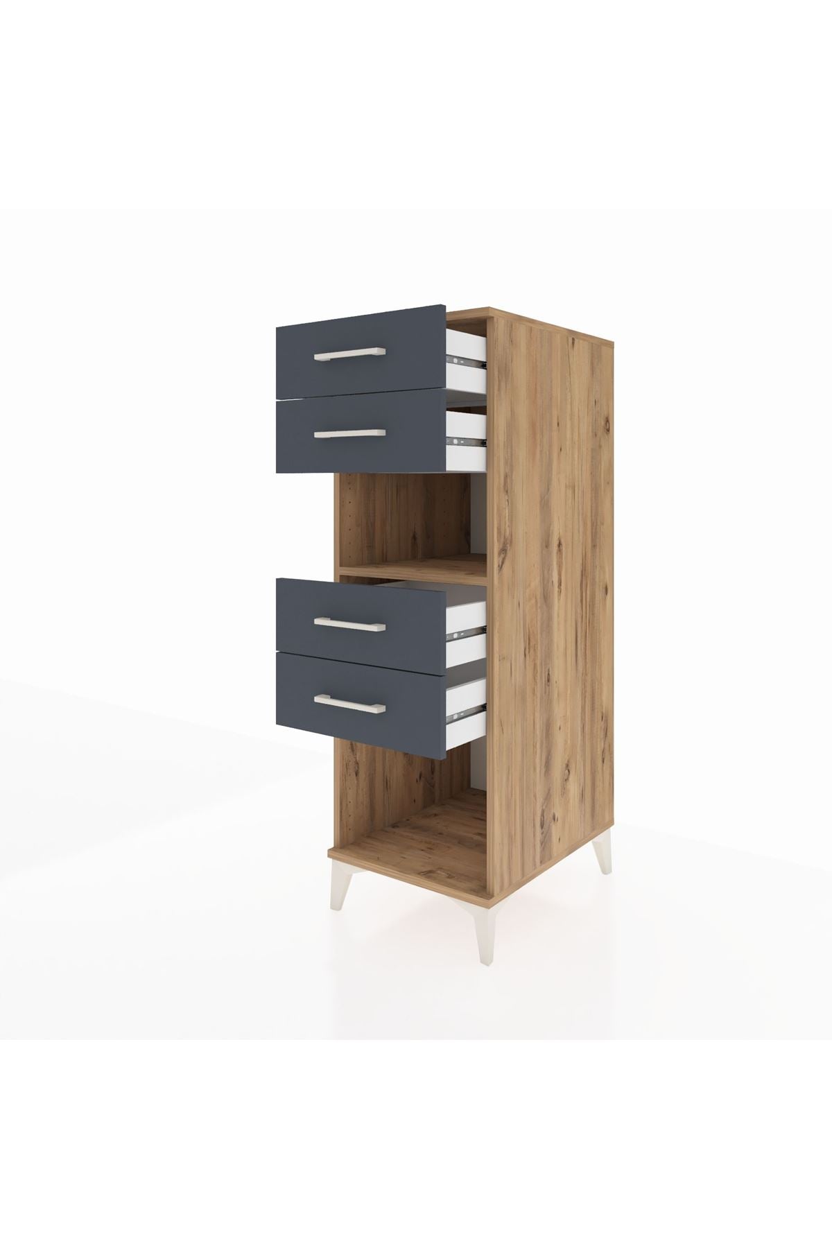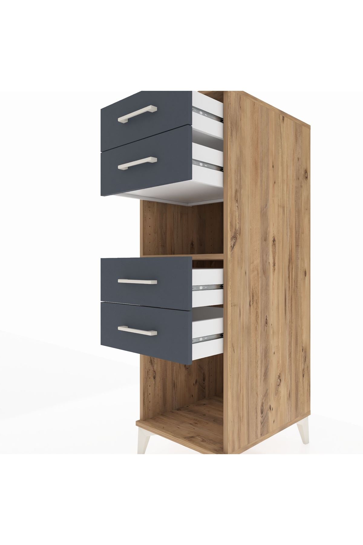 Kronos Dolap Tek Raflı 4 Çekmeceli 44x59x134 Çam-Antrasit