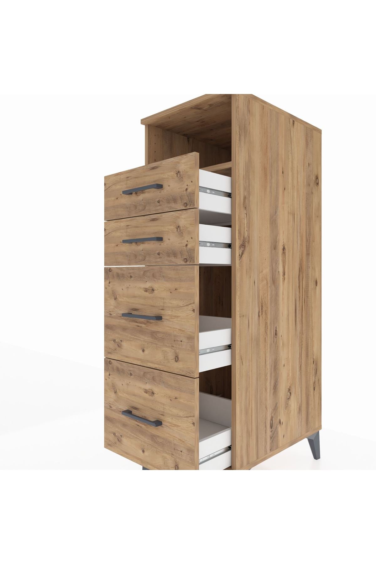 Kronos Dolap Tek Raflı 4 Çekmeceli 44x59x134 Çam-Çam