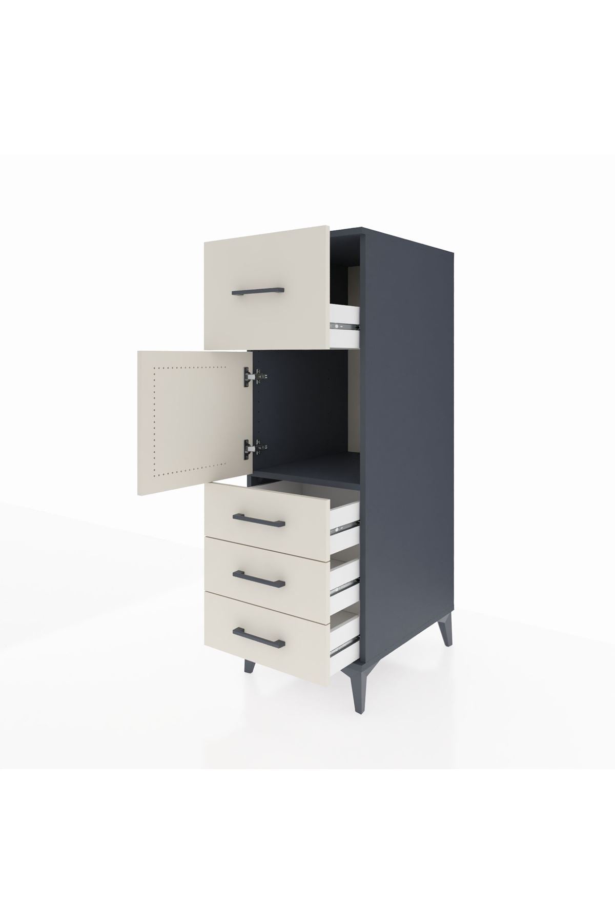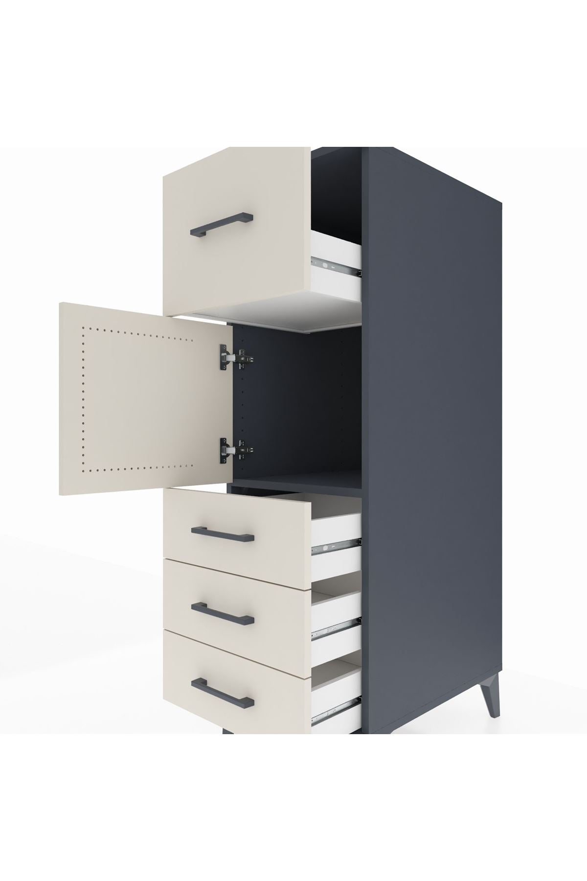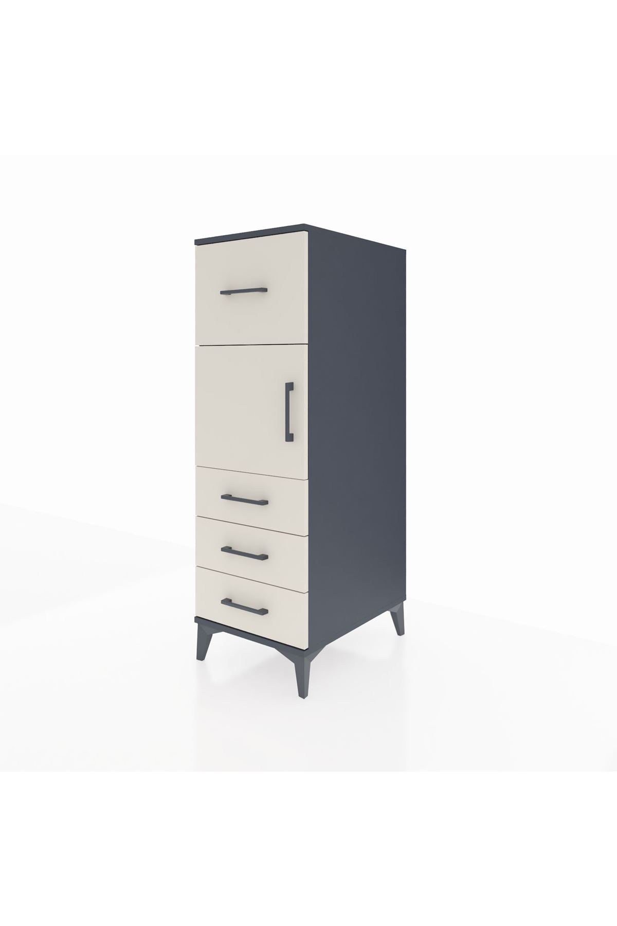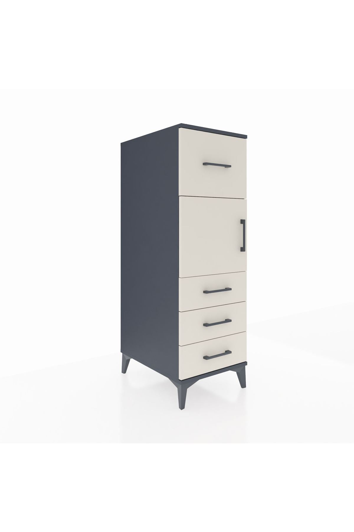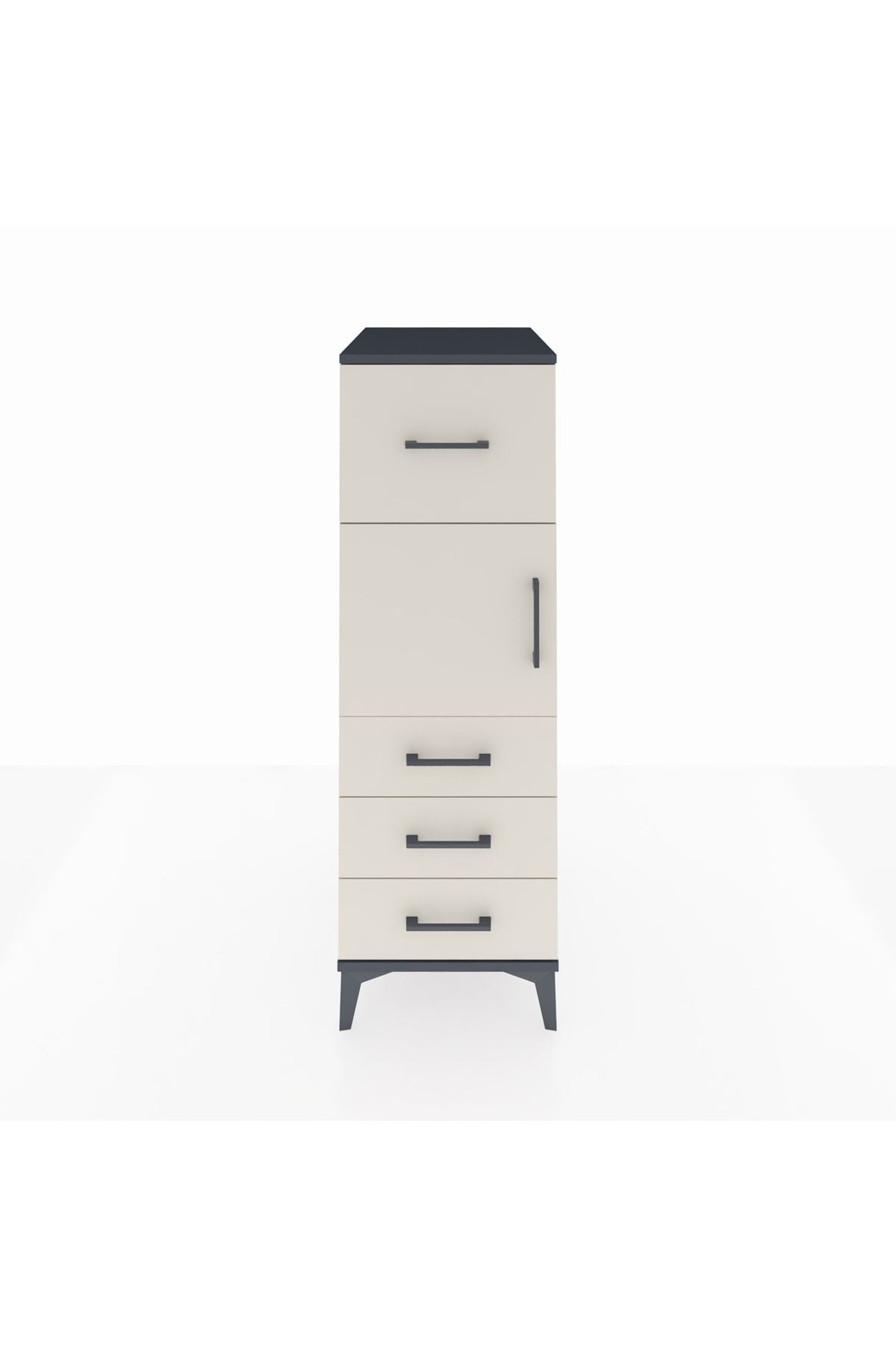 ✨ Kronos Dolap Tek Raflı 4 Çekmeceli Tek Kapaklı, şık antrasit ve aytaşı renk kombinasyonuyla mekanınıza modern ve sofistike bir dokunuş katacak.