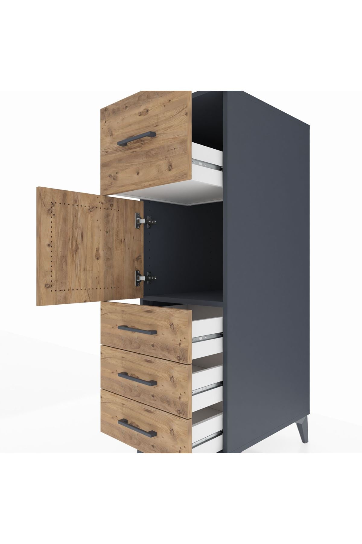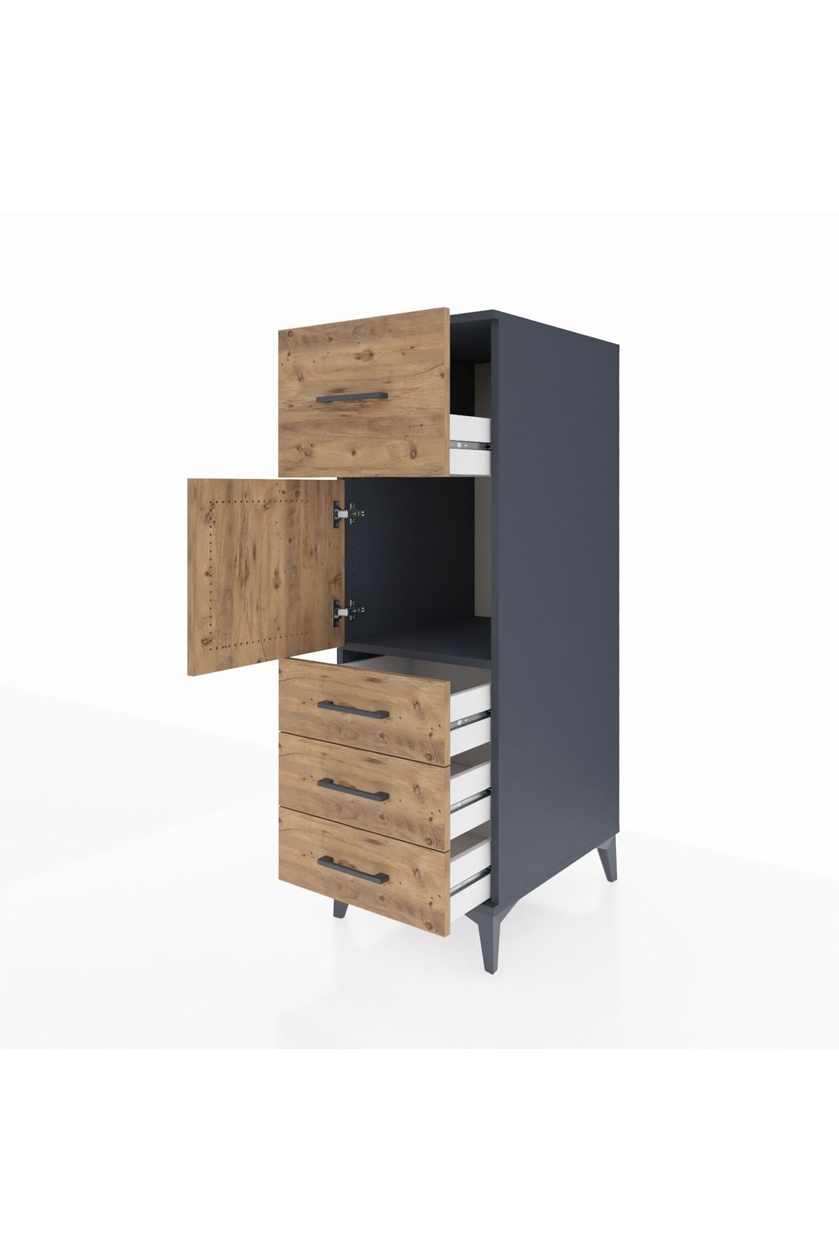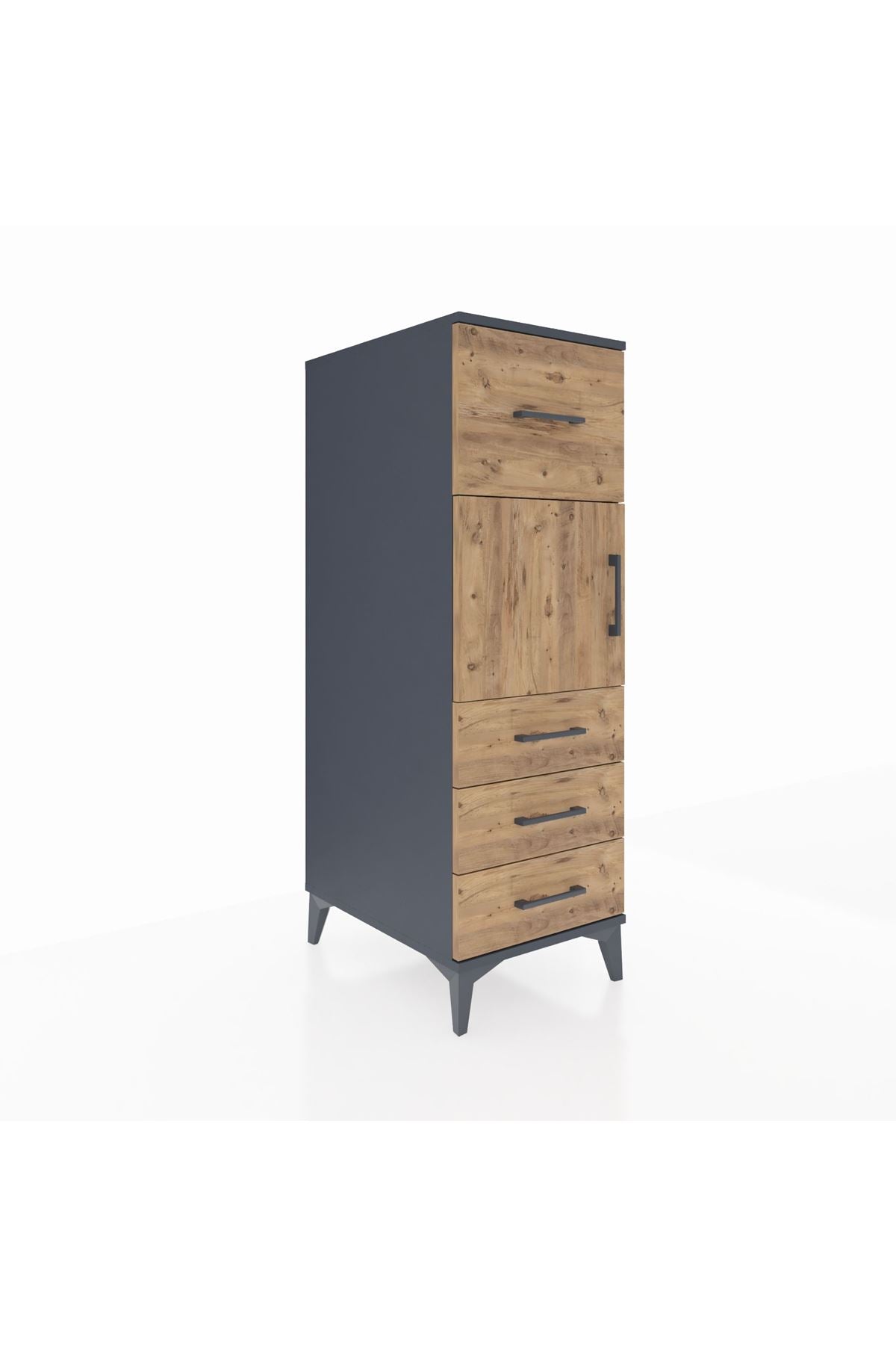 Kronos Dolap Tek Raflı 4 Çekmeceli Tek Kapaklı 44x59x134 Antrasit-Çam