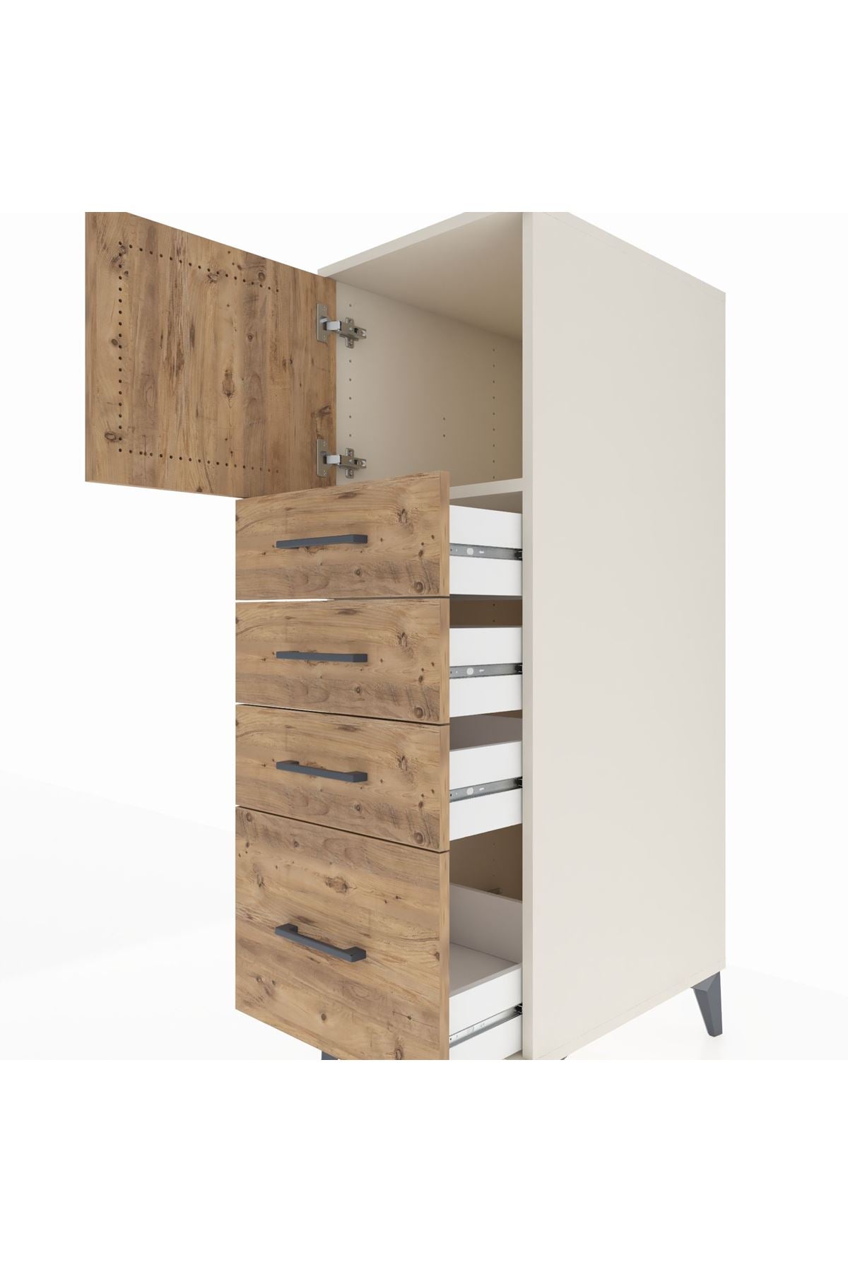 Kronos Dolap Tek Raflı 4 Çekmeceli Tek Kapaklı 44x59x134 Aytaşı-Çam