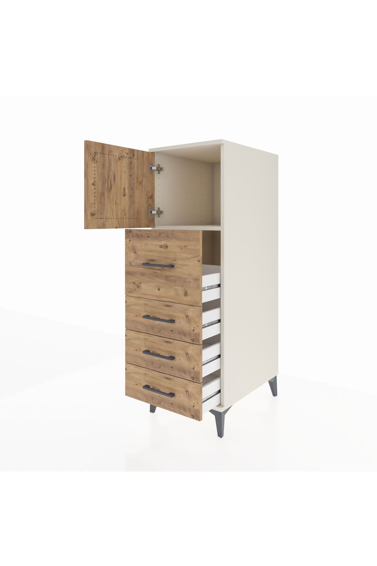 Kronos Dolap Tek Raflı 4 Çekmeceli Tek Kapaklı 44x59x134 Aytaşı-Çam