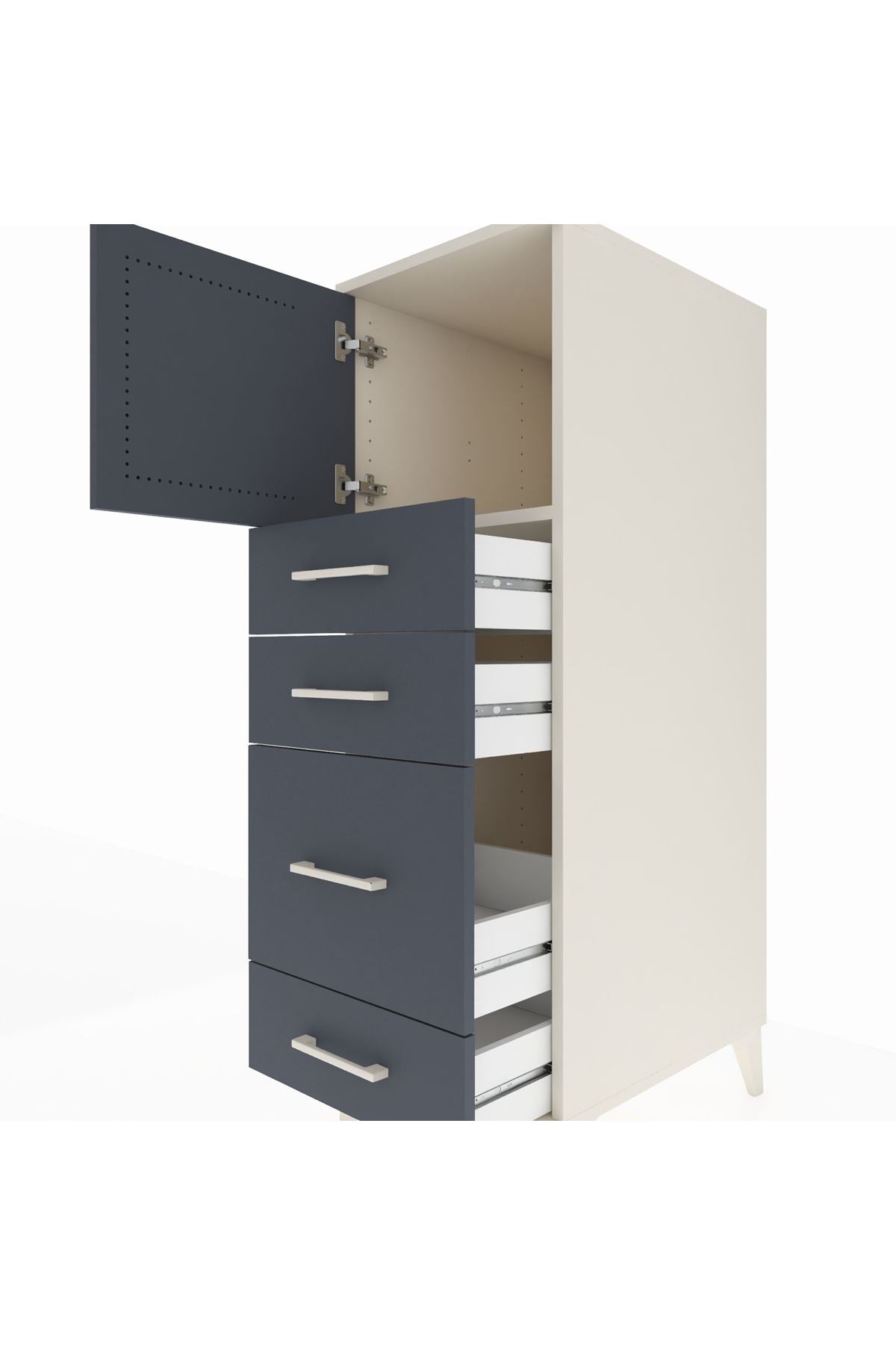 Kronos Dolap Tek Raflı 4 Çekmeceli Tek Kapaklı 44x59x134 Aytaşı-Antrasit
