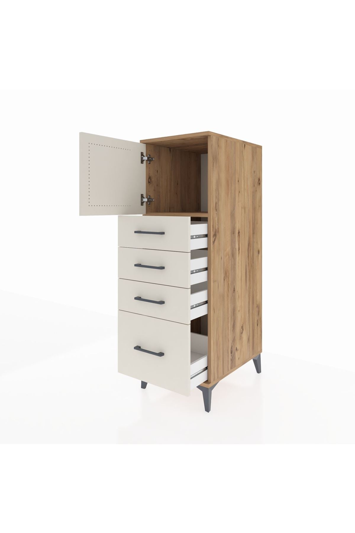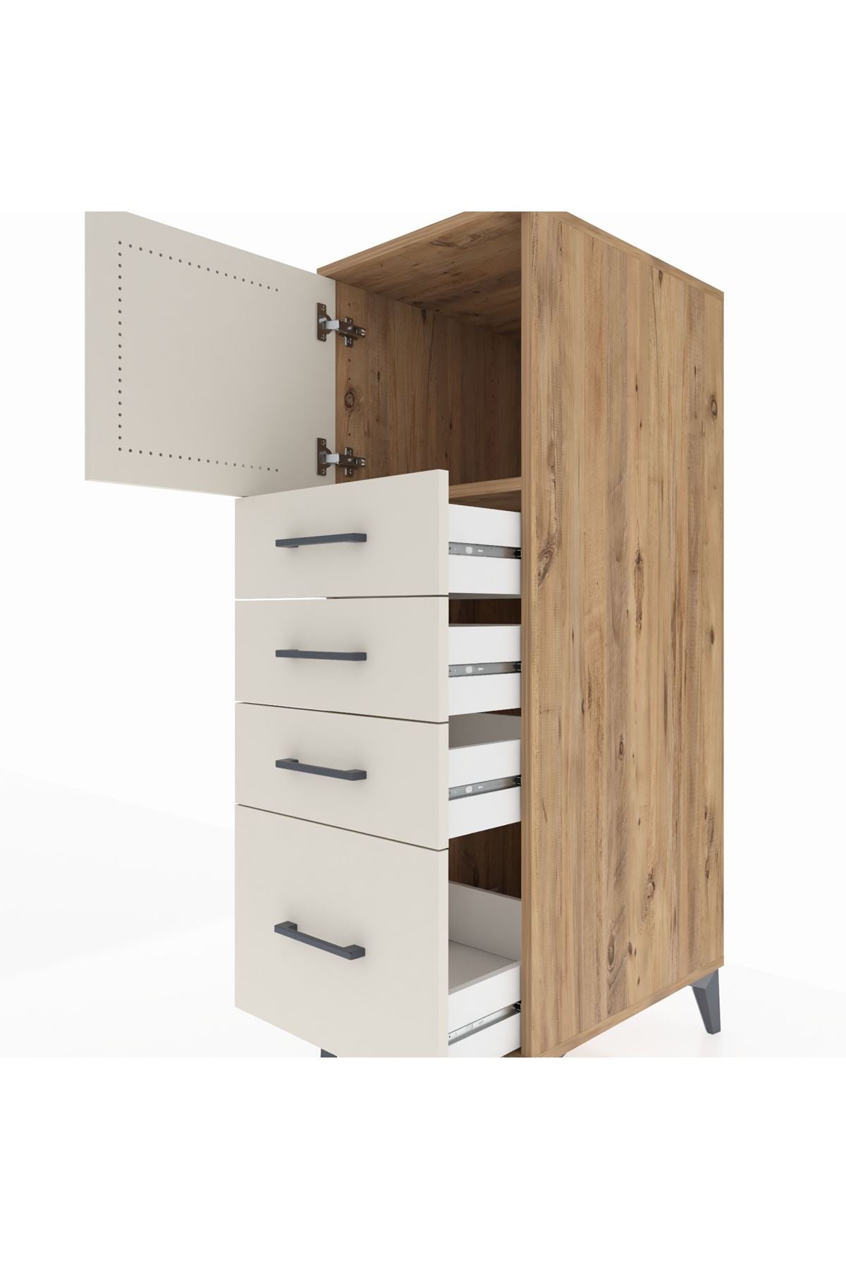 Kronos Dolap Tek Raflı 4 Çekmeceli Tek Kapaklı 44x59x134 Çam-Aytaşı