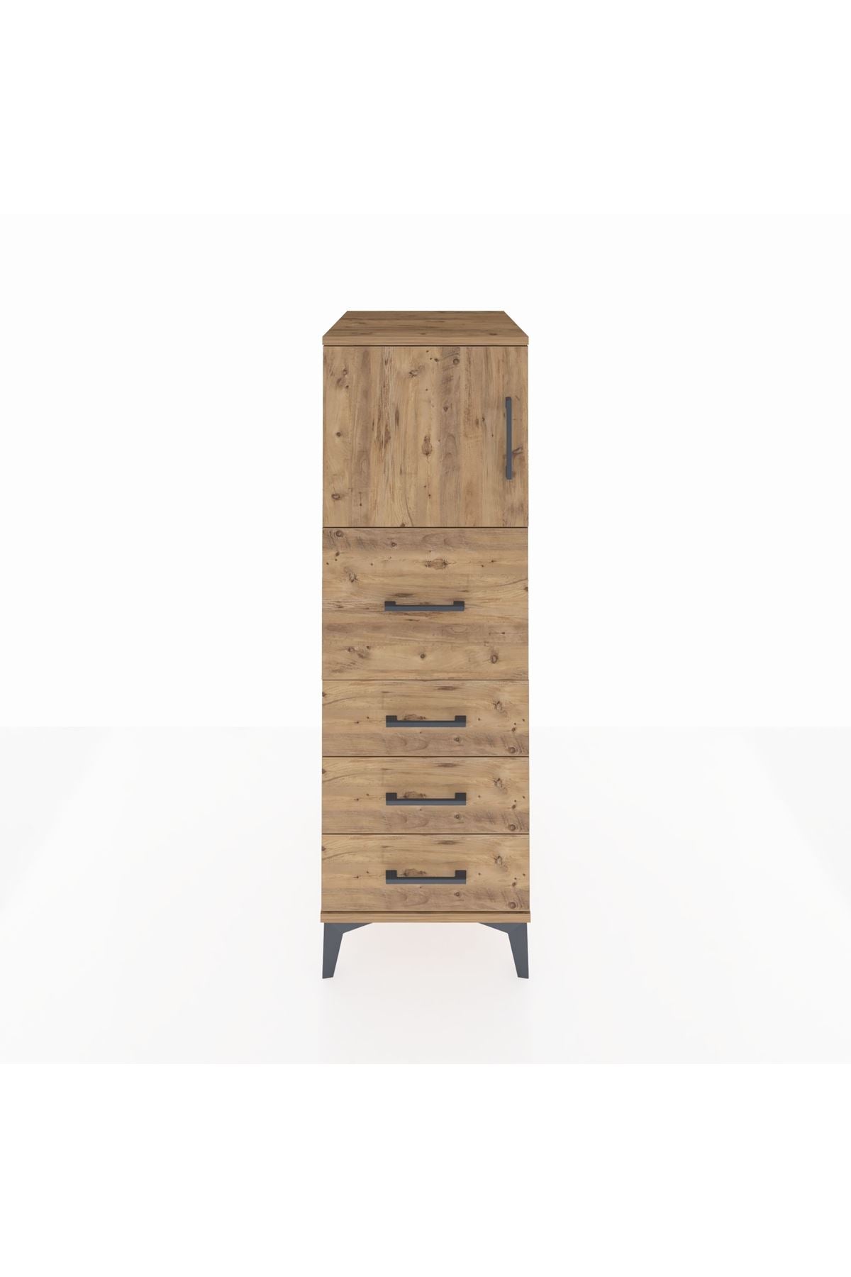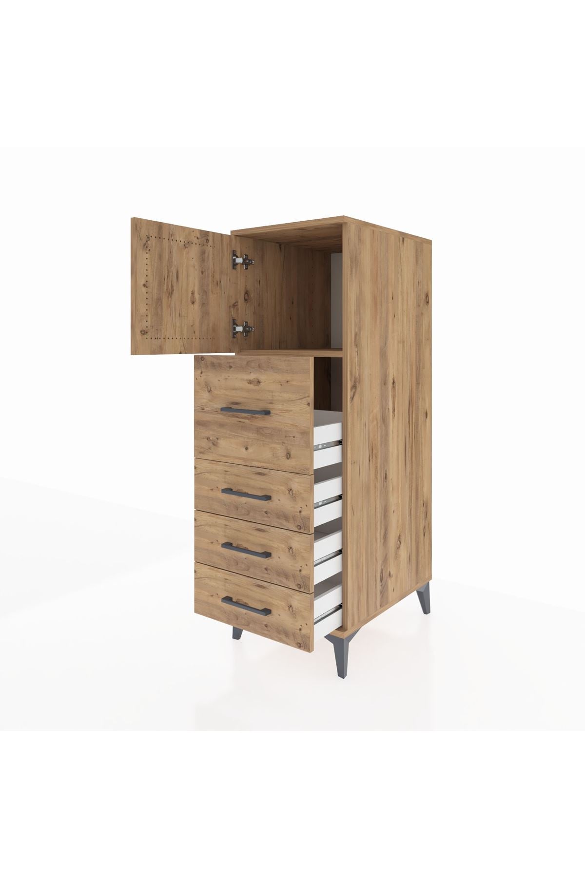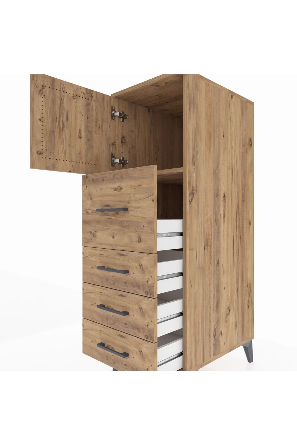 Kronos Dolap Tek Raflı 4 Çekmeceli Tek Kapaklı 44x59x134 Çam-Çam