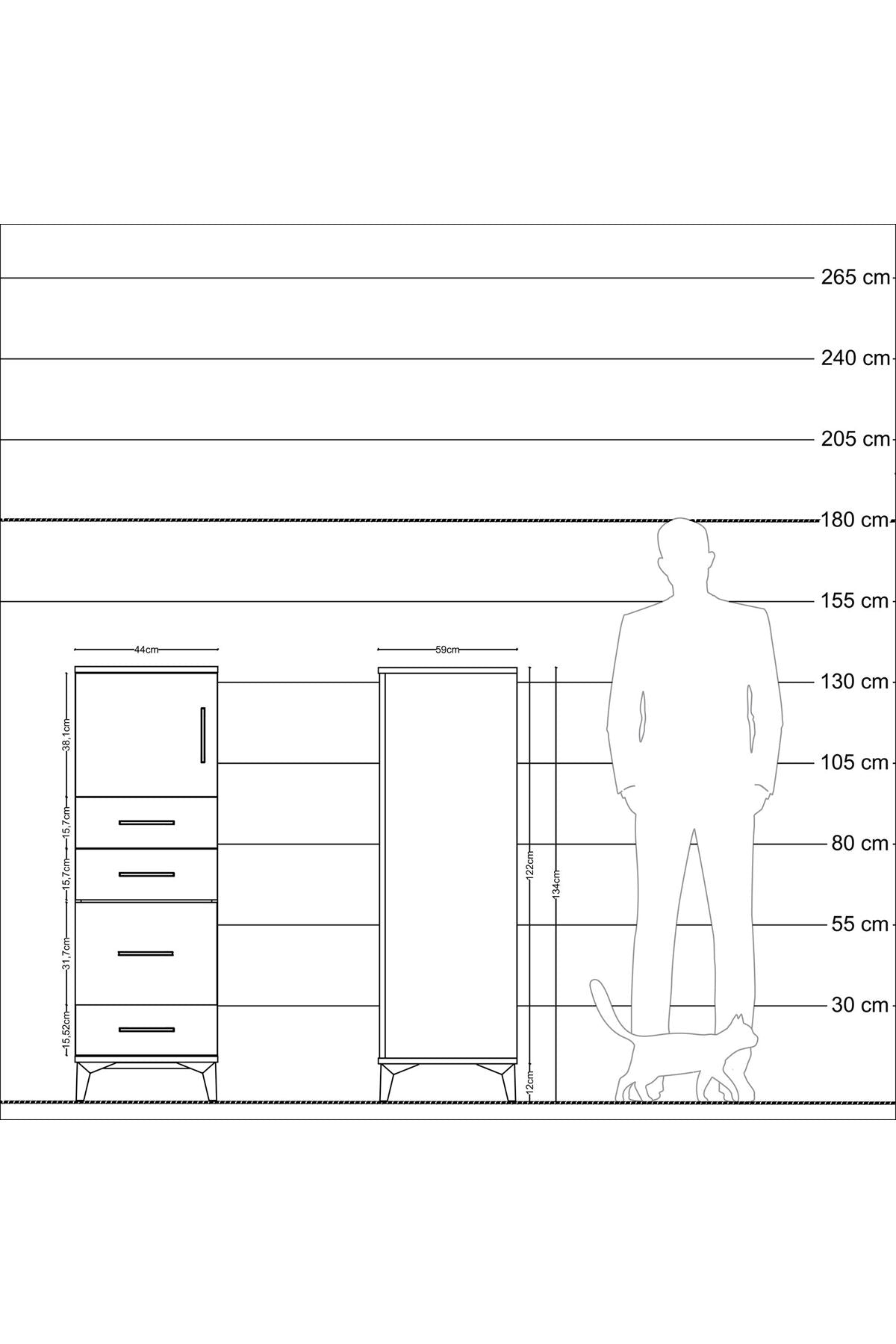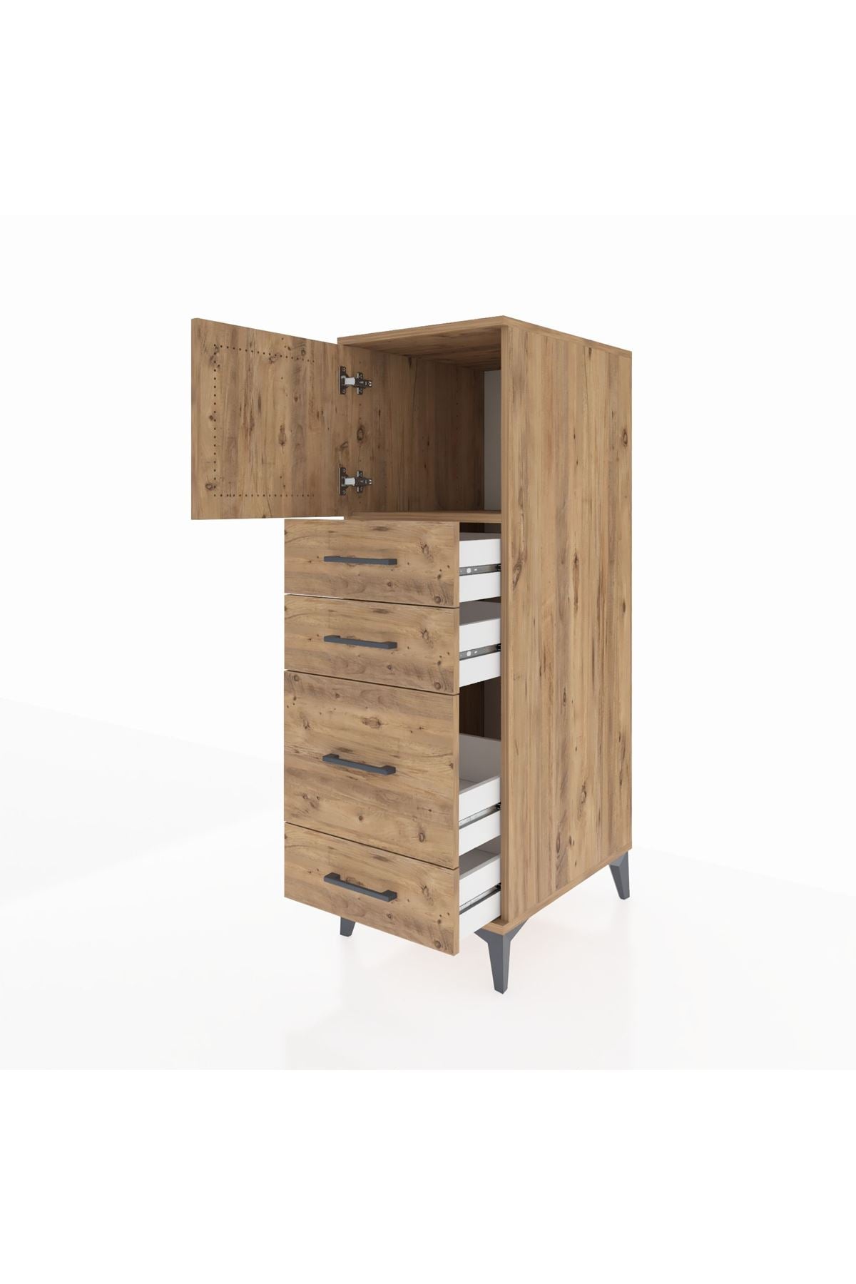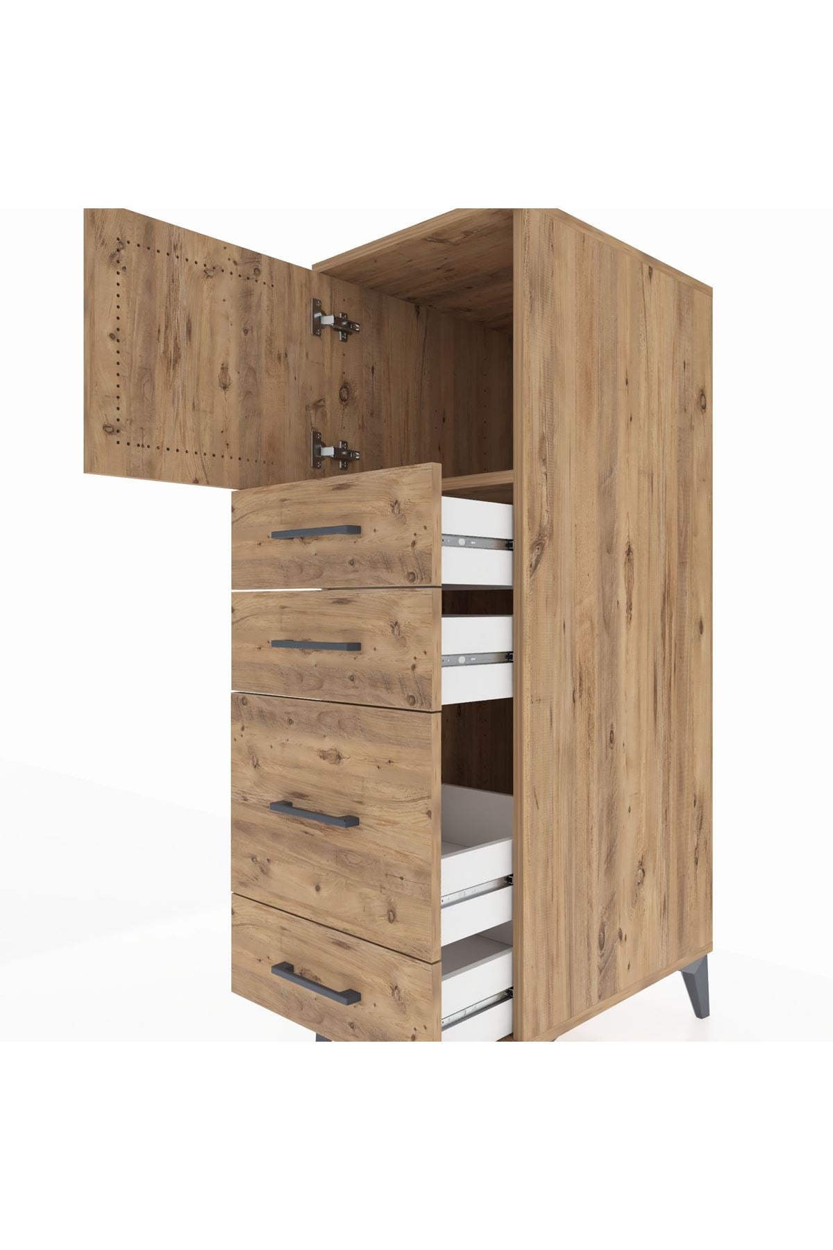 Kronos Dolap Tek Raflı 4 Çekmeceli Tek Kapaklı 44x59x134 Çam-Çam