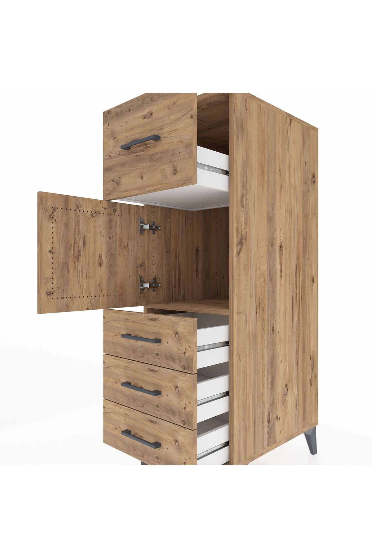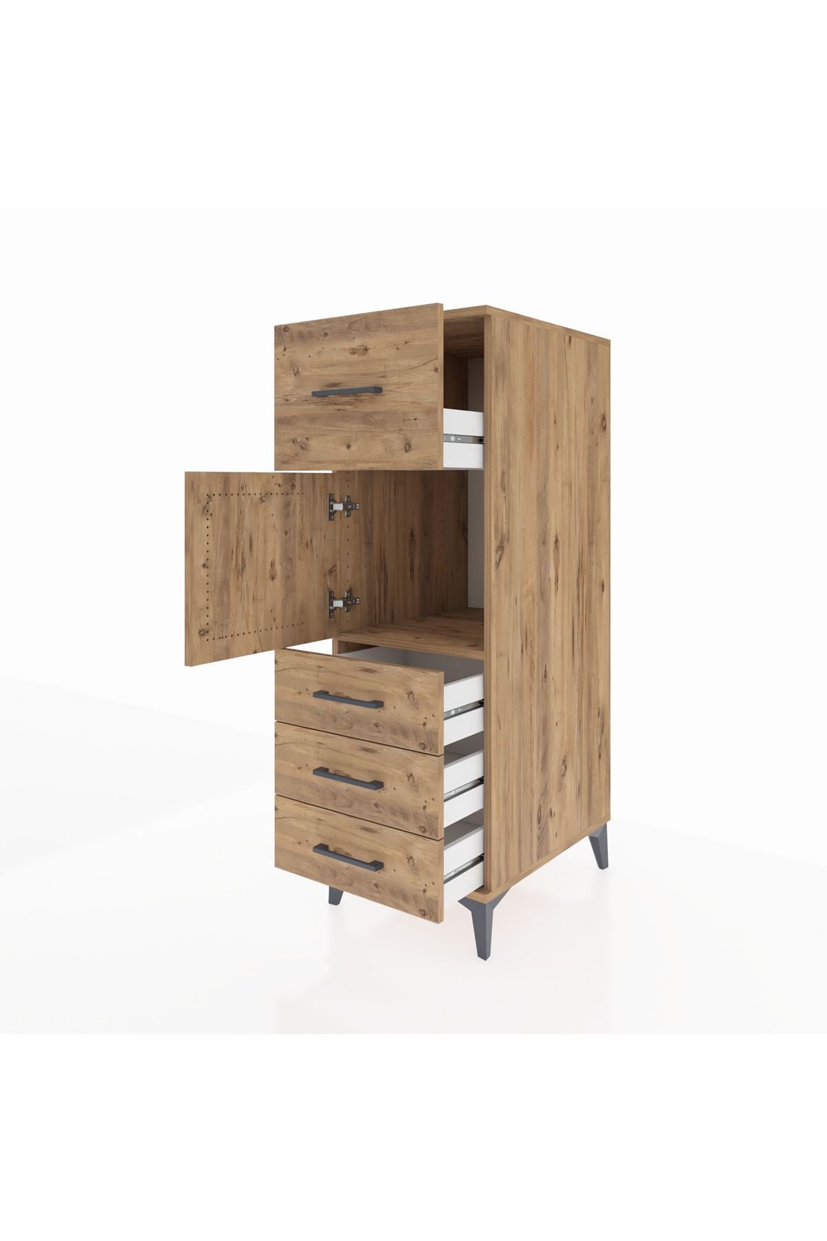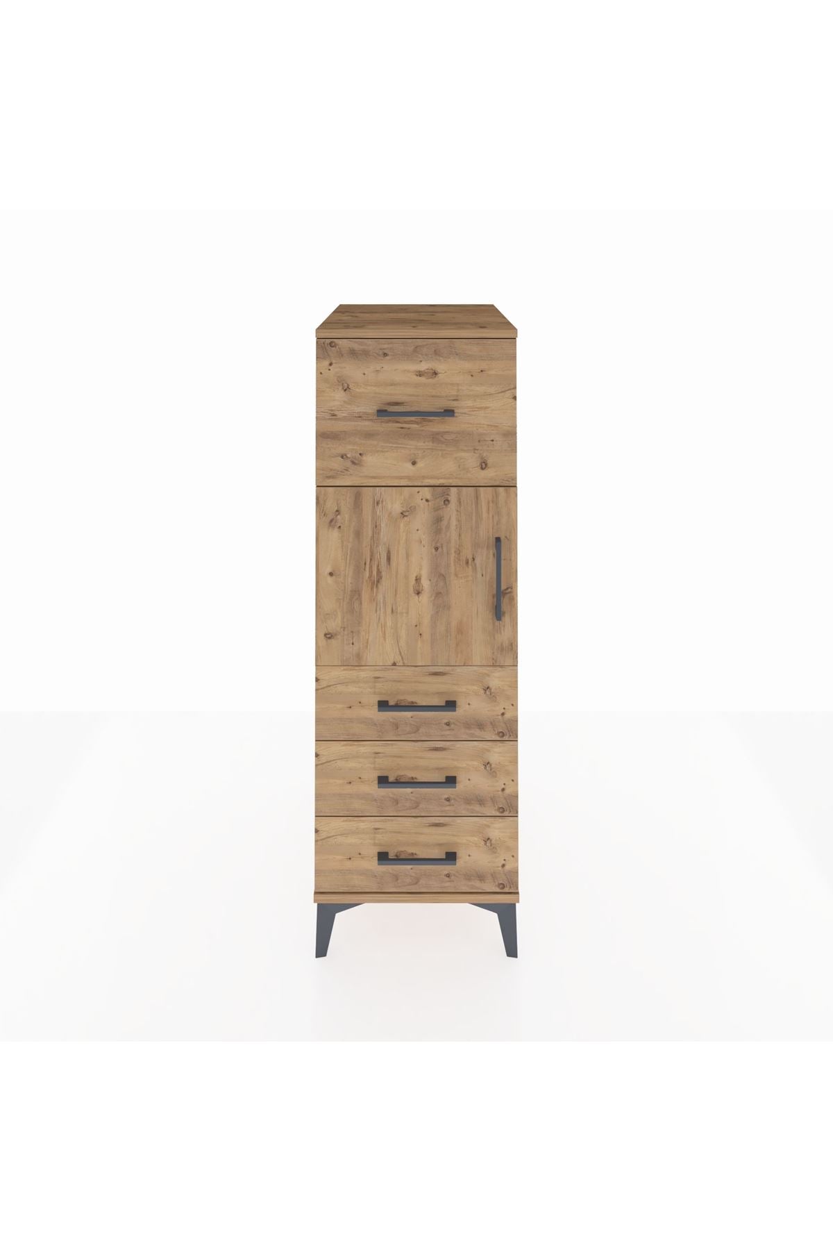 Kronos Dolap Tek Raflı 4 Çekmeceli Tek Kapaklı 44x59x134 Çam-Çam