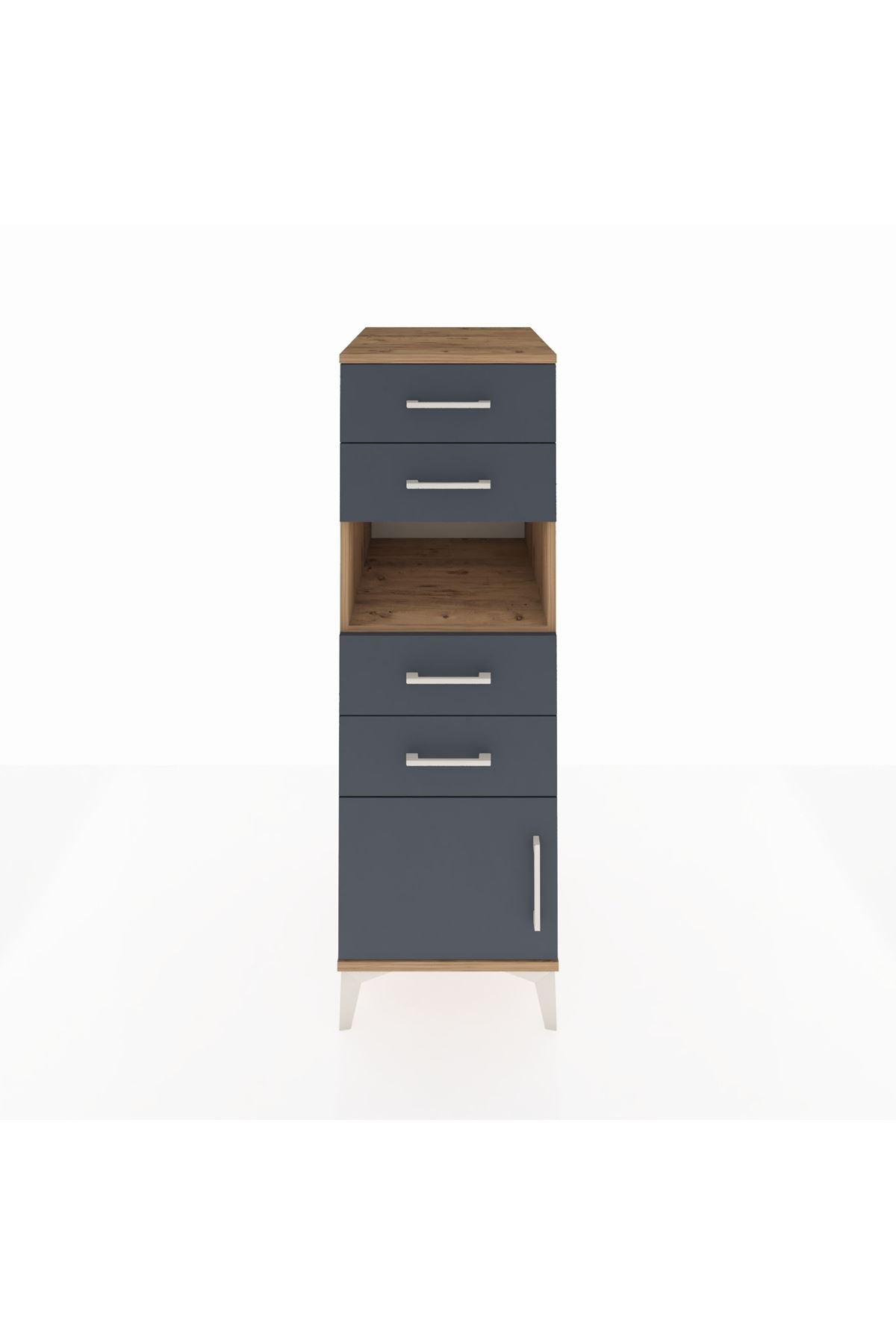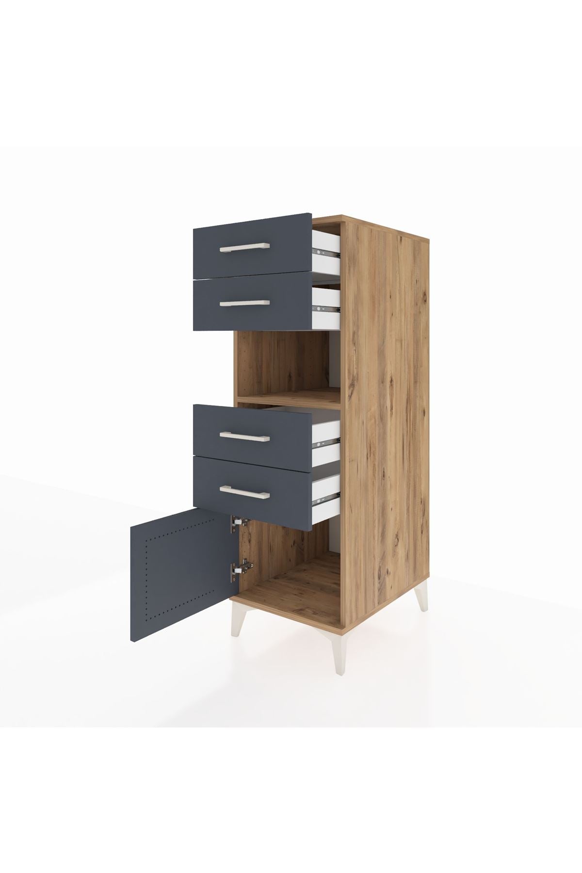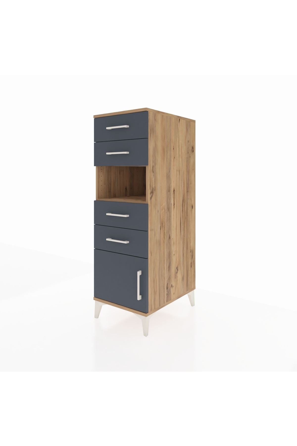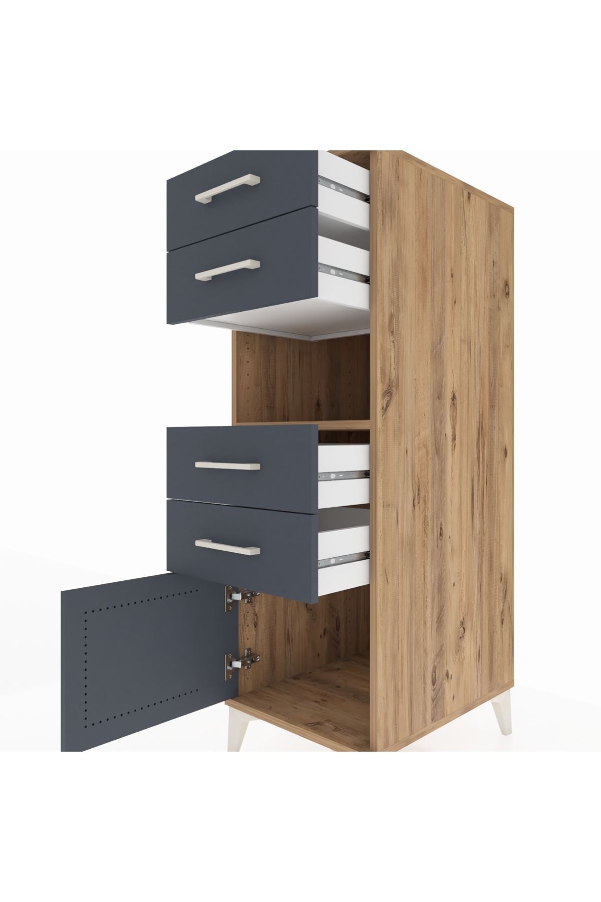 Kronos Dolap Tek Raflı 4 Çekmeceli Tek Kapaklı 44x59x134 Çam-Antrasit