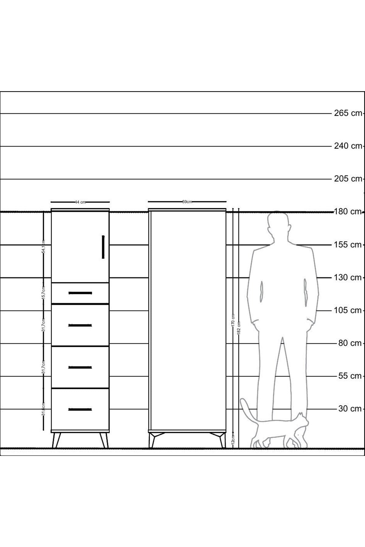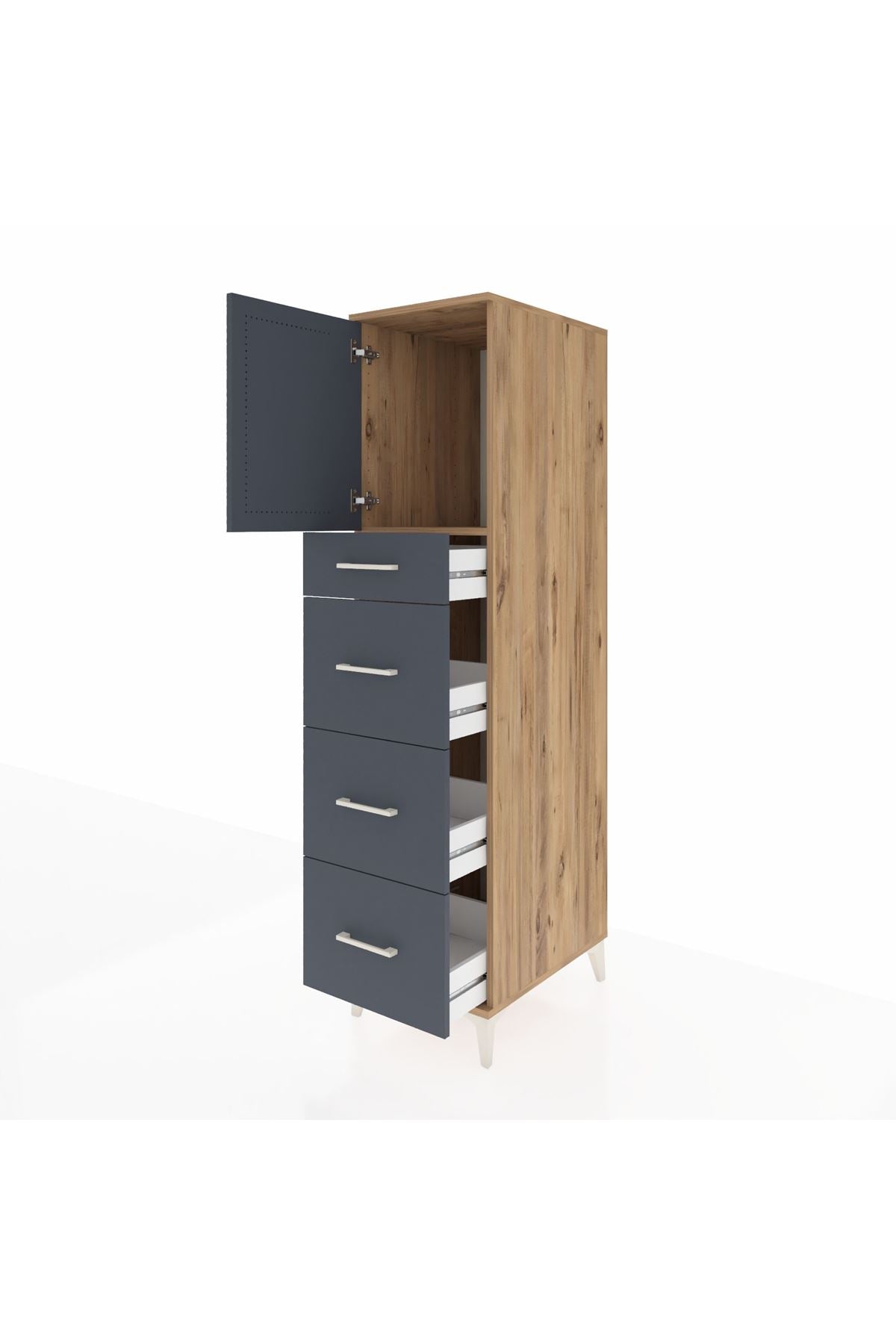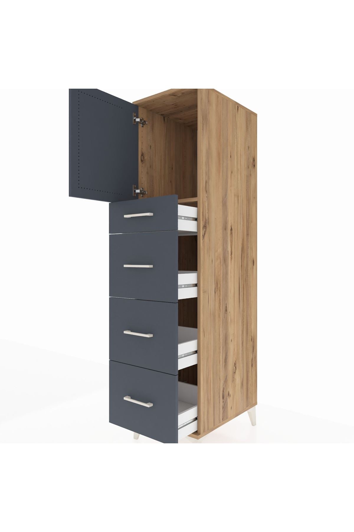 Kronos Dolap Tek Raflı 4 Çekmeceli Tek Kapaklı 44x59x182 Çam-Antrasit