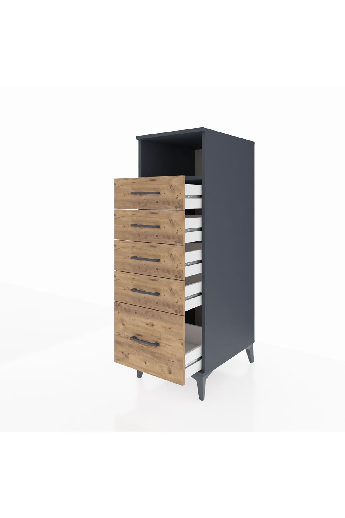 Kronos Dolap Tek Raflı 5 Çekmeceli 44x59x134 Antrasit-Çam