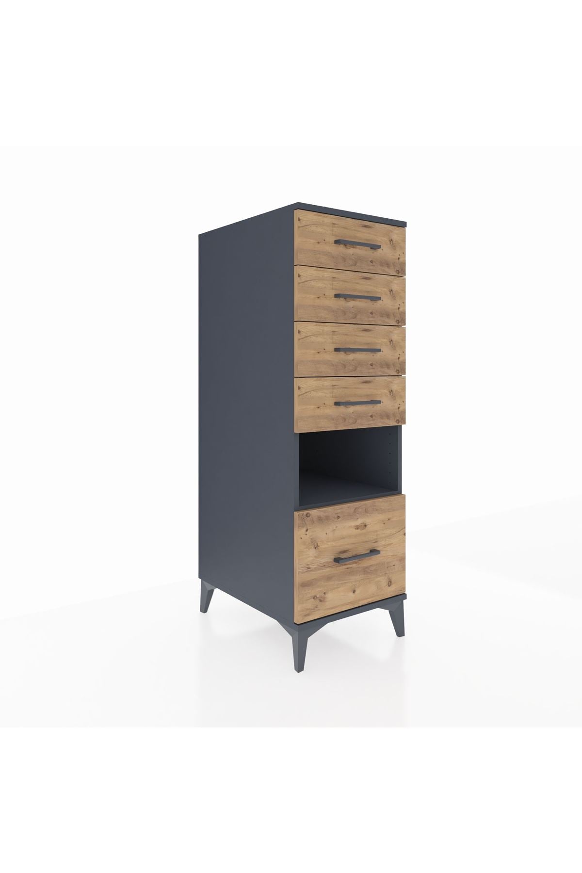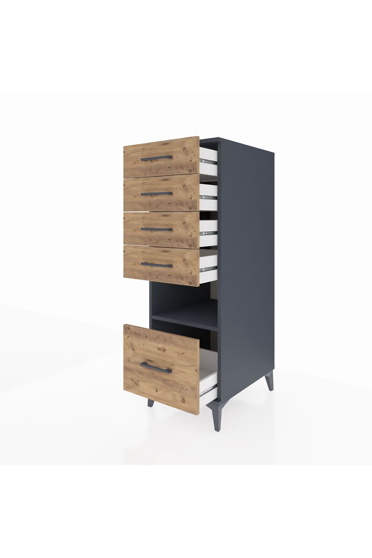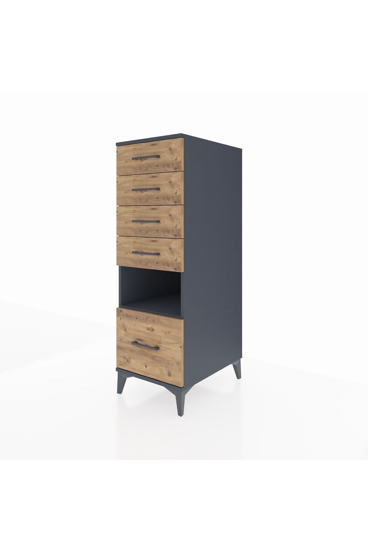 Kronos Dolap Tek Raflı 5 Çekmeceli 44x59x134 Antrasit-Çam