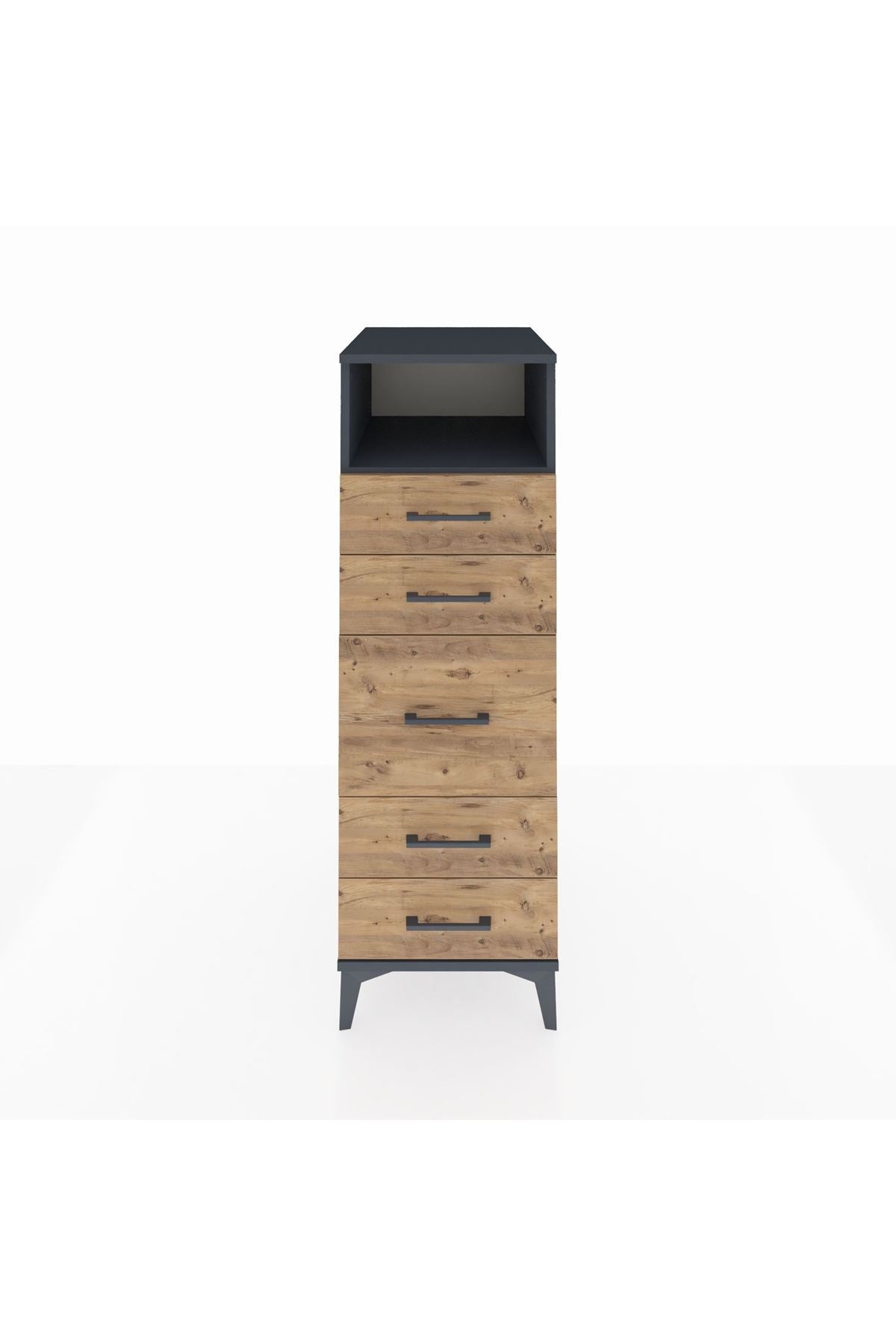 Kronos Dolap Tek Raflı 5 Çekmeceli 44x59x134 Antrasit-Çam