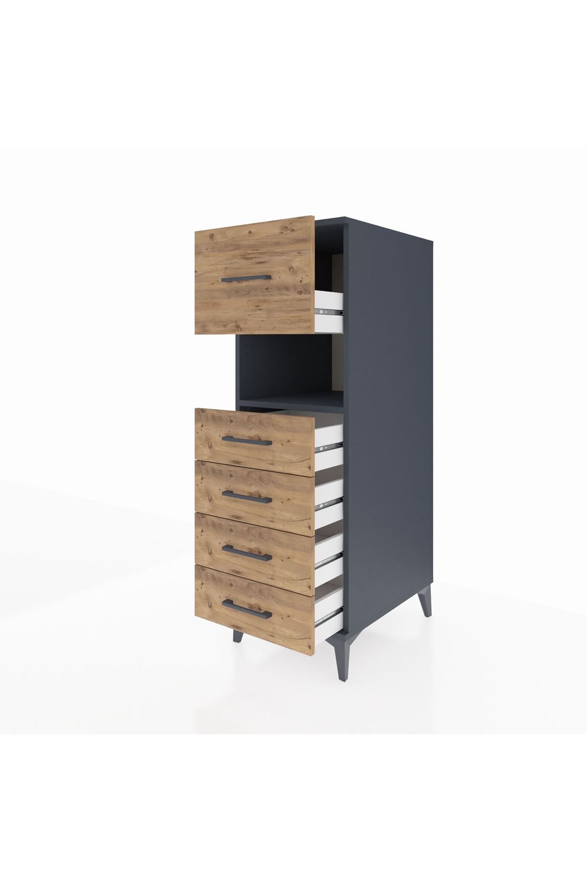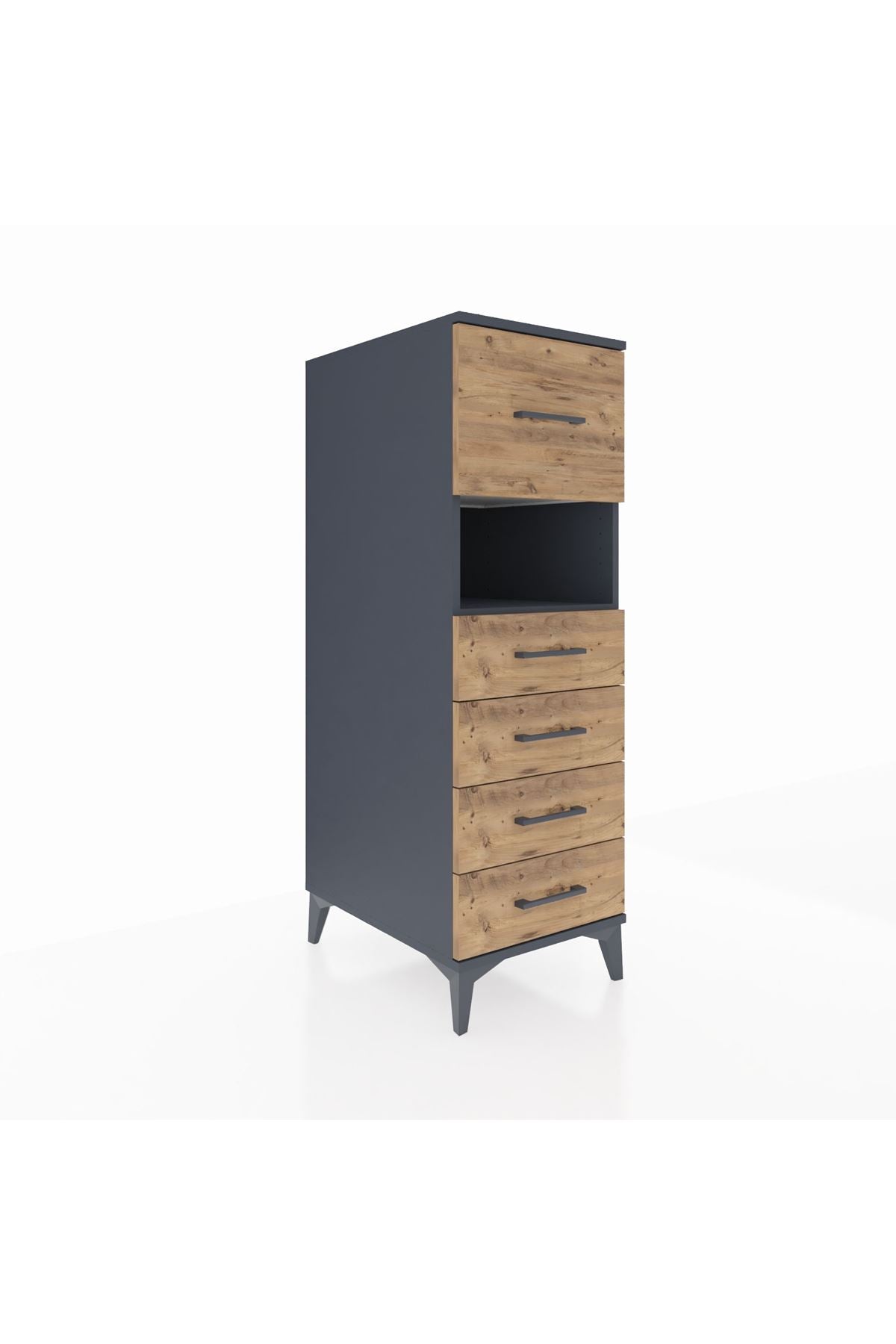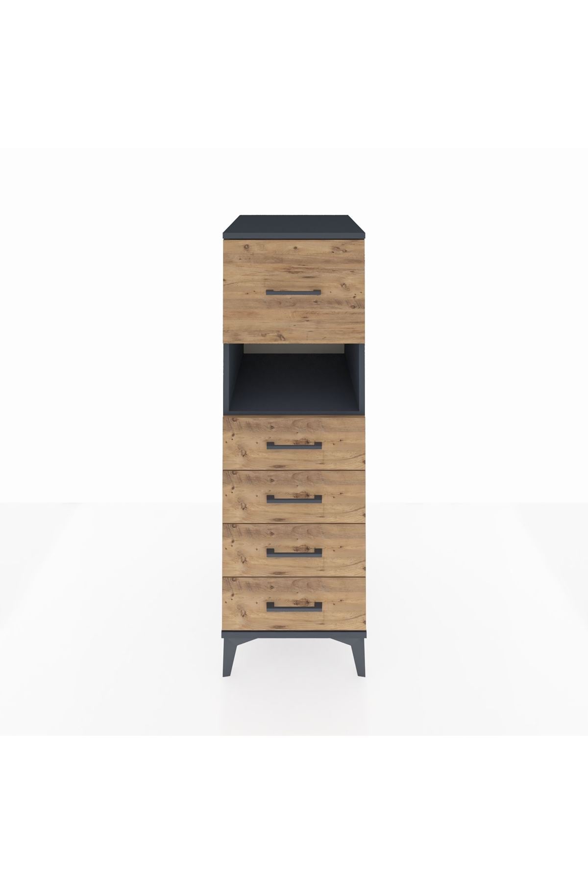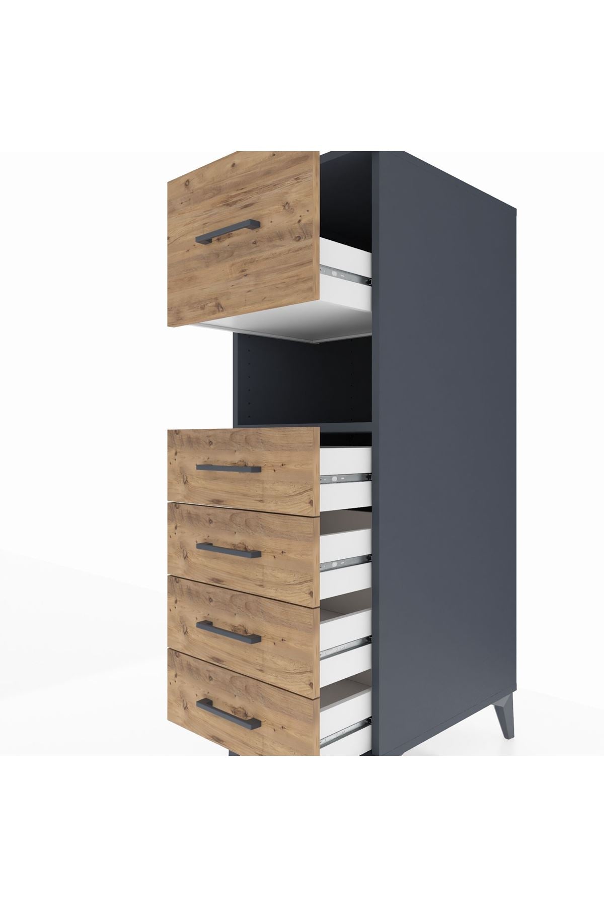 Kronos Dolap Tek Raflı 5 Çekmeceli 44x59x134 Antrasit-Çam