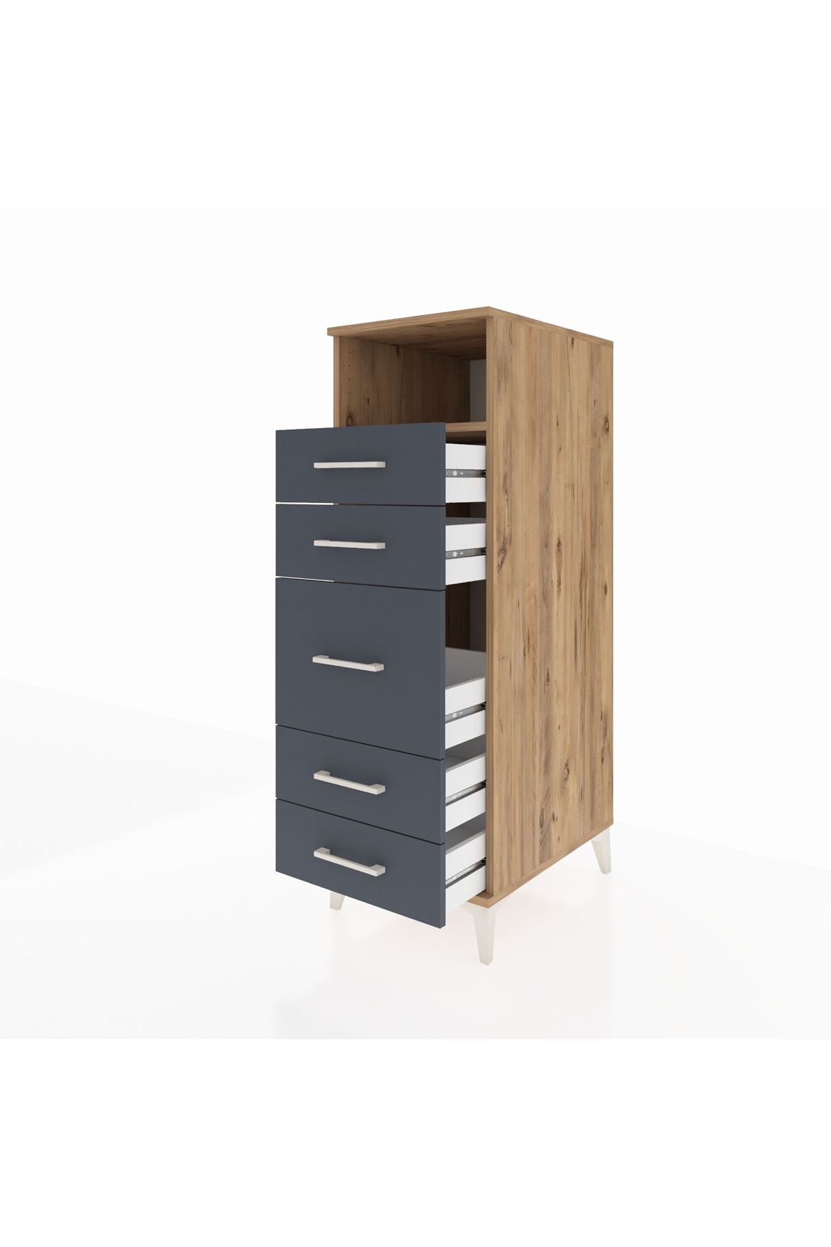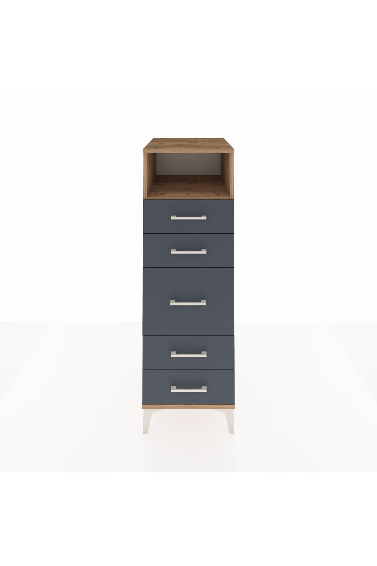 Kronos Dolap Tek Raflı 5 Çekmeceli 44x59x134 Çam-Antrasit