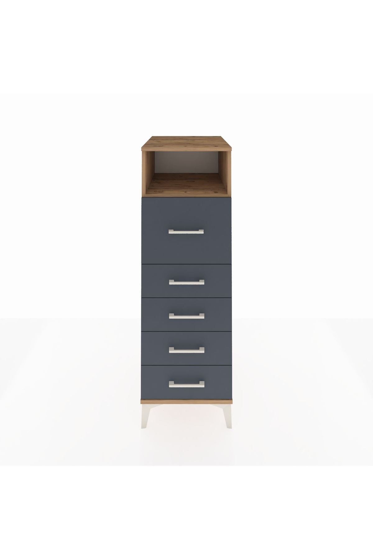 Kronos Dolap Tek Raflı 5 Çekmeceli 44x59x134 Çam-Antrasit