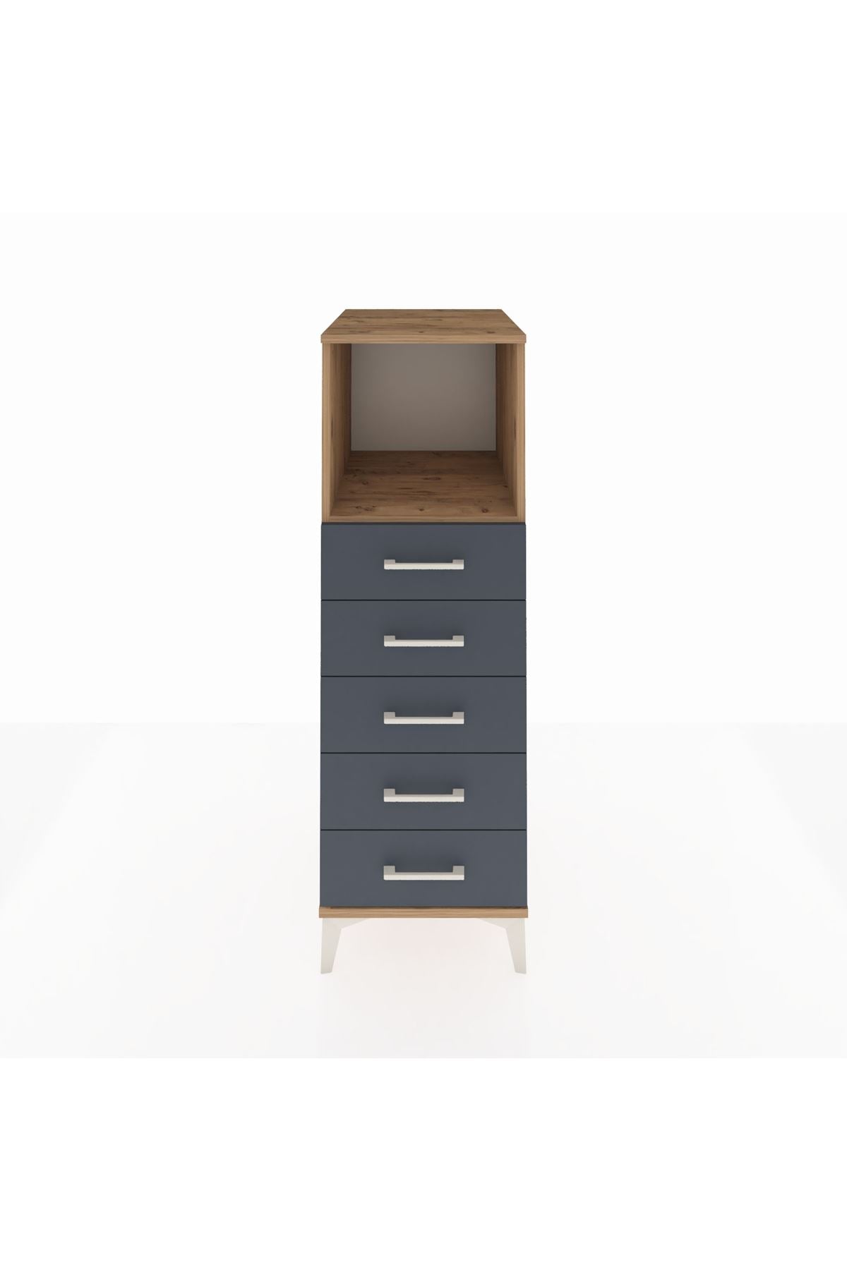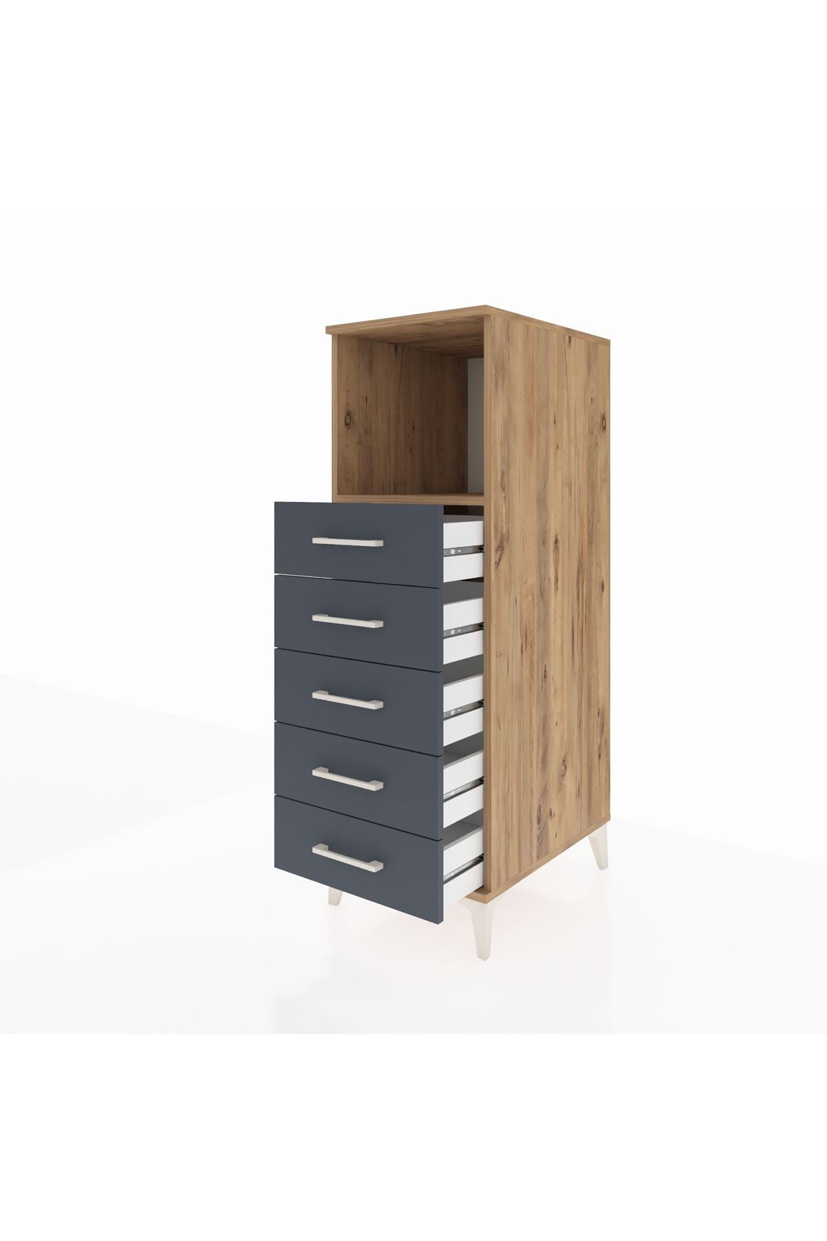 Kronos Dolap Tek Raflı 5 Çekmeceli 44x59x134 Çam-Antrasit